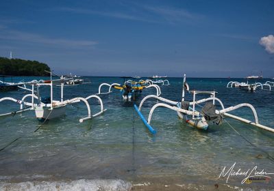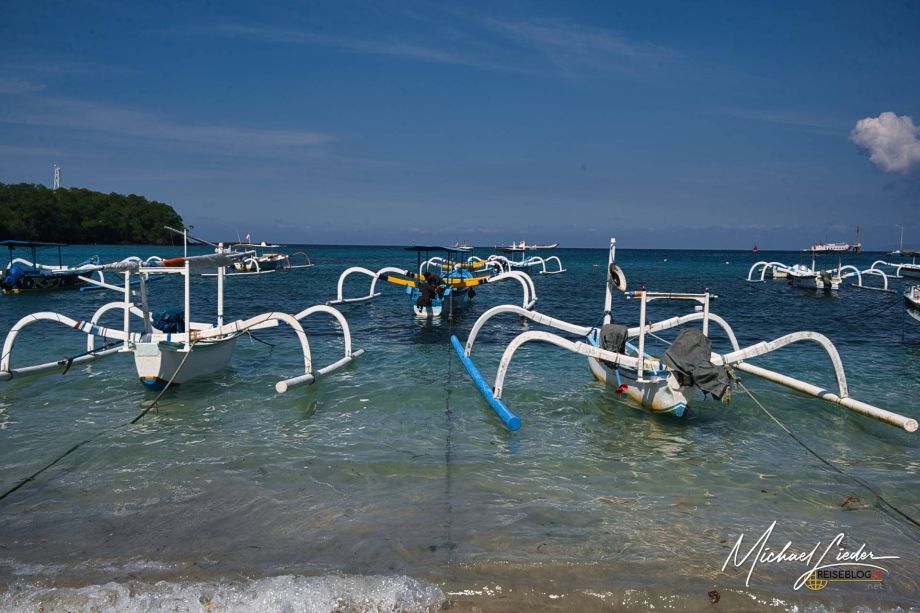 Fastboote starten oft von Sanur; je nach Bedingungen kann das Boarding auch „nass“ werden (durchs Wasser an Land/ins Boot).