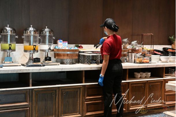 Genauso präsentieren sich auch alle anderen Bereiche des Ramada Plaza, egal in welchem Bereich man kommt, so ist der Infinity-Pool, die Rooftop Bar, der Trainingsbereich oder die großzügige Lobby. Überall wird mit viel Liebe im Detail ein modernes Hotel präsentiert, das eine Berechtigung hat in der gehobenen Klasse genannt zu werden. Aber man sieht auch, dass das Hotel nicht ausgelastet ist, ich denke, in der Belegung muss ich wieder einiges erholen bevor die Pandemie Zeit vergessen werden kann. Auffällig ist, dass sehr viele Asiaten, ich vermute Chinesen, im Hotel sind.