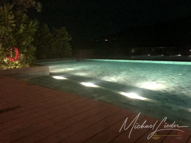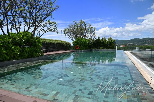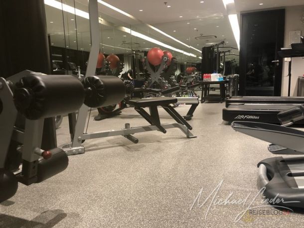 Der wunderschöne auf dem Dach gelegene Infinitypool ist schon eine Augenweide und kann von 07:00 bis 22:00 Uhr genutzt werden. Und wer es sich zutraut, bei dem heißen, schwülen Wetter auch noch sportlich aktiv zu sein, hat ein kleines aber feines Fitnessstudio zur Verfügung. Am Pool und im Studio sind natürlich WCs und Duschen vorhanden. In einem Spa-Bereich im Eingangsbereich des Hotels werden auch Massagen und Anwendungen angeboten.