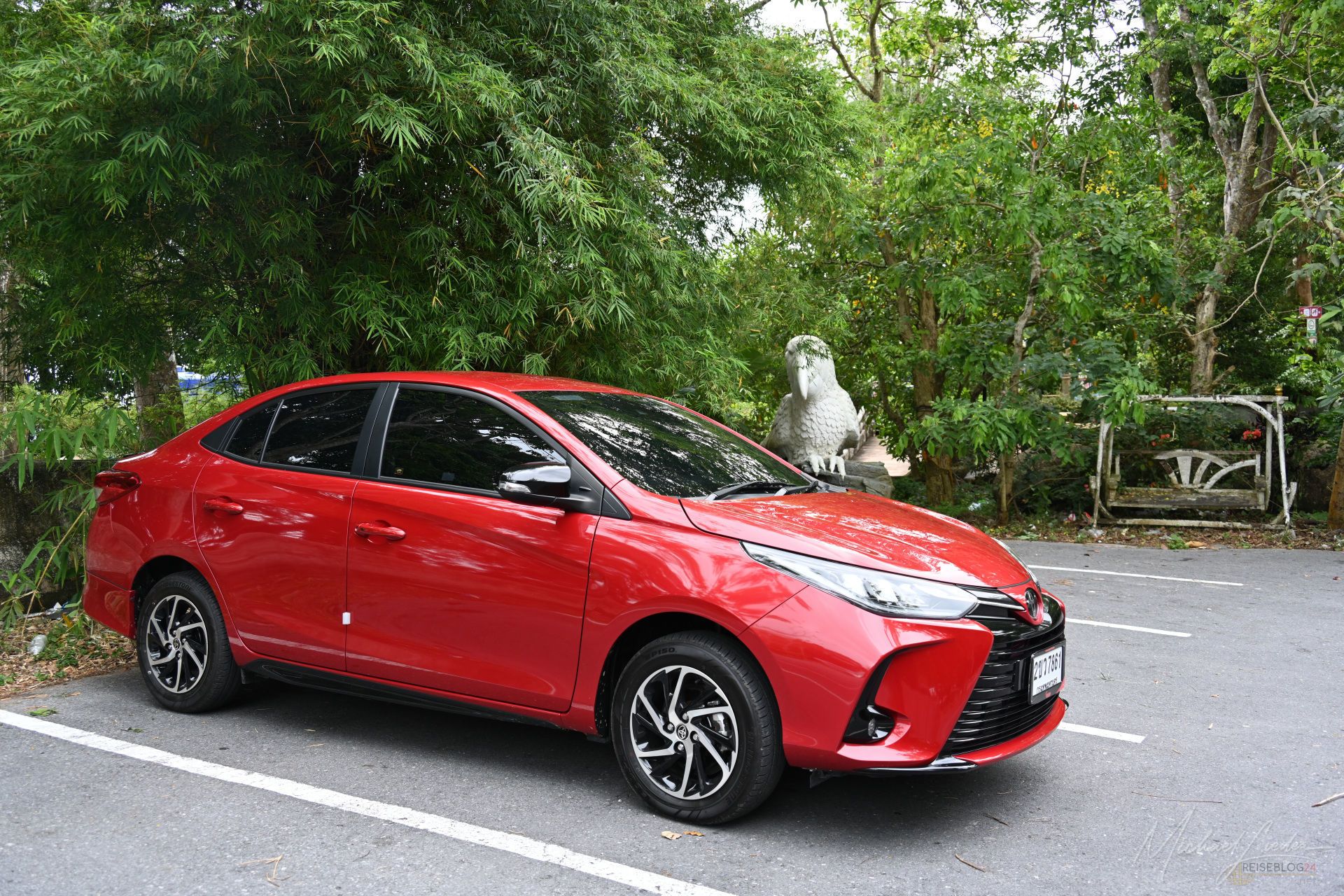 Schon die Abholung des Mietwagens ist wieder so ein typisch thailändischer Moment, der hängen bleibt. Vom Hotel aus hatte ich ein Taxi zum Flughafen vorbestellt. Abholung um 11:00 Uhr – und natürlich steht der Fahrer pünktlich an der Rezeption. Nachdem ich erzählt habe, dass ich nicht heimfliege, sondern mir einen Mietwagen hole, greift er kurzerhand zum Telefon, ruft bei der Mietwagenstation an, kündigt meine Ankunft an und klärt direkt, wo er mich genau absetzen soll.
