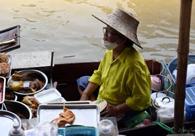 Gleich neben dem Bahnhof liegt ein kleiner Markt, der so typisch für Thailand ist, dass man am liebsten alles fotografieren möchte: Streetfood, das duftet, als würde die Sonne selbst darin schmoren, bunte Kleider, kitschige Andenken – und manchmal spielt jemand Gitarre und pfeift dabei, ja, genau diese Melodie.