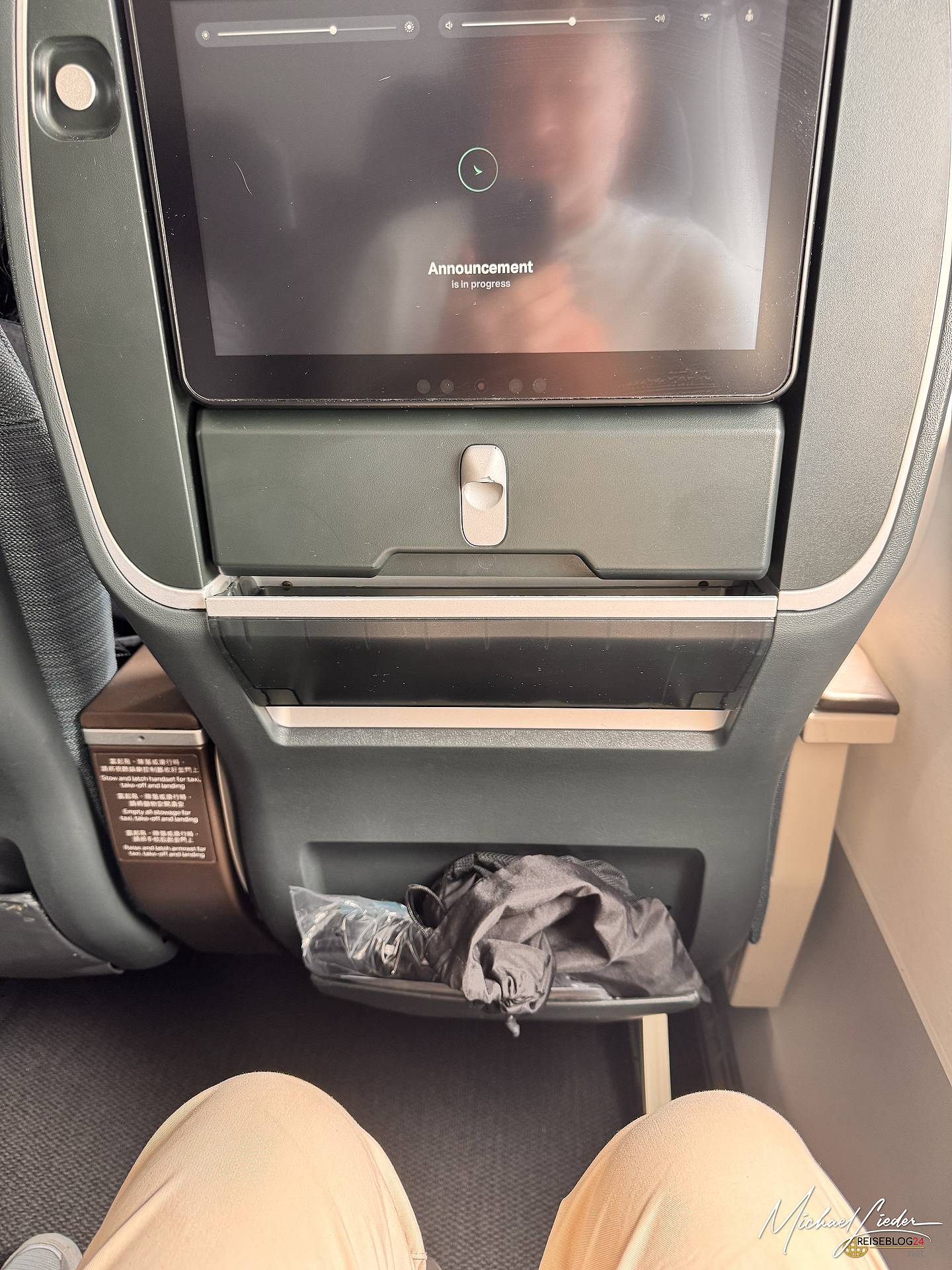 Wer sich für ein Upgrade auf Premium Economy entscheidet, erwartet in der Regel etwas mehr: Beinfreiheit, bessere Polsterung, mehr Neigung, mehr Ruhe. Cathay Pacific bietet das – aber leider nicht konsistent.