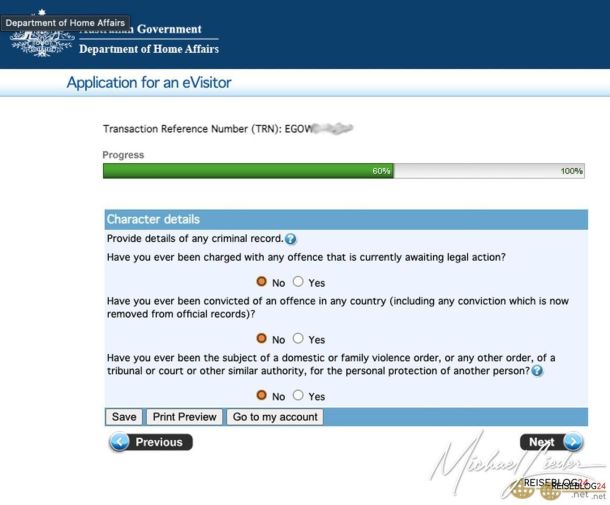 - Du musst Dich in Australien aufhalten, wenn Du Deinen Antrag stellen willst und wenn über den Antrag entschieden wird.