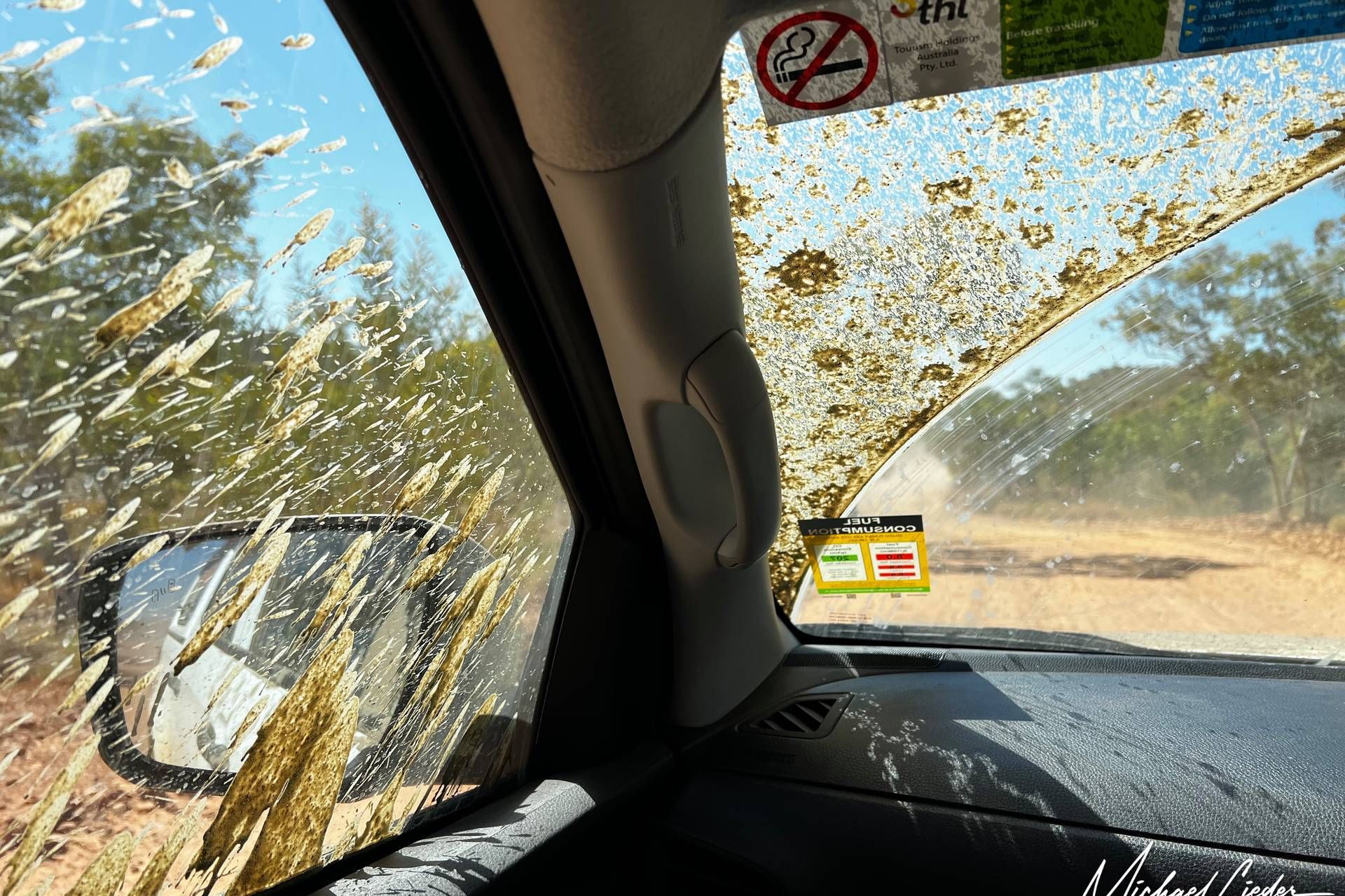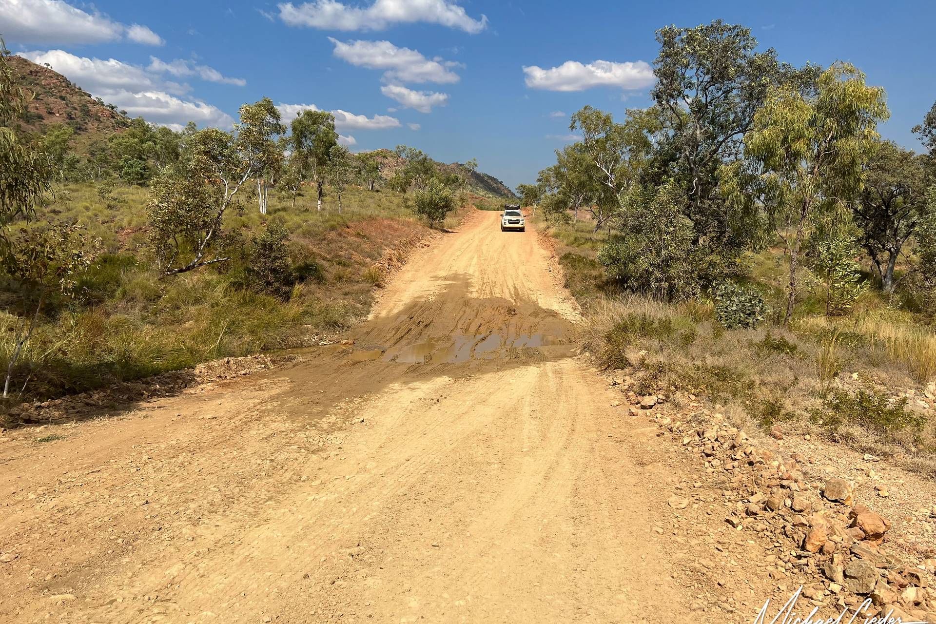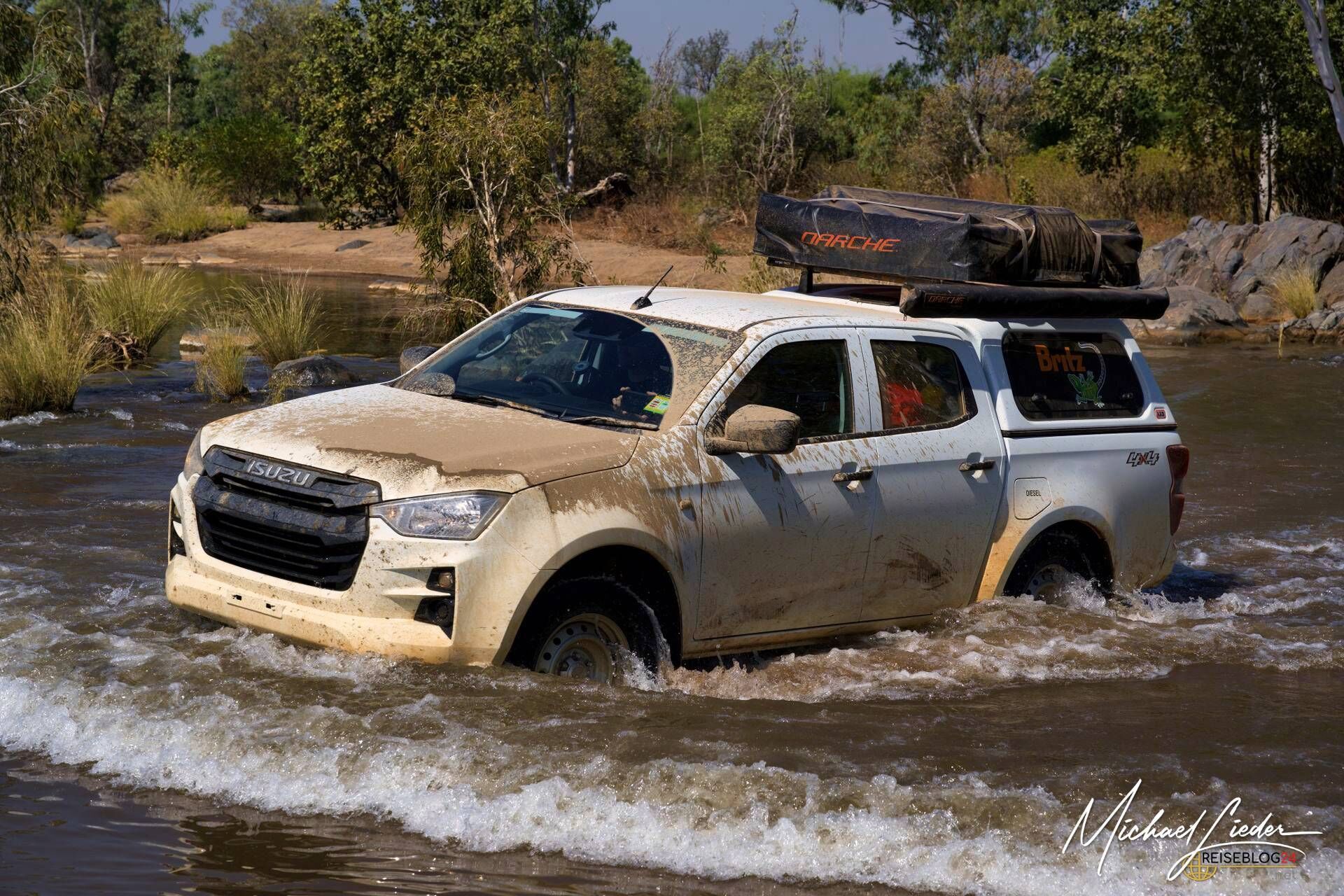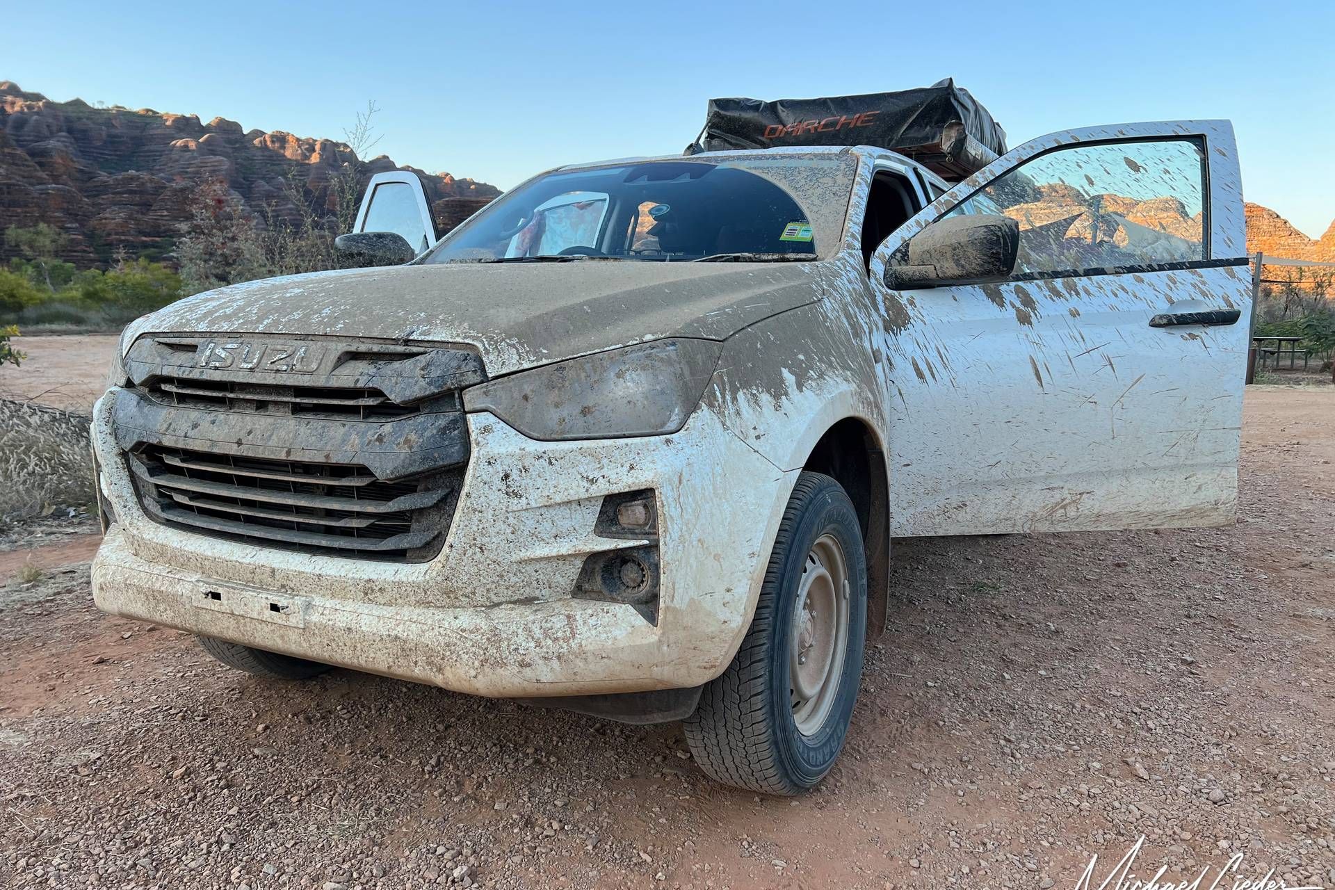 Doch vorher musste uns der Purnululu Nationalpark noch verabschieden. Und das tut er nicht mit Handschlag, sondern mit Tiefgang. 25 Kilometer Track lagen vor uns. Auf der Karte eine Randnotiz, in der Realität eine fast dreistündige Prüfung für Mensch und Maschine. Tiefe Spurrillen, lose Steine, Schlammlöcher, die aussehen, als hätten sie schon bessere Fahrzeuge gesehen. Jeder Meter rüttelte durch, jeder Schlag ließ erahnen, dass hier nichts geschenkt wird.