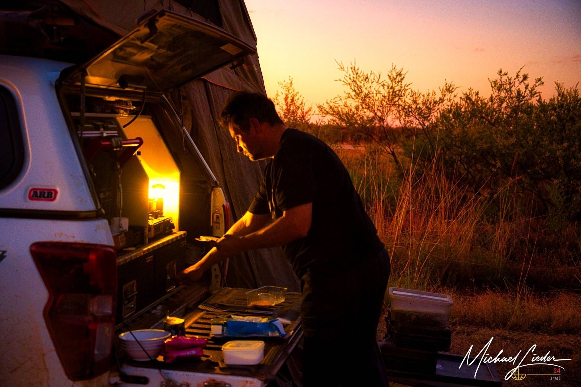 Die Abende im Purnululu Nationalpark waren genauso magisch wie die Tage. Die klaren Nächte boten einen Blick auf den funkelnden Sternenhimmel, wie ich ihn nie zuvor gesehen hatte. Wir saßen vor dem Pickup und haben uns über den vergangenen Tag und seine fantastischen Erlebnisse unterhalten, und fühlten uns mit der Natur und der Geschichte des Ortes verbunden.