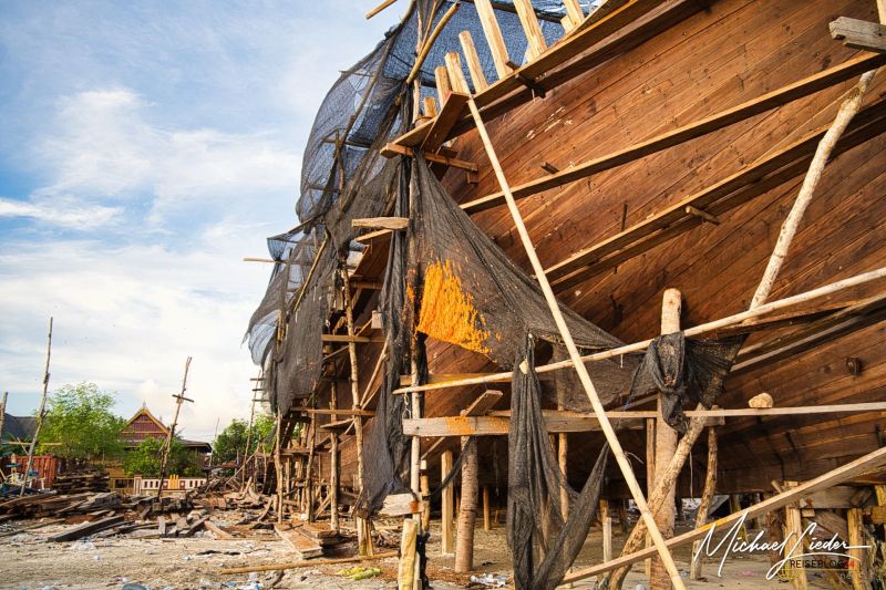 Die Phinisi sind mehr als Boote. Sie sind schwimmende Zeugnisse von Wissen, Geduld und handwerklicher Präzision. Ohne Baupläne im westlichen Sinn, dafür mit Erfahrung, Augenmaß und überliefertem Können entstehen hier Schiffe, deren geschwungene Linien und charakteristische Segel perfekt auf Wind und Meer abgestimmt sind. Entlang der Küste liegen sie in allen Stadien: vom rohen Holzgerüst bis zum fast fertigen Schiff, bereit für neue Wege. Es lohnt sich, stehen zu bleiben und zuzuschauen. Die Handwerker arbeiten konzentriert, ruhig, mit einer Selbstverständlichkeit, die beeindruckt. Holz wird hier nicht einfach bearbeitet, sondern verstanden. Gespräche entstehen schnell, Geschichten werden gern geteilt, und man spürt den Stolz auf diese jahrhundertealte Tradition, die bis heute lebendig ist.