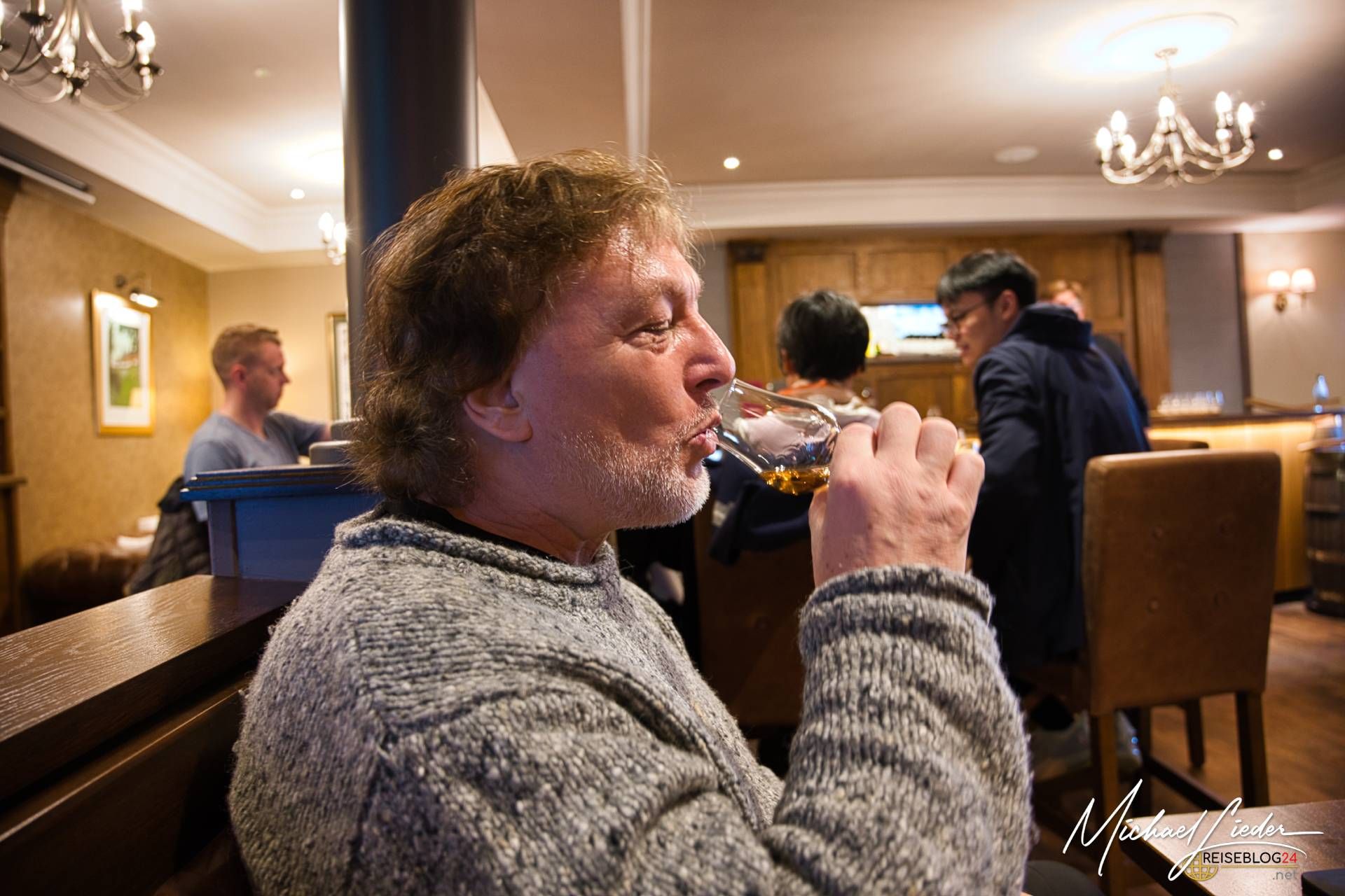 Zwischen den Schlucken lerne ich, wie man riecht, schmeckt, zuhört. Blumige Noten, Frucht, Süße, Tiefe. Und irgendwo dazwischen das nordirische Klima, das alles zusammenhält – kühl, feucht, geduldig.