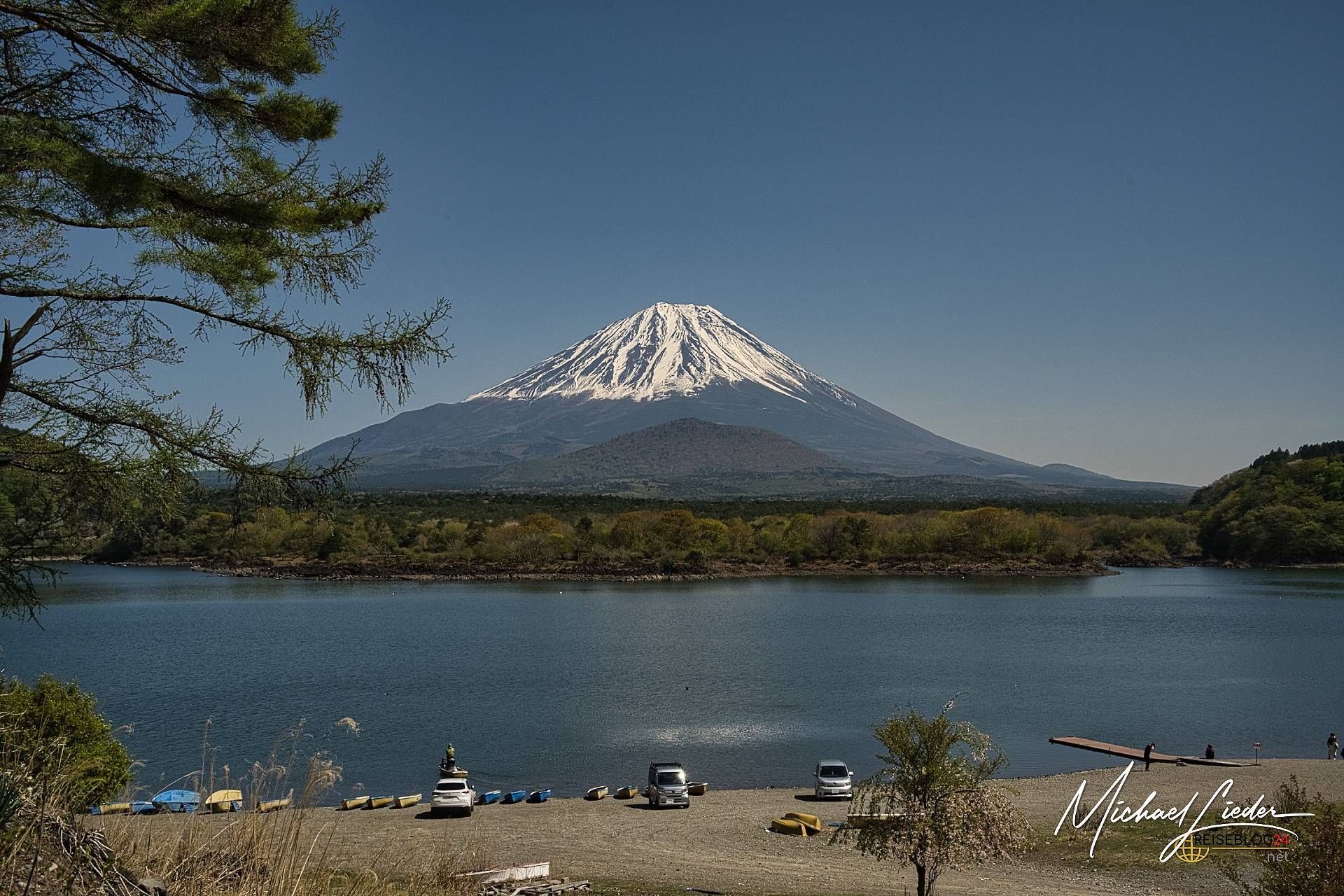 Ich erinnere mich noch genau: Es war einer dieser seltenen Momente, in denen alles passte – der Schrein am Seeufer spiegelte sich im stillen Wasser, der Nebel stieg langsam über die Hügel, und der Fuji-san stand da wie immer: geduldig, majestätisch, schweigend. Ein Anblick, der das Herz berührt. Und nein, wir waren natürlich nicht allein. Aber wir hatten den Wecker bezwungen und standen bereits beim ersten Licht des Tages an unserem Spot – zusammen mit einer Handvoll anderen Wahnsinnigen, die dasselbe vorhatten.