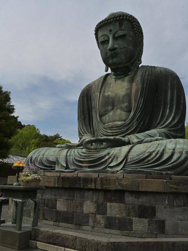 Der berühmte Große Buddha von Kamakura (Daibutsu) ist 11,3 Meter hoch, aus Bronze gefertigt und saß ursprünglich in einem Tempel. Dieser wurde jedoch mehrfach durch Tsunamis zerstört – der Buddha blieb und blickt seither unter freiem Himmel aufs Meer.