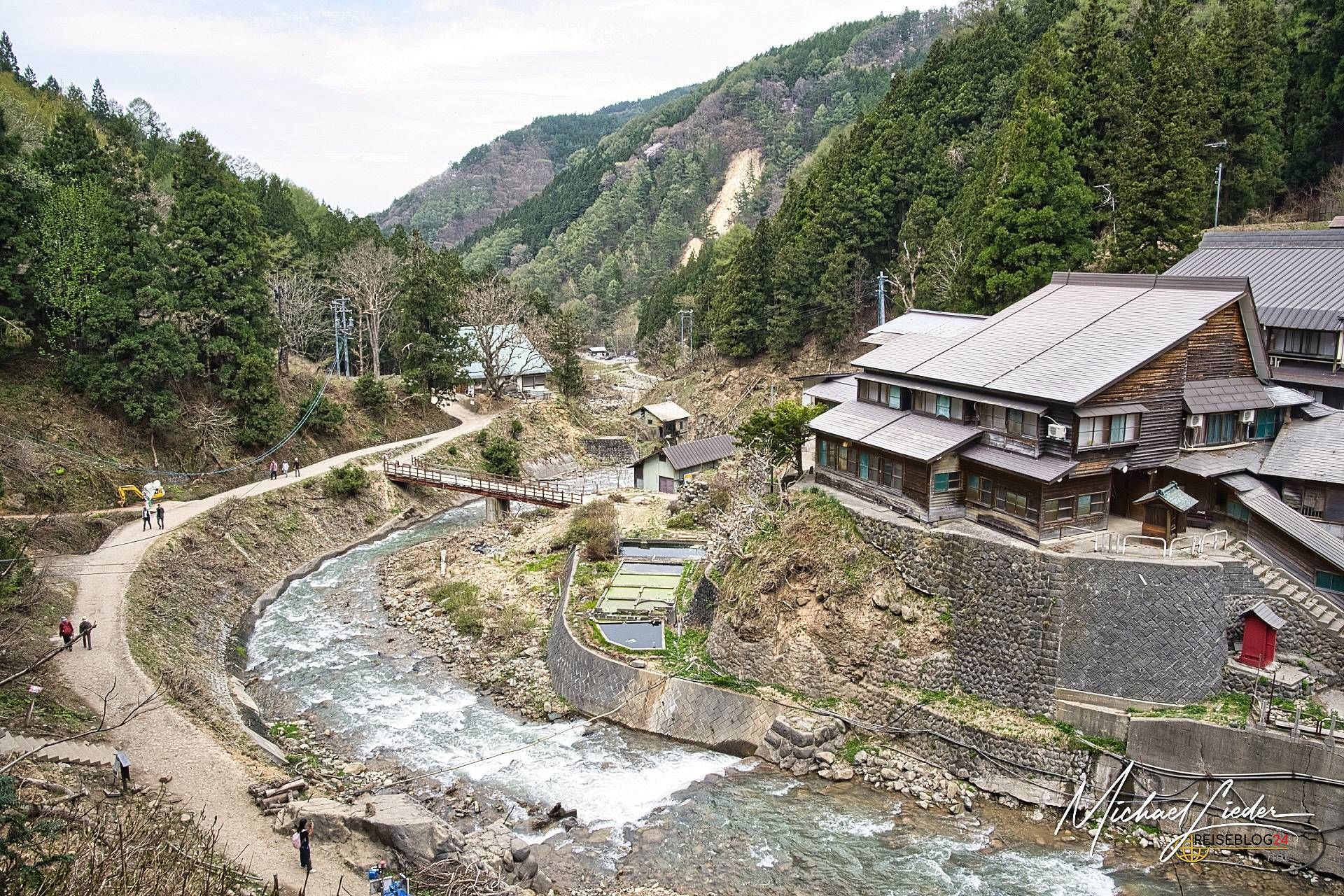 Wir übernachteten in einem gemütlichen Ryokan in der Nähe und entschieden uns, nicht zu Fuß zu starten, sondern direkt mit dem Auto zum offiziellen Parkplatz zu fahren – immerhin wollten wir nach dem Besuch direkt weiterreisen. Vom Parkplatz aus ging es dann zu Fuß weiter: etwa 30 Minuten entlang eines schmalen Waldpfads, begleitet vom leisen Rauschen des Yokoyu-Flusses. Der Geruch von Schwefel in der Luft kündigte an, dass die Onsen nicht mehr weit waren.