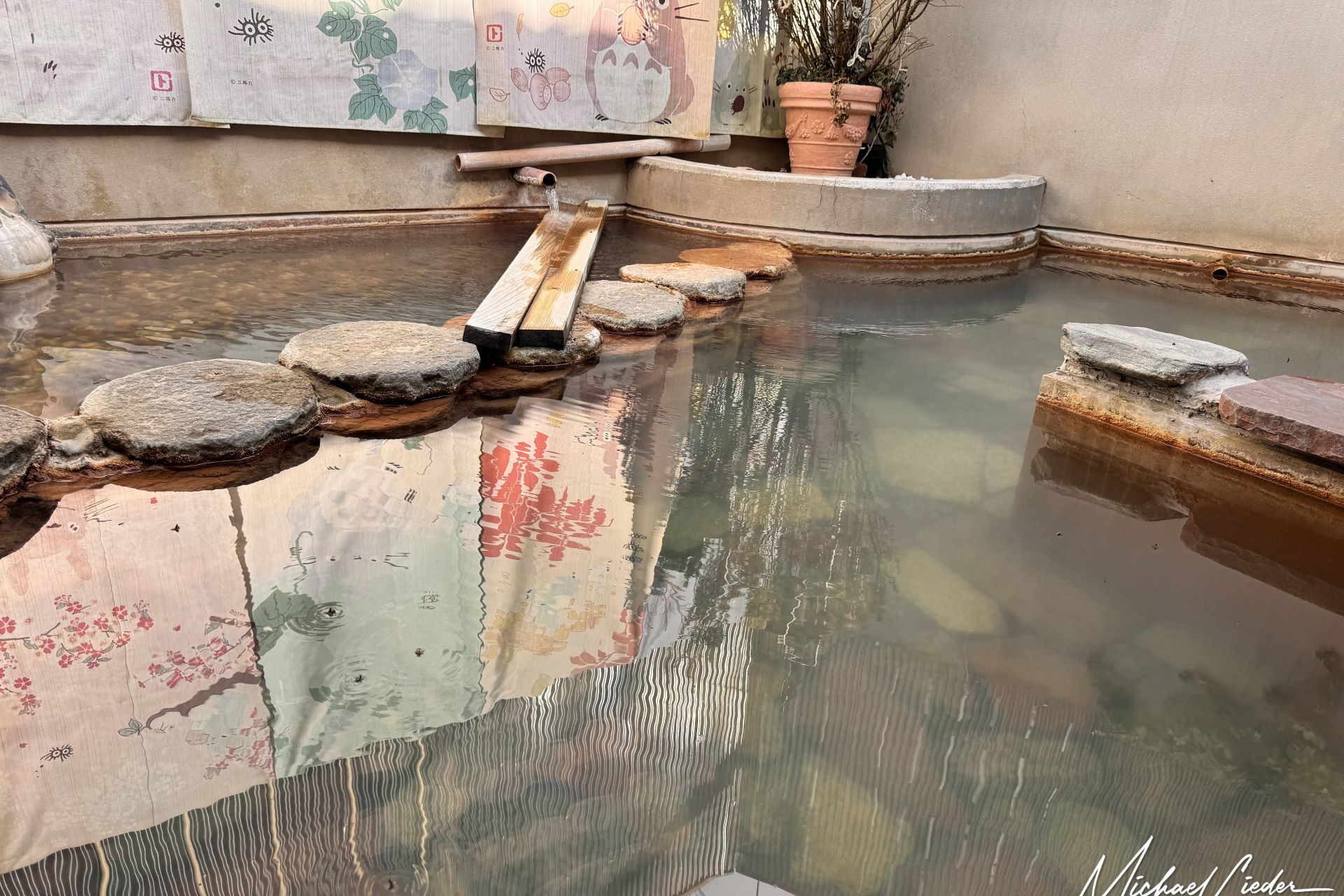 Glücklicherweise hatten wir im Ryokan einen eigenen privaten Onsen. Keine Musik, keine fremden Körperteile, keine Verwirrung über Etikette. Einfach nur Ruhe, heißes Wasser und das Gefühl, in einer Teekanne zu sitzen – aber auf die angenehme Art. Das war mein Onsen-Moment. Und ja, da konnte ich mich sogar entspannen, ohne mir Gedanken darüber zu machen, wo ich mein Handtuch parken muss.