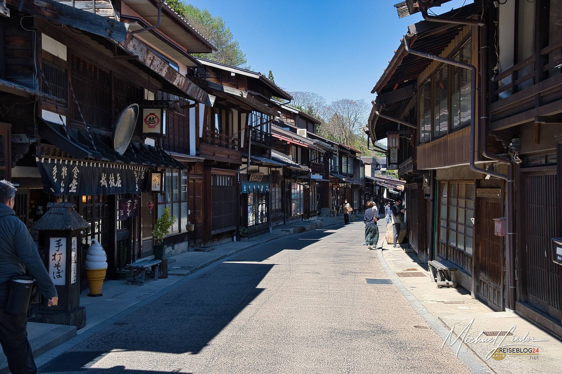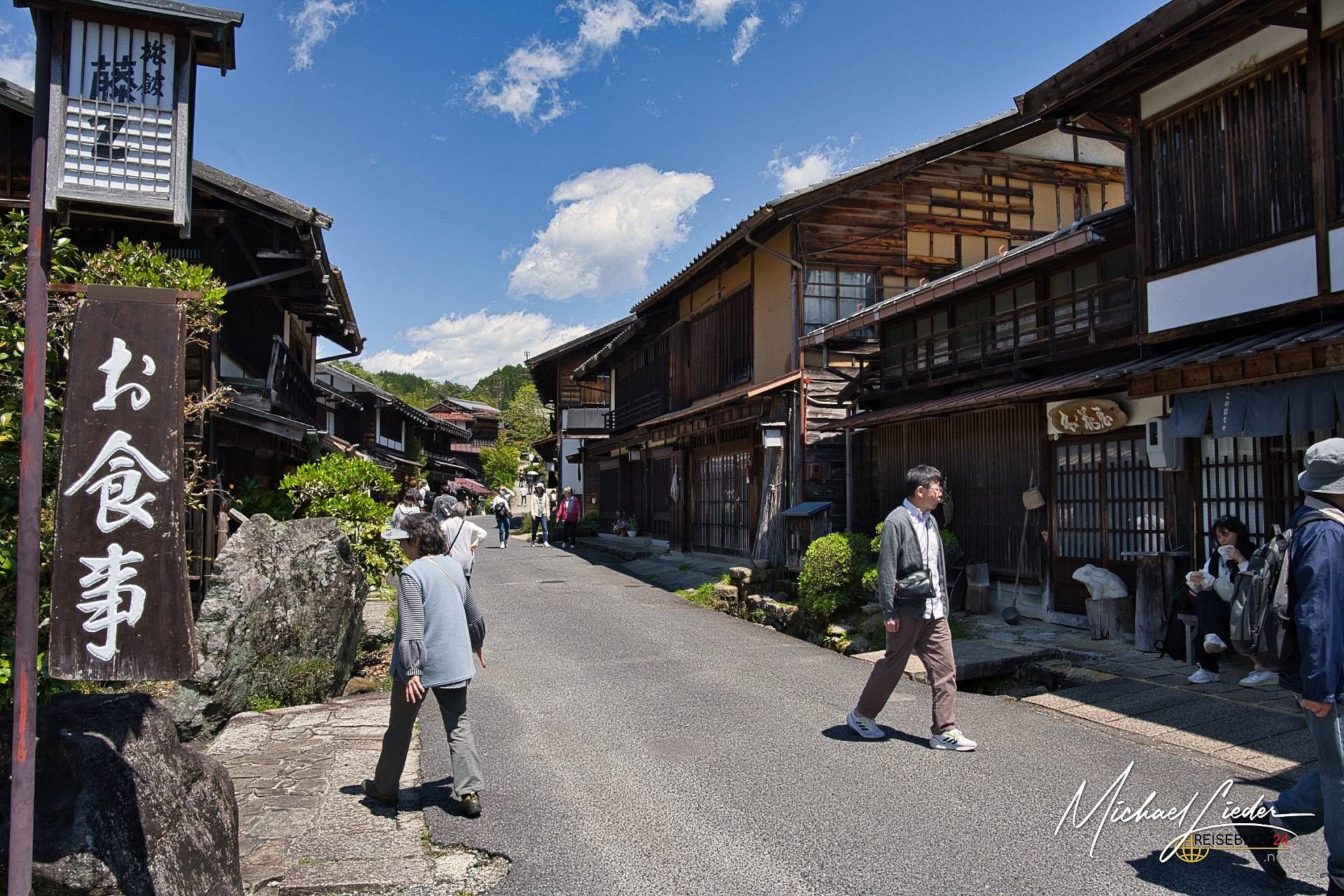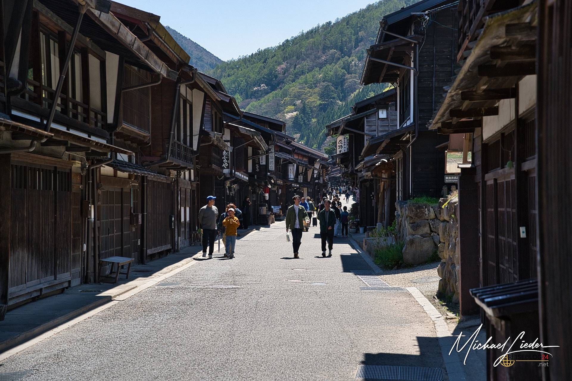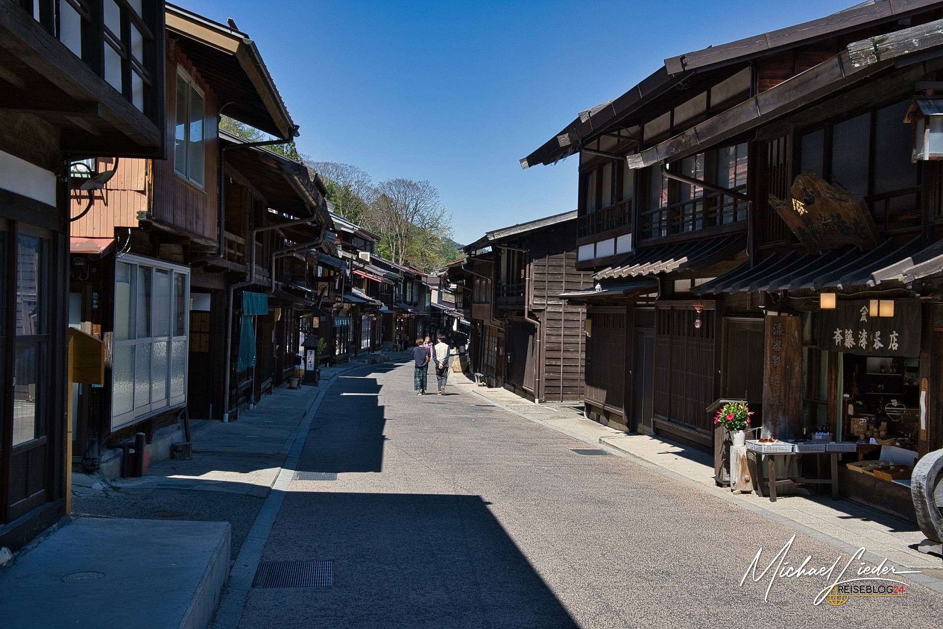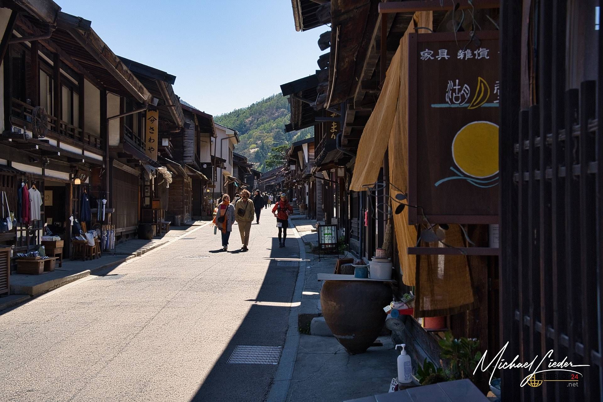 Zaghaft öffnen erste Geschäfte ihre Schiebetüren, in den kleinen Läden werden Souvenirs sortiert, und die ersten Reisdämpfe steigen aus den Garküchen auf. Es ist, als würde man in eine andere Zeit eintauchen. Wenn man sich das Asphaltband wegdenkt und es durch einen Sand- und Kiesweg ersetzt – dann ist die Illusion perfekt: eine Zeitreise in die Edo-Zeit.