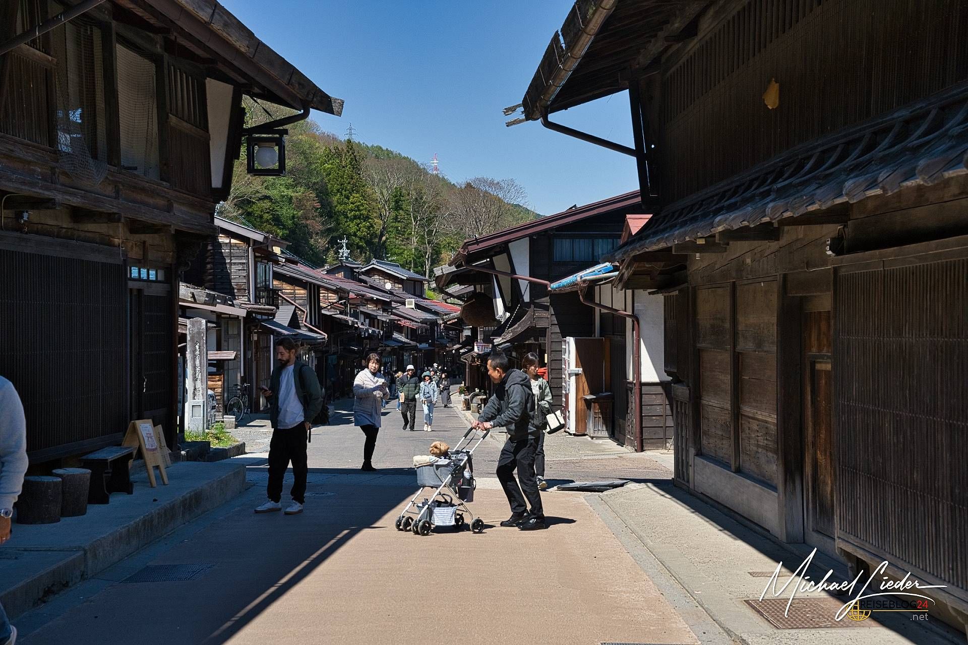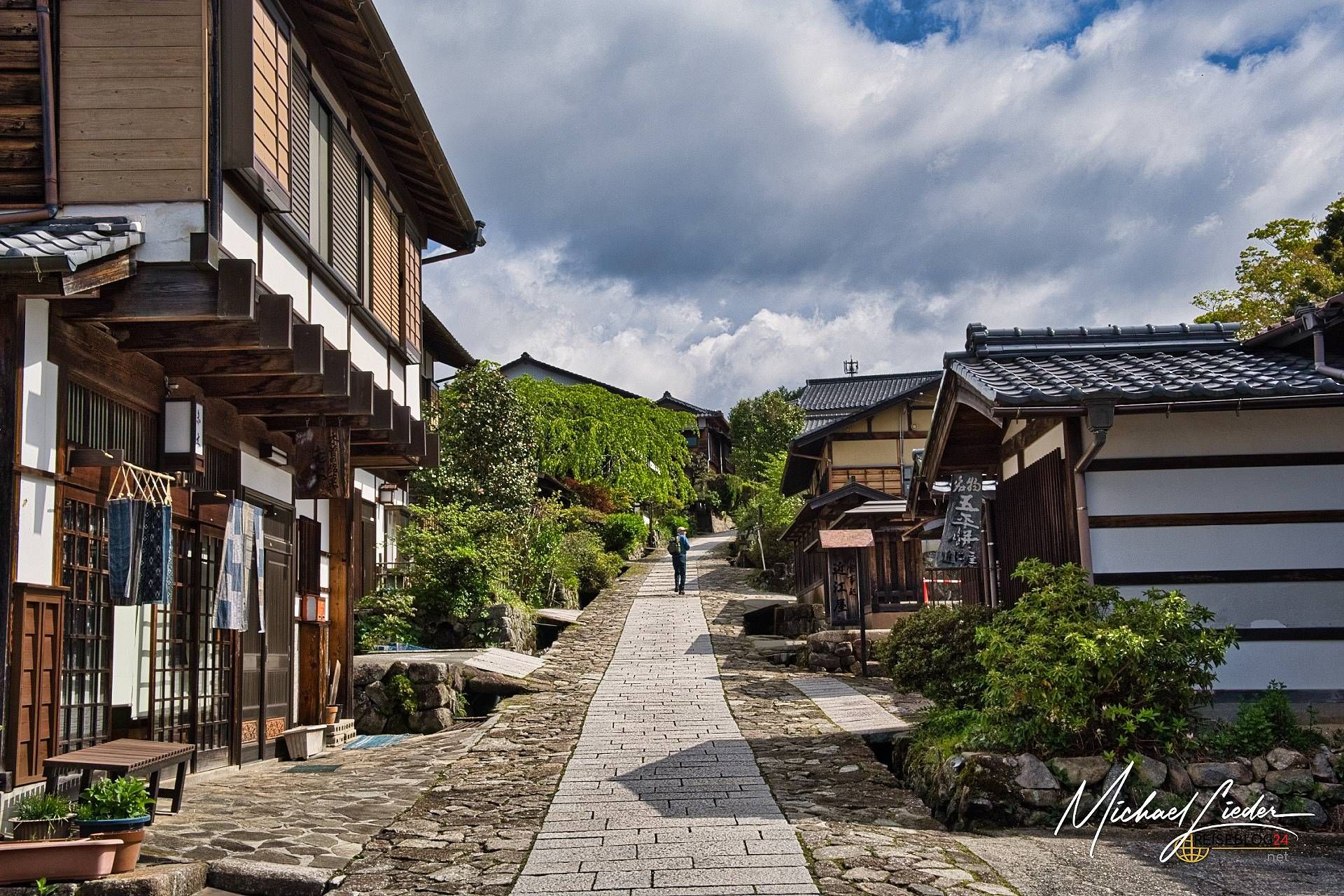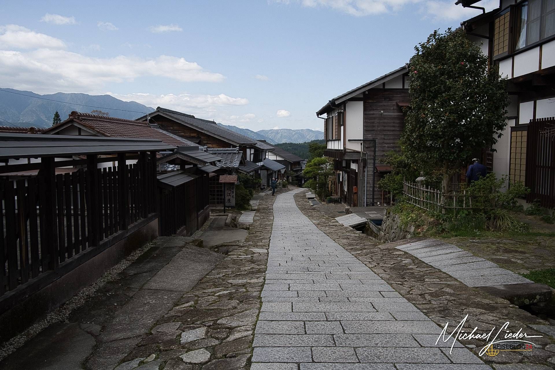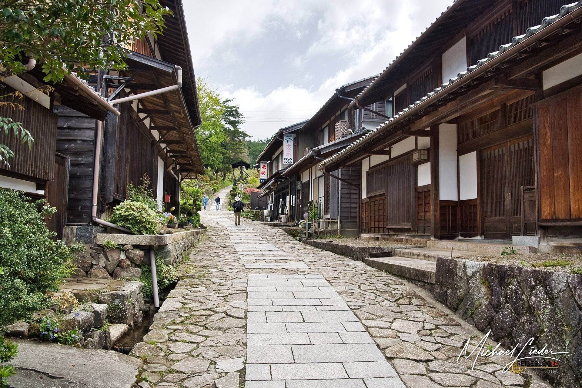 Zaghaft öffnen erste Geschäfte ihre Schiebetüren, in den kleinen Läden werden Souvenirs sortiert, und die ersten Reisdämpfe steigen aus den Garküchen auf. Es ist, als würde man in eine andere Zeit eintauchen. Wenn man sich das Asphaltband wegdenkt und es durch einen Sand- und Kiesweg ersetzt – dann ist die Illusion perfekt: eine Zeitreise in die Edo-Zeit.