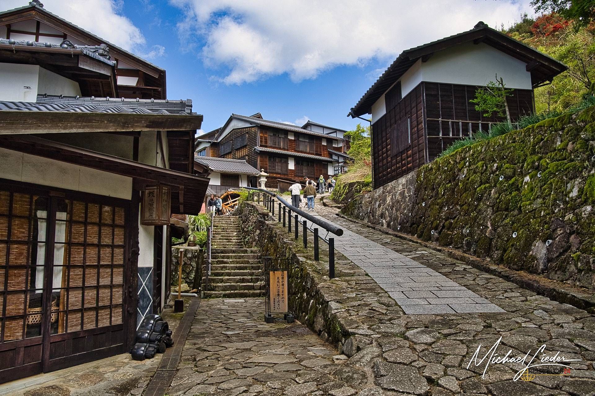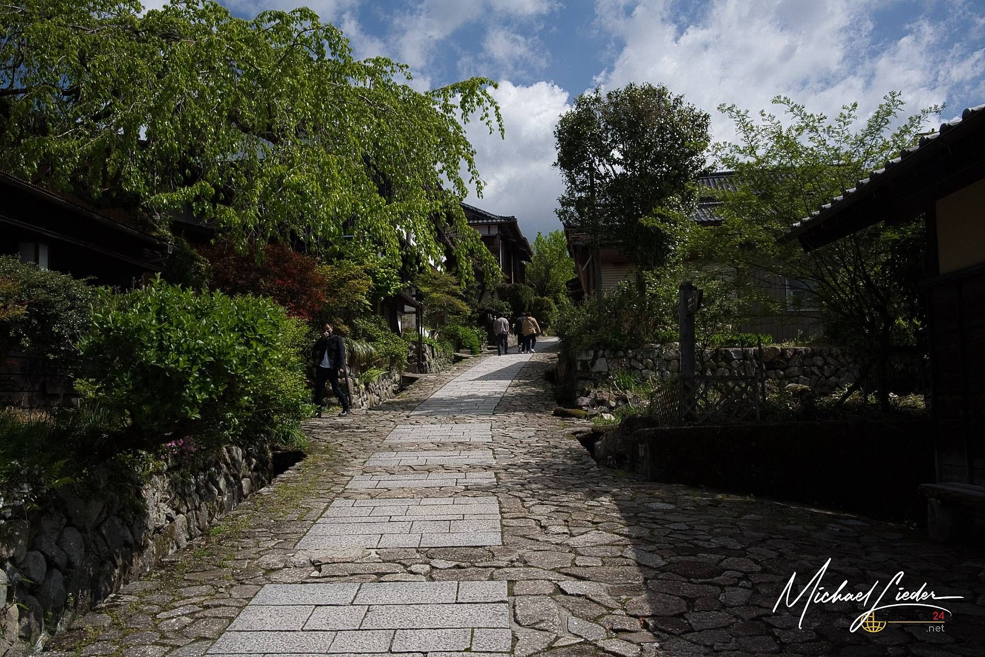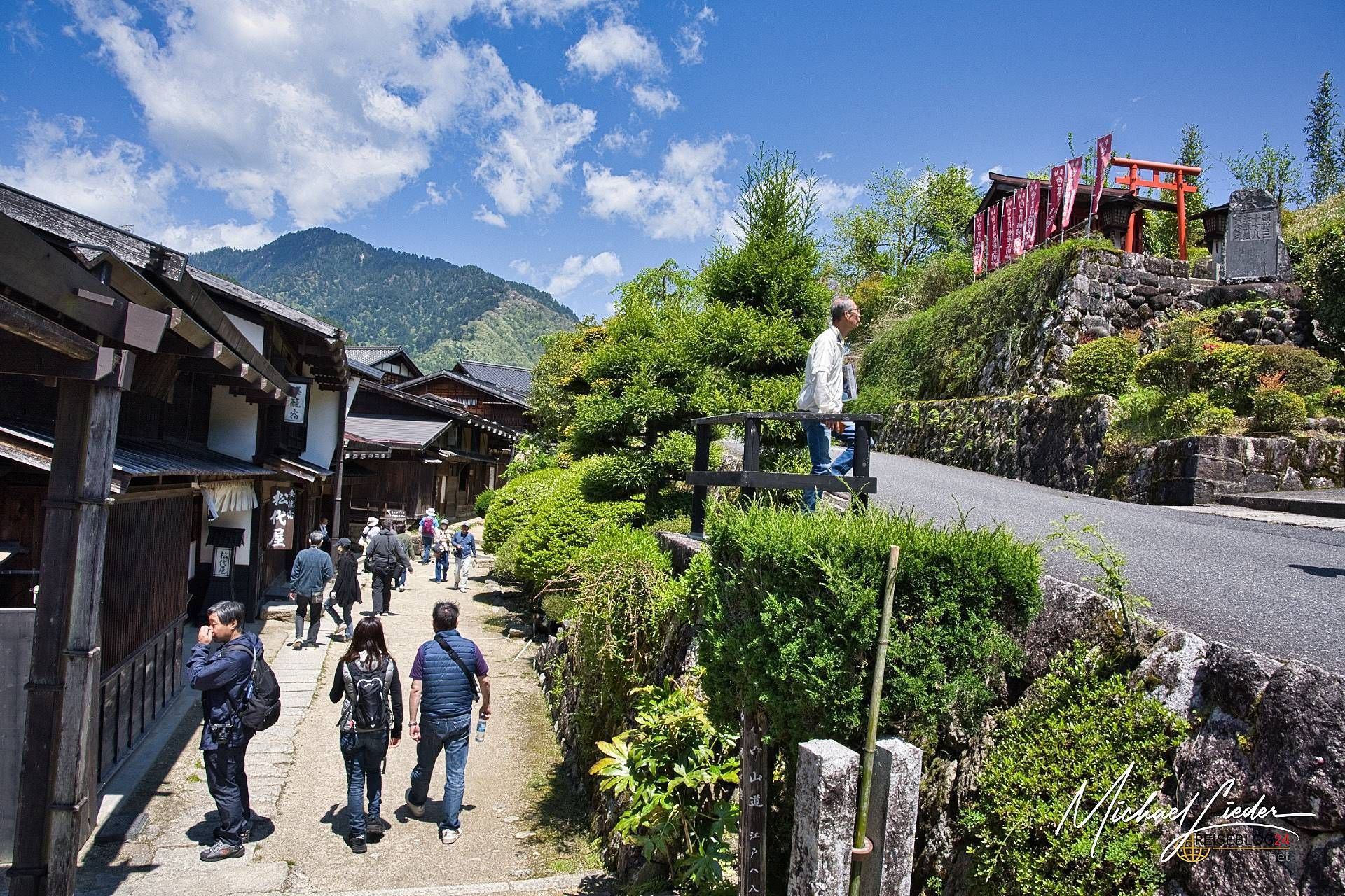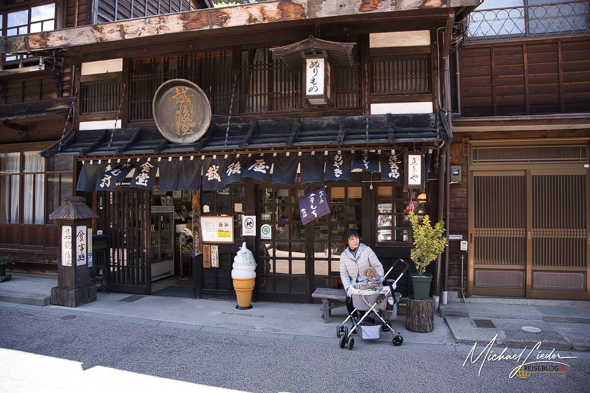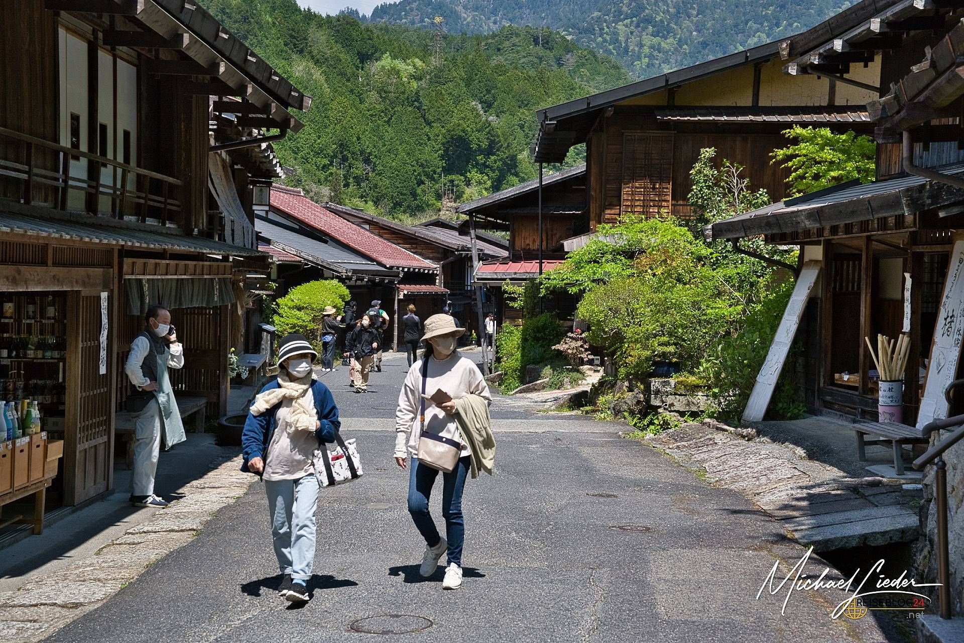 Zaghaft öffnen erste Geschäfte ihre Schiebetüren, in den kleinen Läden werden Souvenirs sortiert, und die ersten Reisdämpfe steigen aus den Garküchen auf. Es ist, als würde man in eine andere Zeit eintauchen. Wenn man sich das Asphaltband wegdenkt und es durch einen Sand- und Kiesweg ersetzt – dann ist die Illusion perfekt: eine Zeitreise in die Edo-Zeit.
