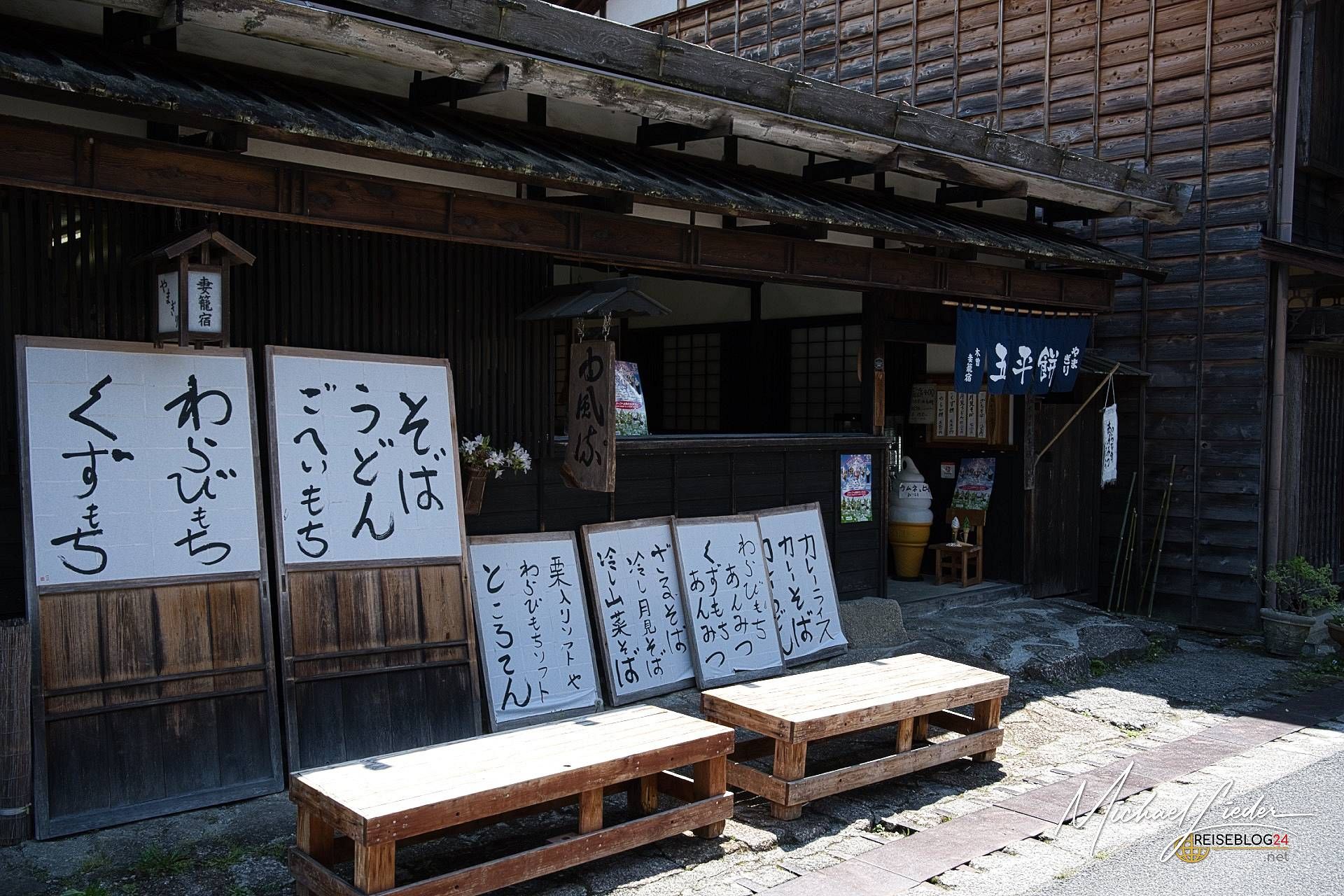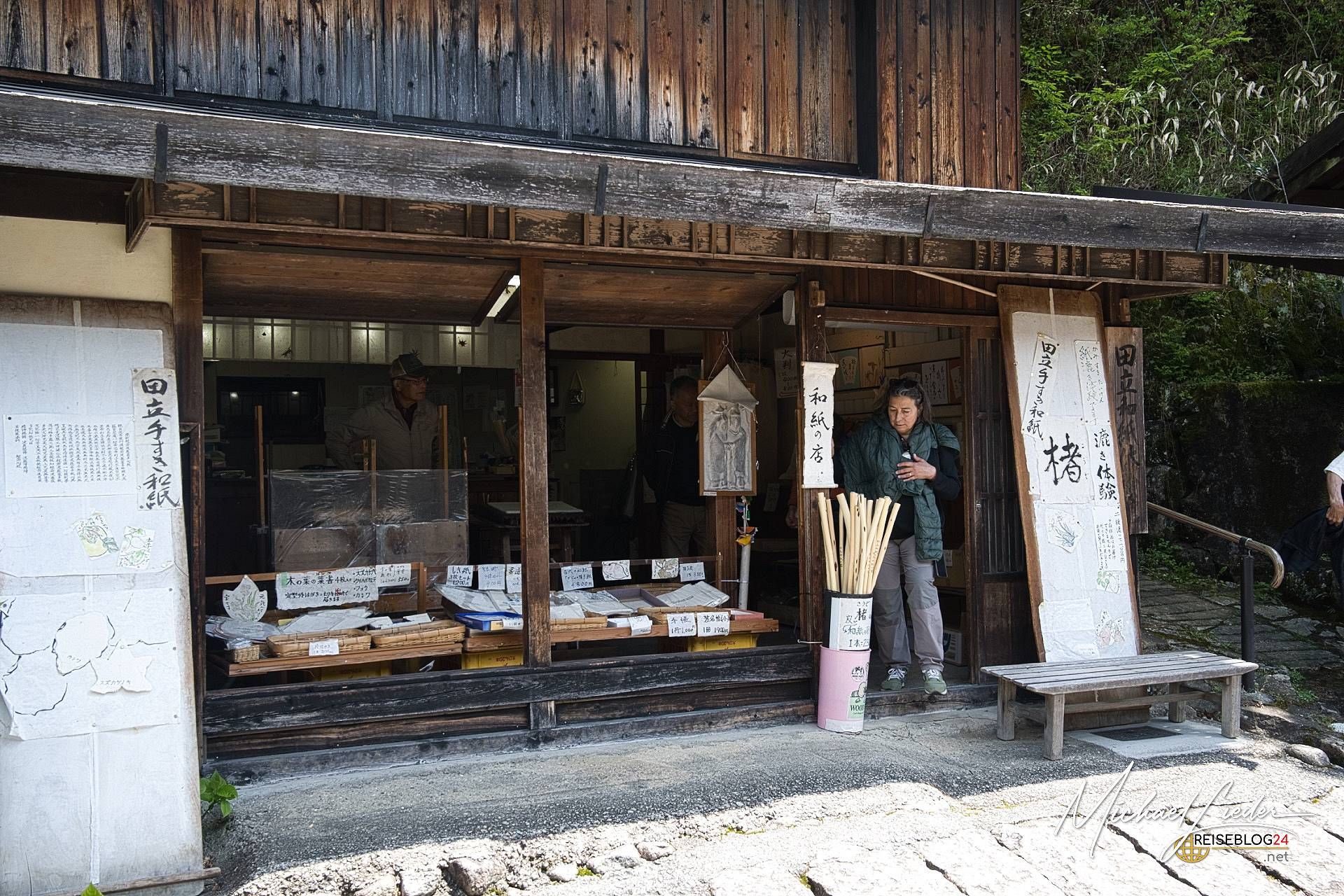 - In Tsumago gibt es süße kleine Teehäuser, in denen du dir mit Matcha oder Yomogi-Mochi (Beifuß-Mochi) eine Pause gönnen kannst.