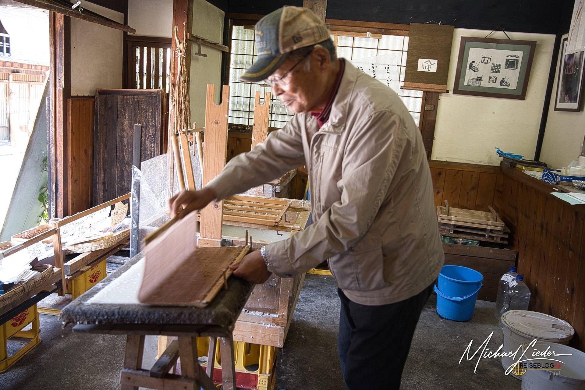 Besonders beeindruckt haben mich die Handwerksläden. In einigen der alten Handelsstationen wird heute noch traditionelles Kunsthandwerk gezeigt – nicht als touristische Show, sondern mit echter Leidenschaft. Ich blieb lange bei einer älteren Frau stehen, die in stiller Konzentration kunstvolle Strohhüte flocht. Ein paar Schritte vorher erklärte mir ein freundlicher älterer Herr die Schritte der Washi-Papierherstellung. Seine Hände wirkten vom Leben gezeichnet, aber bei jedem Handgriff spürte man die Erfahrung und Hingabe. Dass ich ihm auf Englisch ein paar Fragen stellen durfte – und er sich die Zeit nahm, mir alles zu zeigen – war ein besonderer Moment für mich.