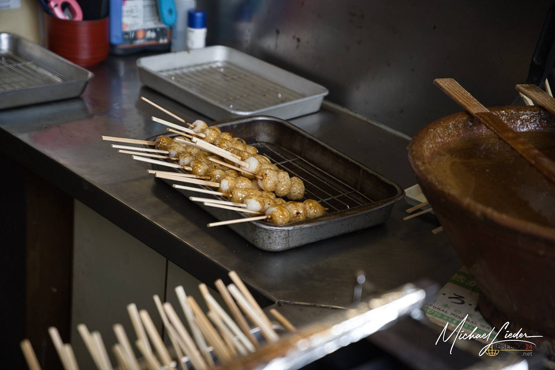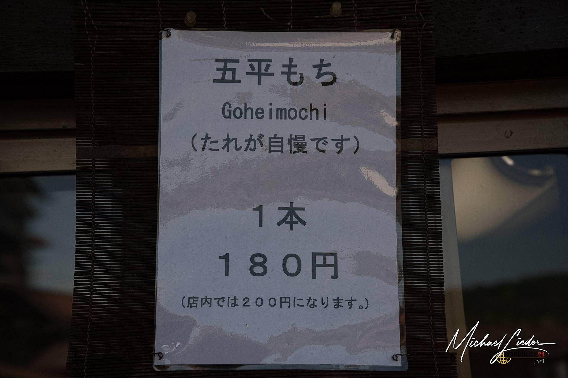 Ich habe mich besonders auf das Frühstück gefreut, das es so nur in dieser Region gibt: Gohei-Mochi – gegrillte Reiskuchen, überzogen mit einer herzhaften Miso-Sauce. Einfach köstlich und genau das Richtige, um mit gestärktem Magen durch die verwinkelten Gassen zu schlendern.