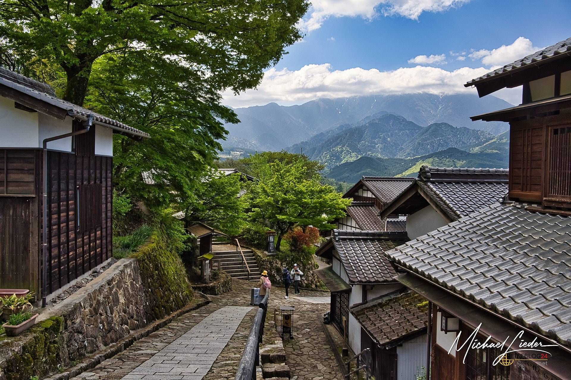 - In Magome bietet der obere Dorfeingang einen wunderschönen Blick über das ganze Tal.
