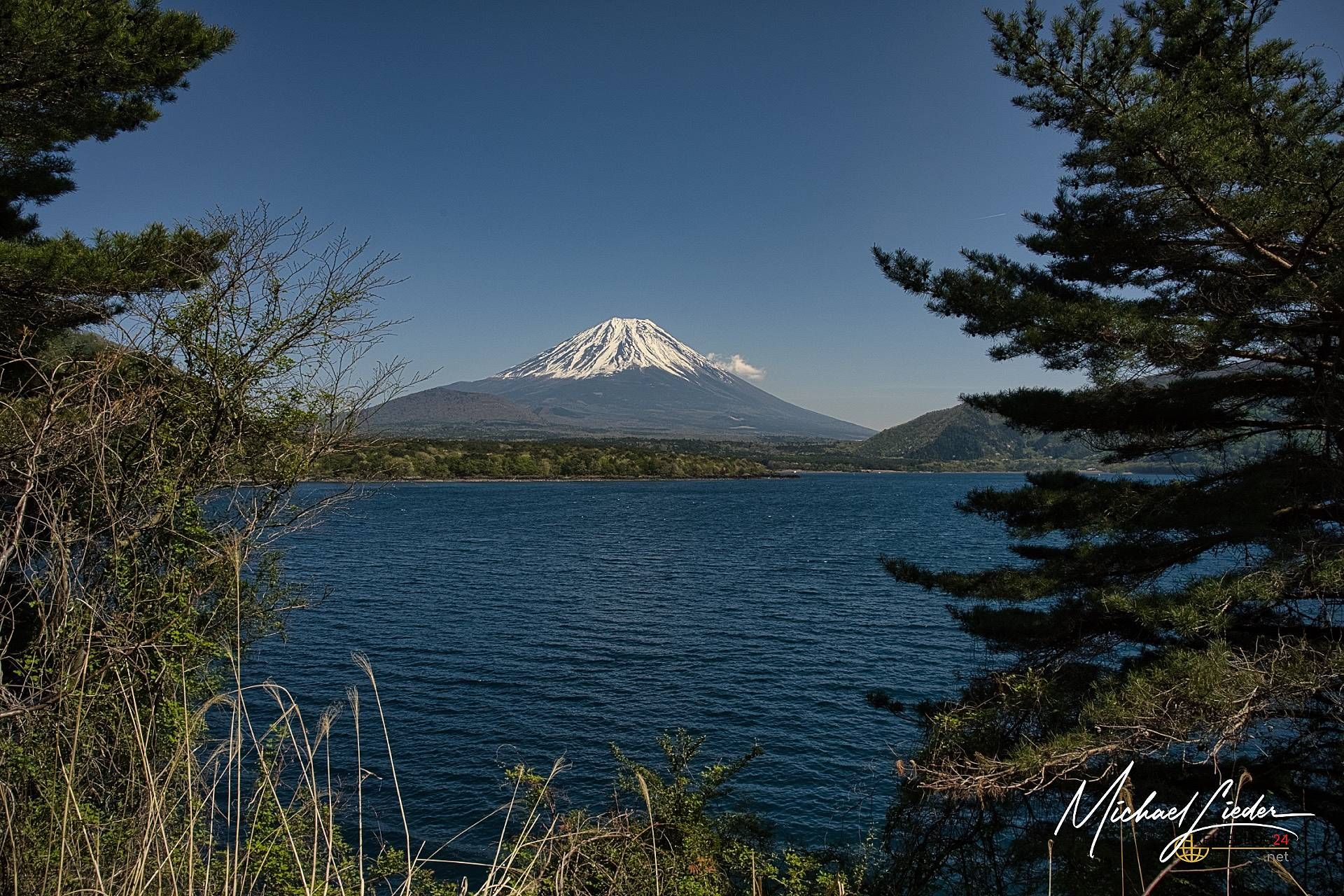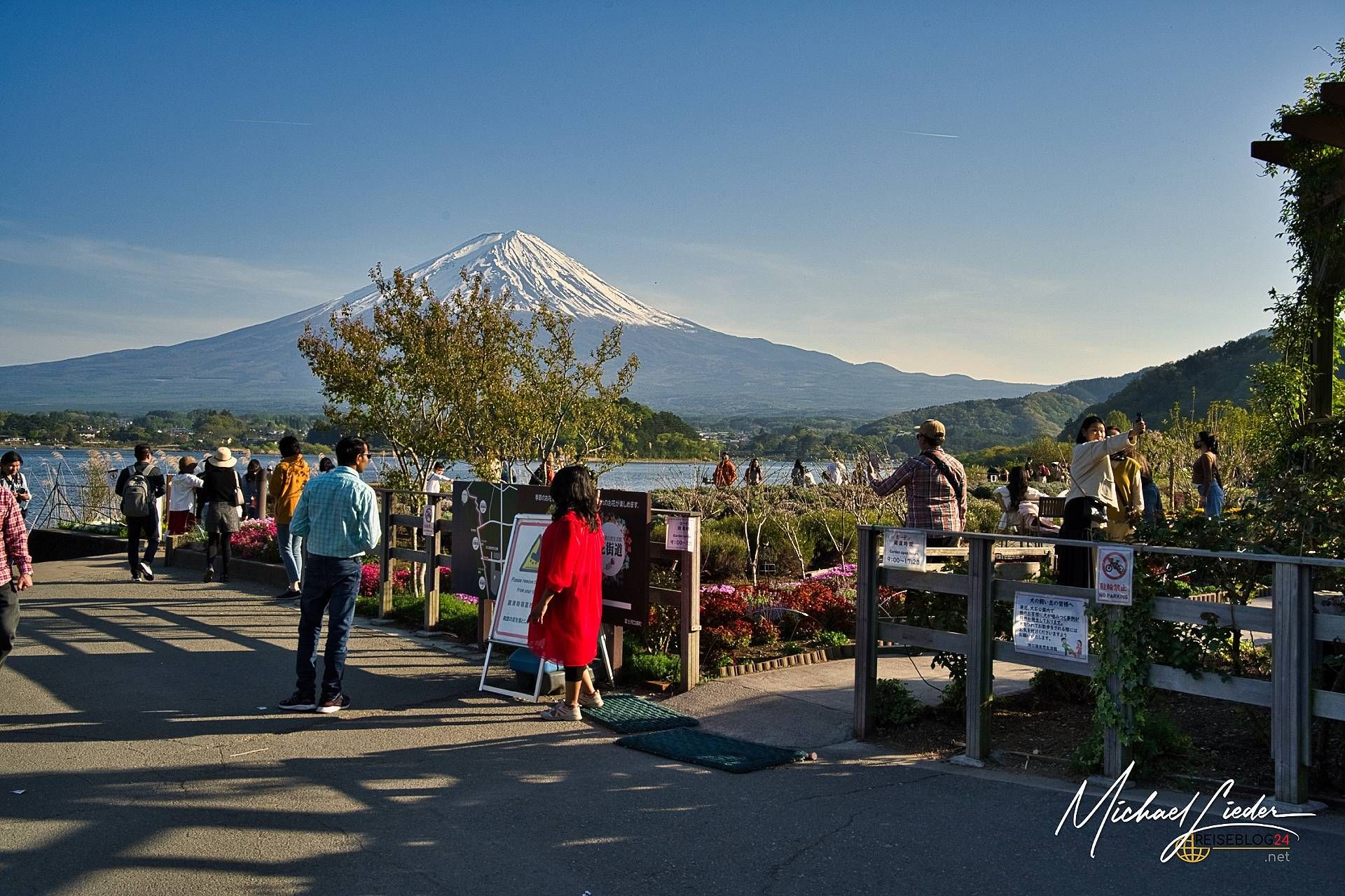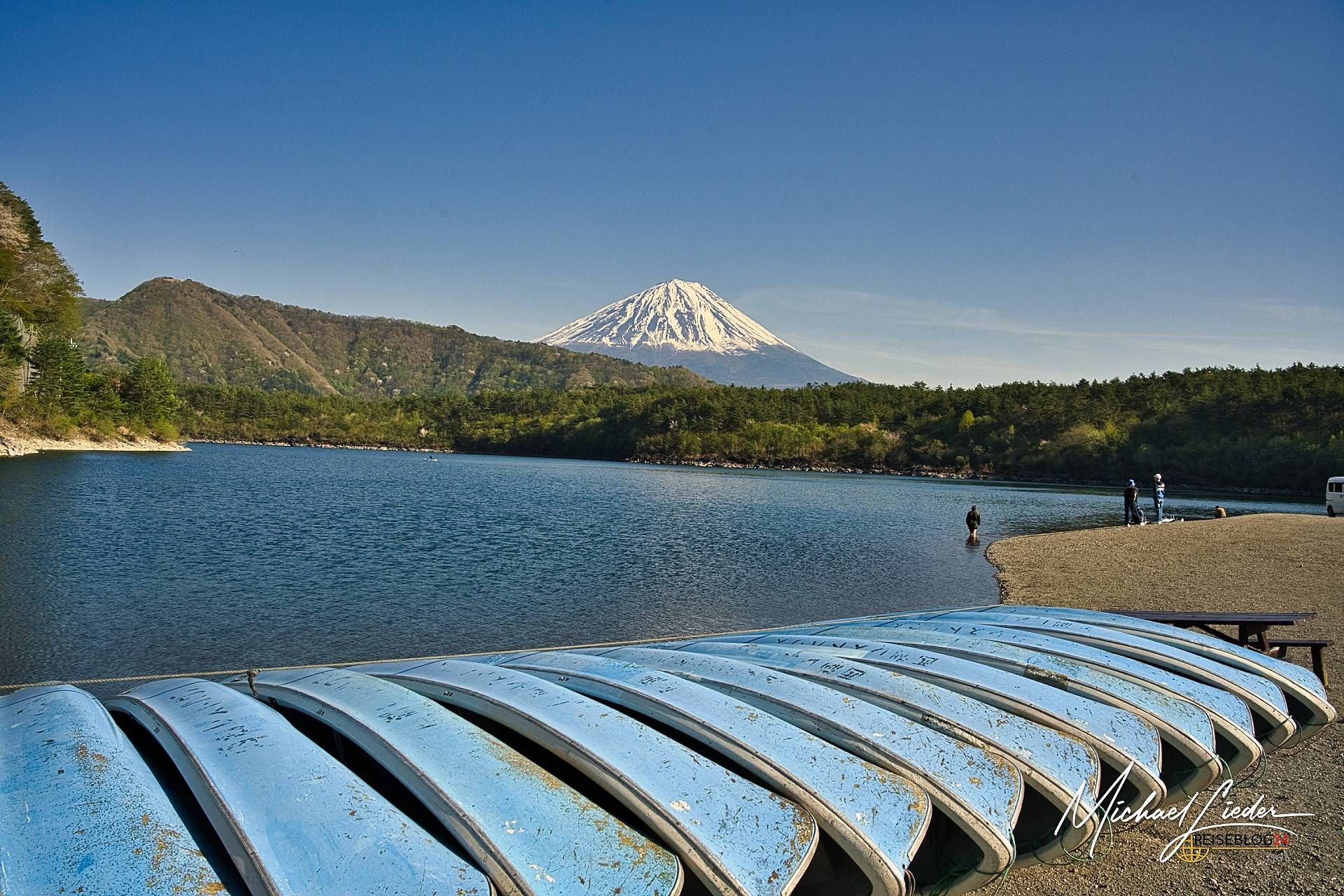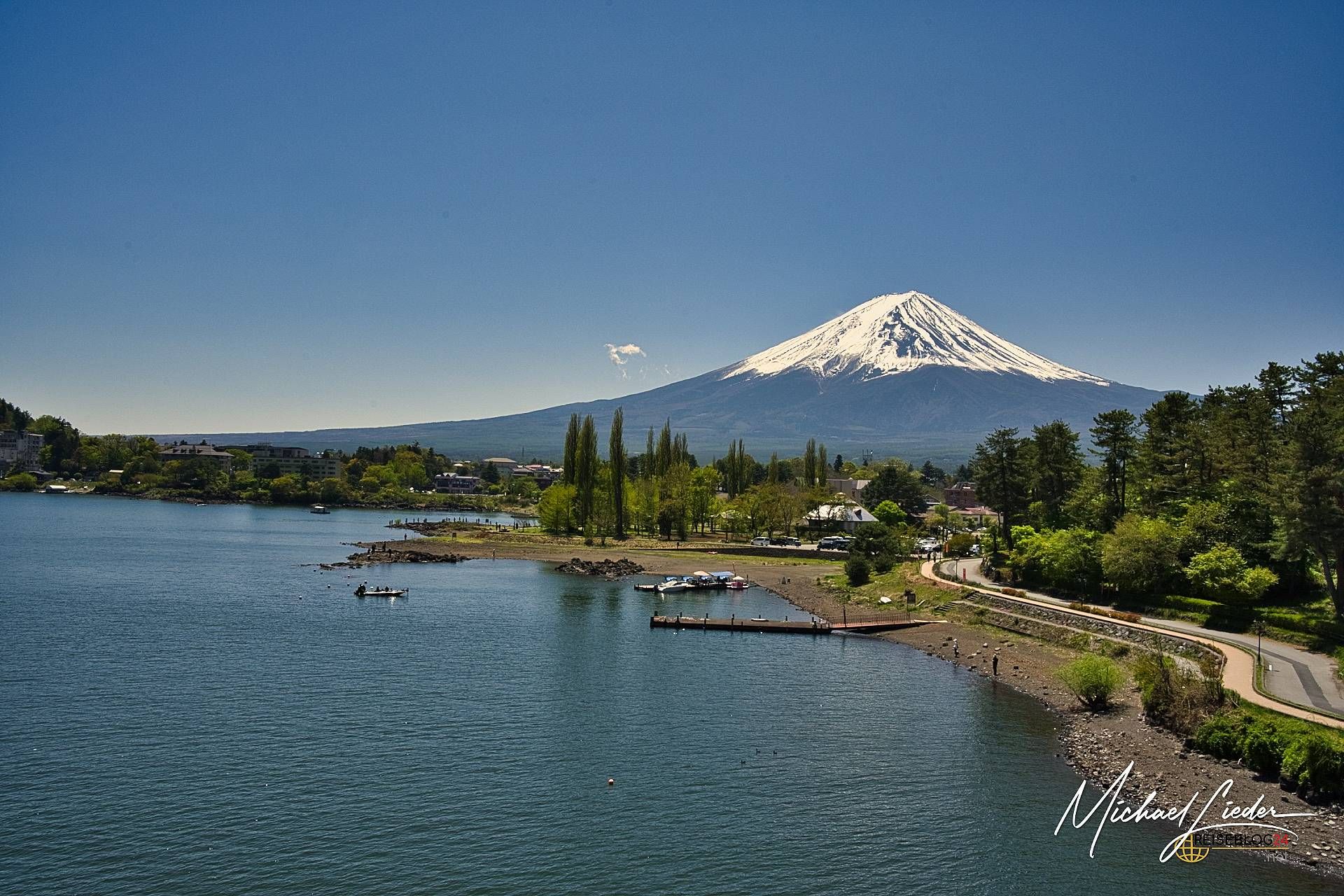 Ich erinnere mich noch genau: Es war einer dieser seltenen Momente, in denen alles passte – der Schrein am Seeufer spiegelte sich im stillen Wasser, der Nebel stieg langsam über die Hügel, und der Fuji-san stand da wie immer: geduldig, majestätisch, schweigend. Ein Anblick, der das Herz berührt. Und nein, wir waren natürlich nicht allein. Aber wir hatten den Wecker bezwungen und standen bereits beim ersten Licht des Tages an unserem Spot – zusammen mit einer Handvoll anderen Wahnsinnigen, die dasselbe vorhatten.