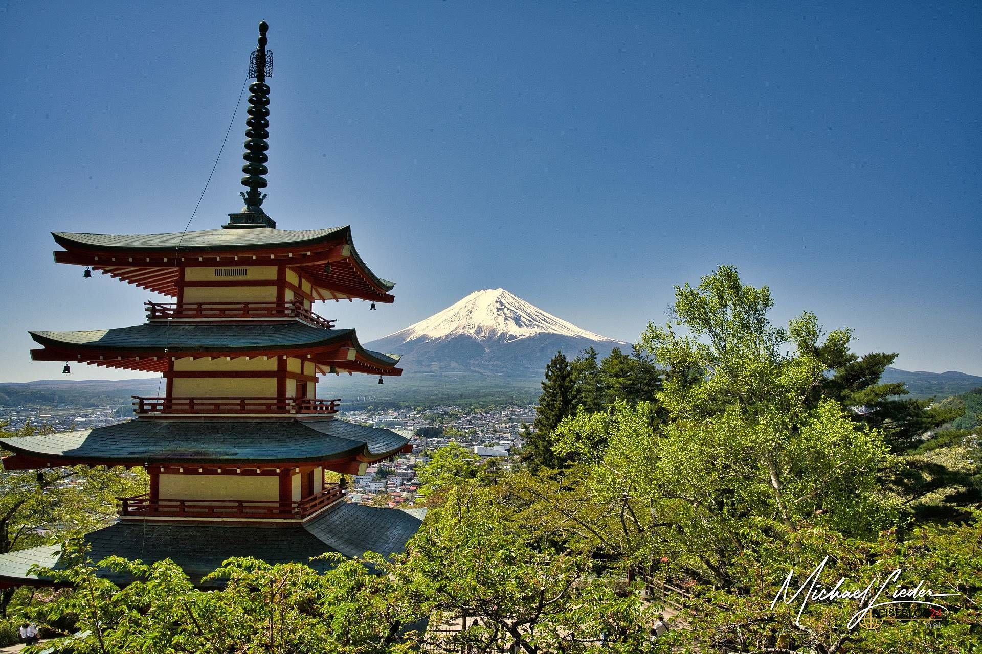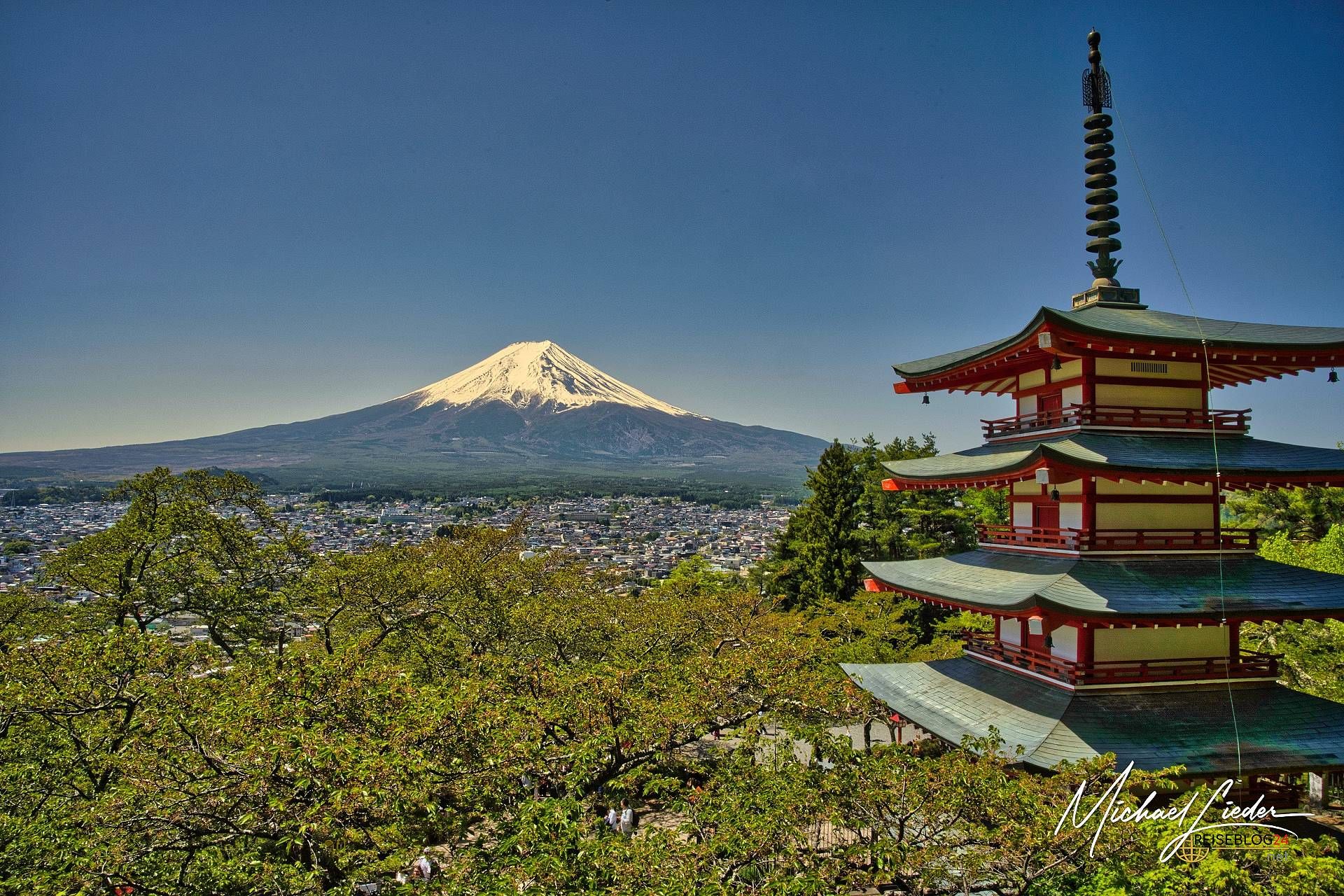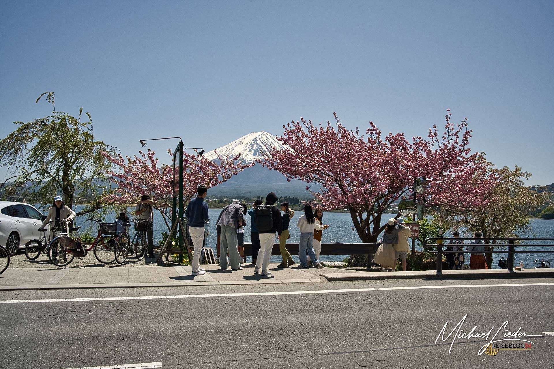 Die Klassiker: Kawaguchi-See mit Pagode, Chureito-Pagode mit Kirschblüten, Motohakone mit rotem Torii im See. Allesamt Fuji mit Sahnehäubchen – wenn das Wetter mitspielt.