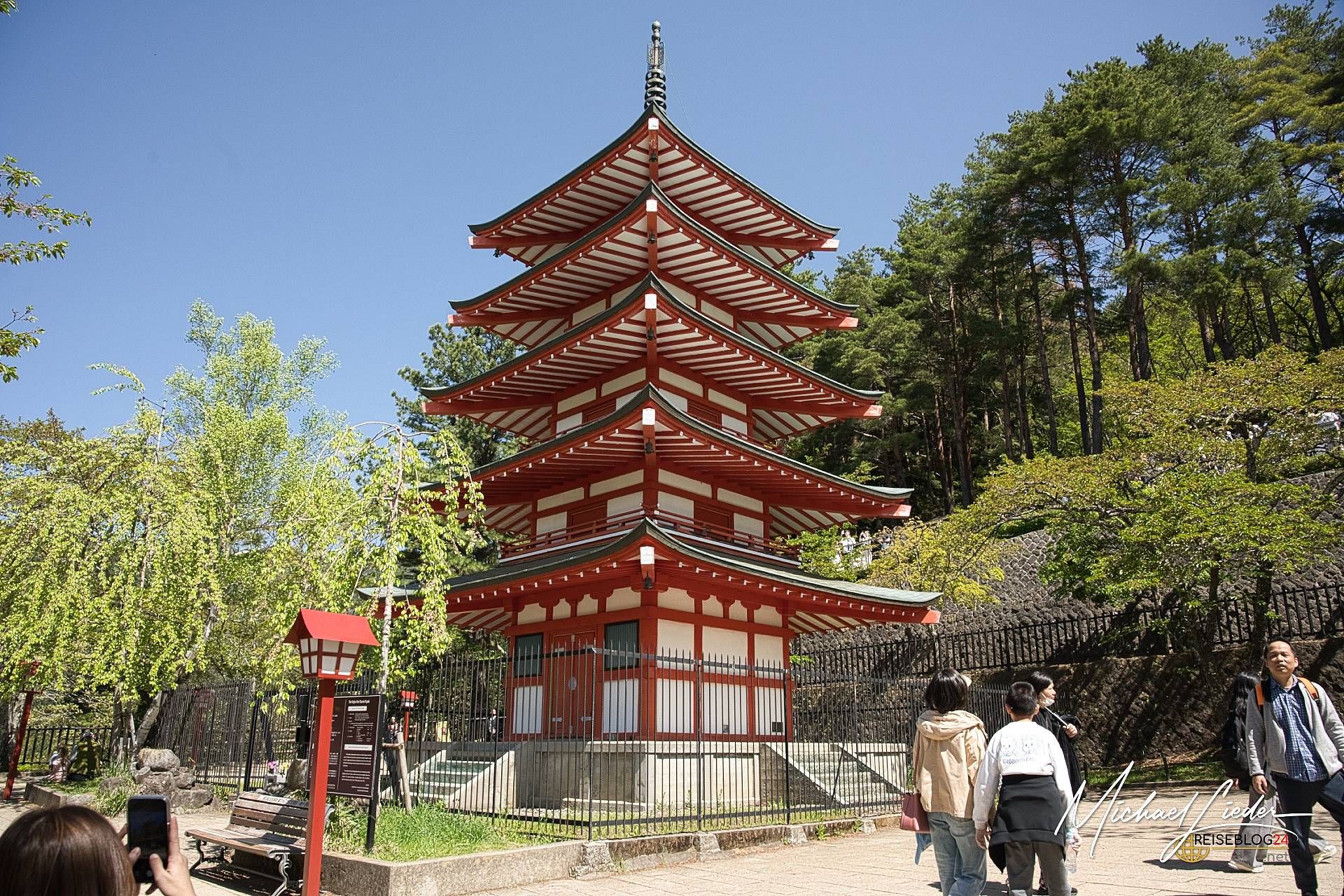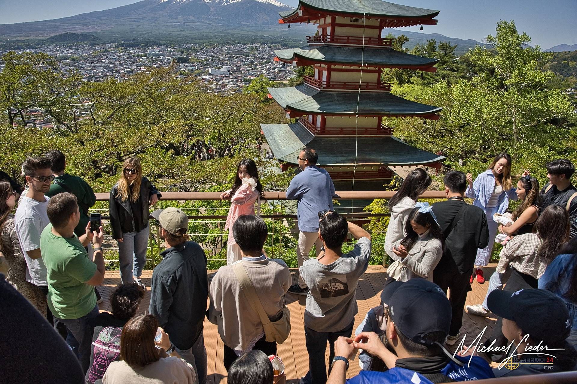 Und dann wäre da noch die Chureito-Pagode. Der Klassiker unter den Fuji-Motiven – rote Pagode, Kirschblütenmeer, Fuji im Hintergrund. Romantik pur, oder? Ja. Wenn man sich nicht gerade mit 200 anderen Besuchern über die Terrassen schiebt, auf der verzweifelten Suche nach einem Spot, an dem weder Ellenbogen noch Handybildschirme ins Bild ragen.