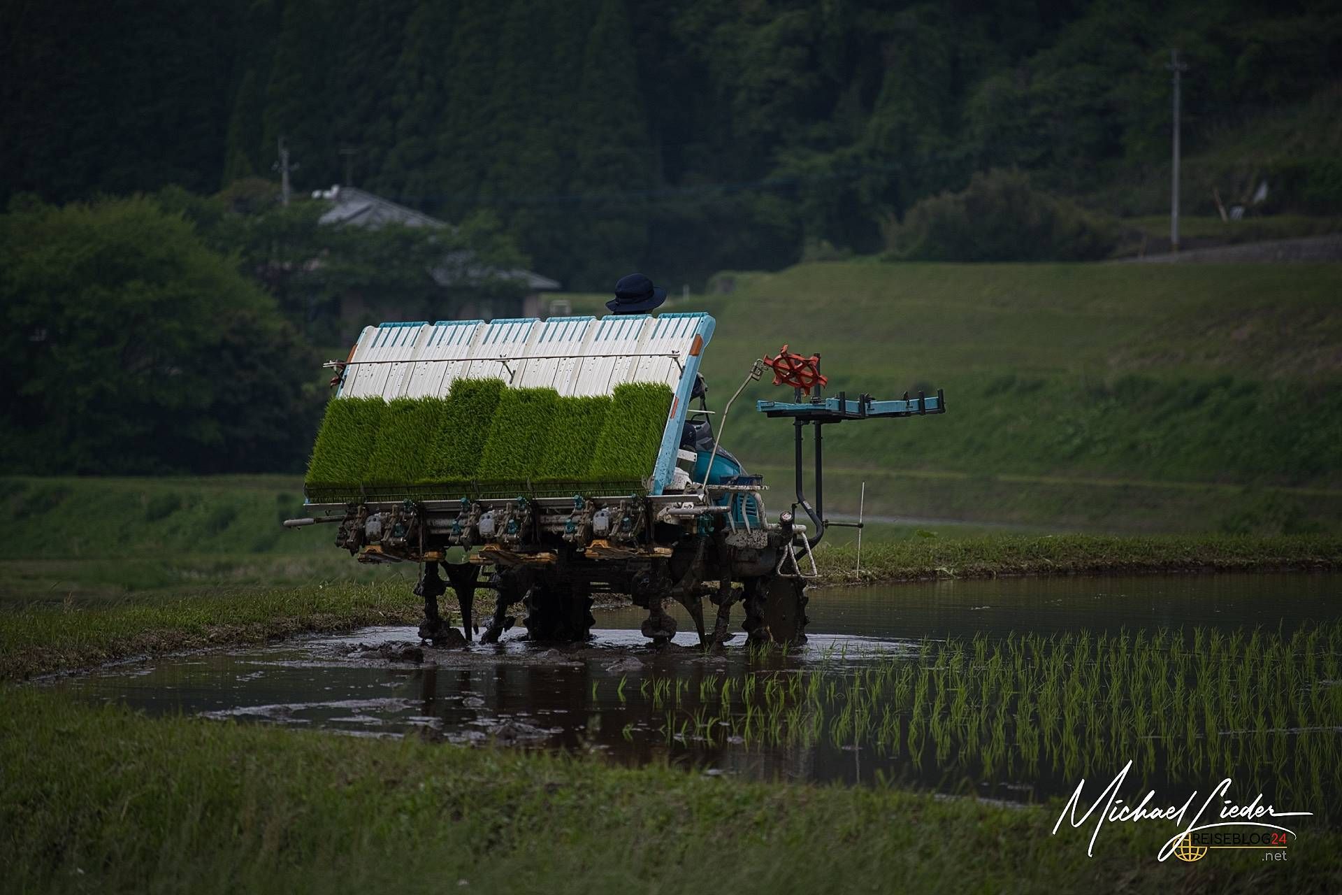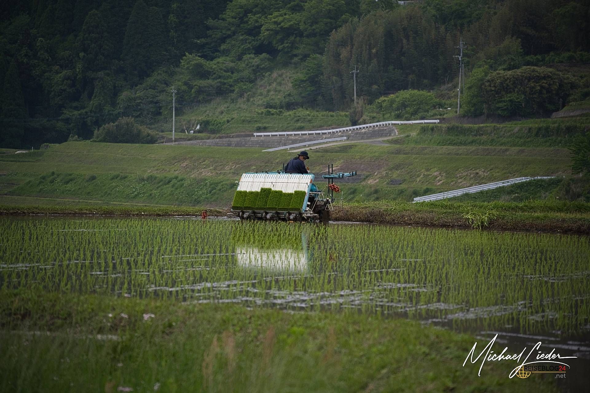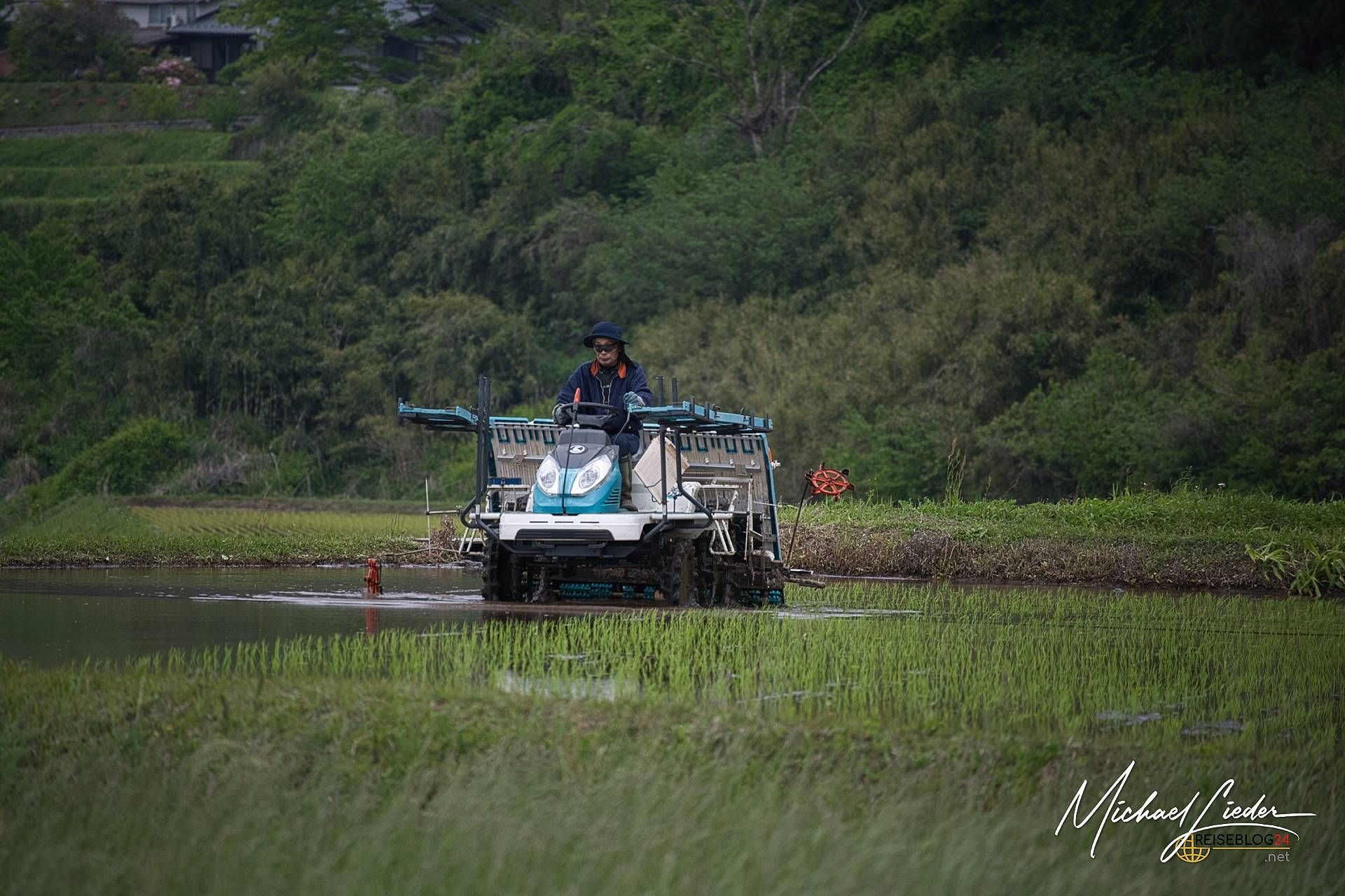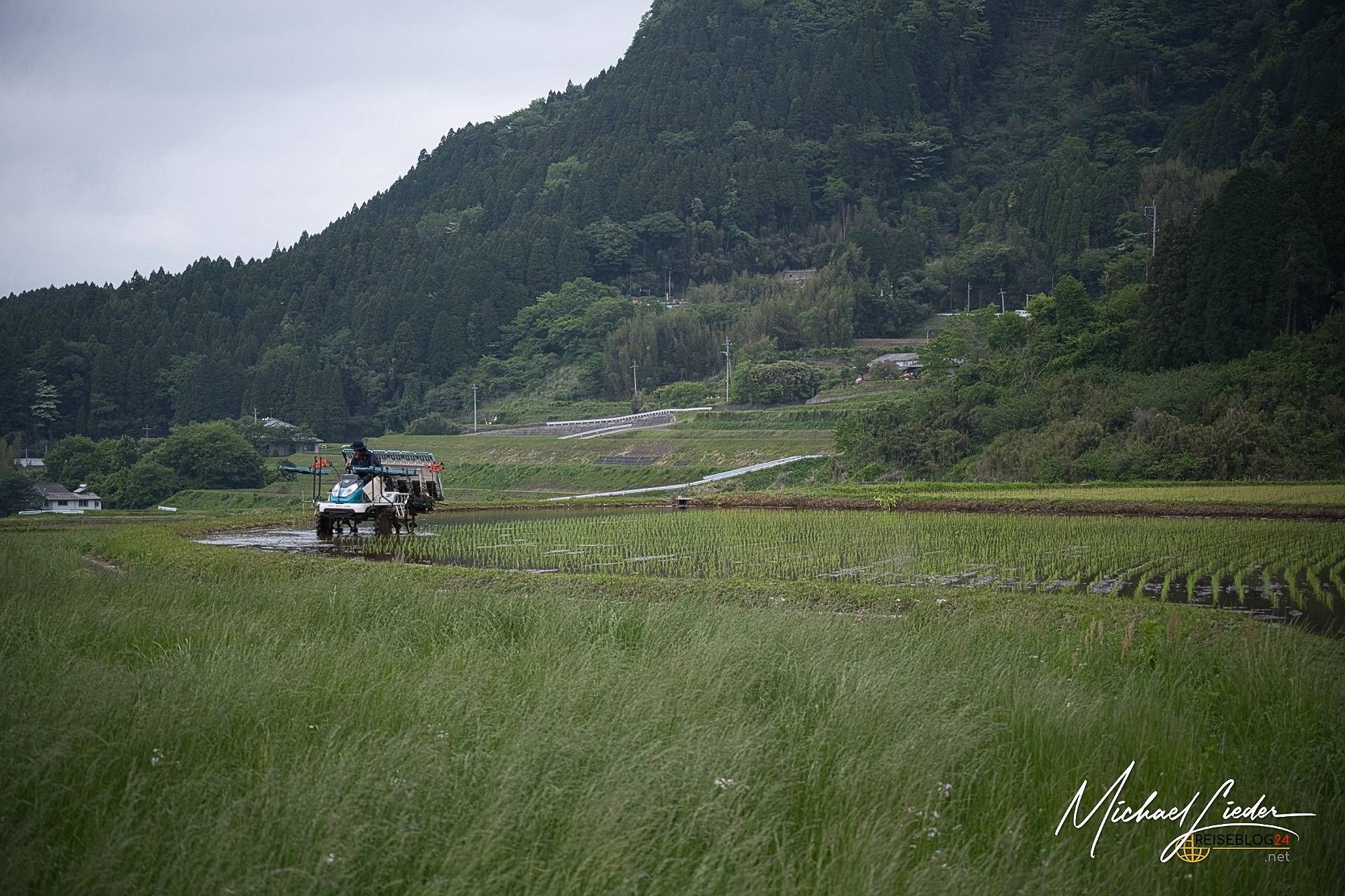 Der Aso-Kuju-Nationalpark auf Kyūshū ist kein Ort für halbe Sachen – hier zeigt sich die Natur von ihrer kraftvollen, ungezähmten Seite. Im Herzen des Parks thront der aktive Vulkan Aso, einer der größten Vulkankrater der Welt. Doch wer jetzt nur an Lava und Rauch denkt, unterschätzt die Vielseitigkeit dieser Region: saftig grüne Hochebenen, dampfende Kraterseen, endlose Weiten und dichte Nebelschwaden, die manchmal ganze Landschaften verschlucken. Wenn die Reisfelder nicht wären, könnte, man auch die Landschaftsszenerie in den Schottischen Highlands verorten. Was ich noch nie zuvor gesehen habe, ist auf einem dieser Reisfelder unterwegs, eine Maschine, die die Setzlinge im wasserangereicherten Boden pflanzt – und schon ist eine Gedankenblase geplatzt, dass in Japan Bauern jeden Reissetzling von Hand in den Boden bringen.