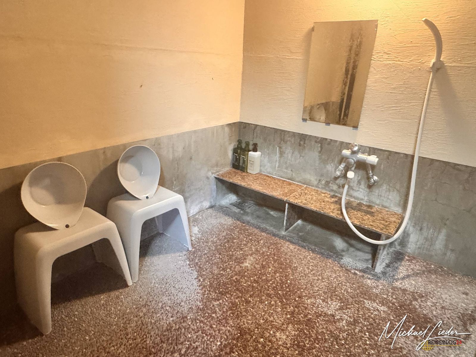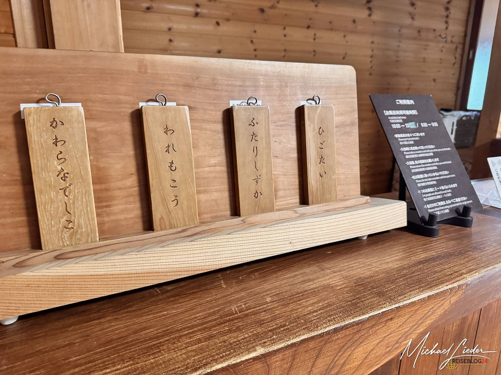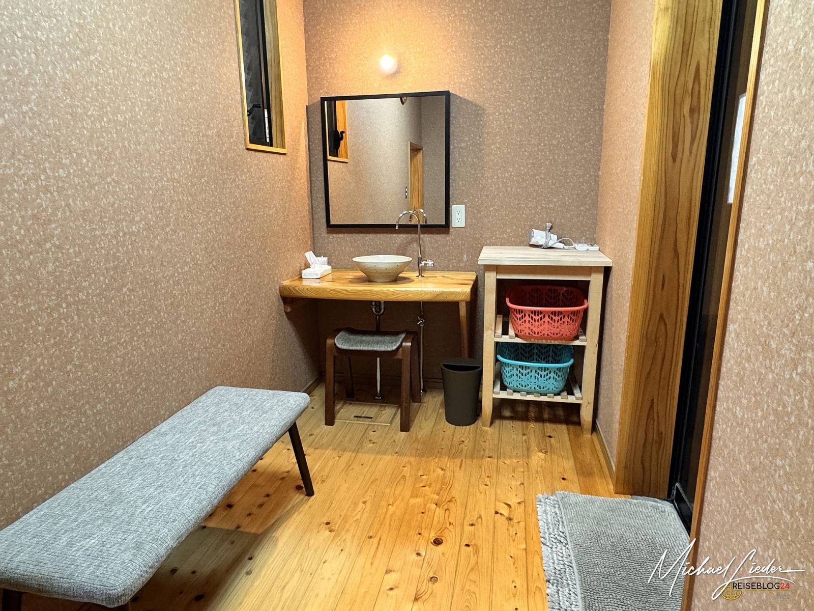Unsere Unterkunft in Aso war das Minshuku Asogen Ryokan, ein charmantes Holzhaus ganz ohne Betonmoderne. Die Architektur hat mir besonders gut gefallen: traditionell, klar, ruhig. Die Zimmer waren erstaunlich großzügig und wie alles in Japan: sehr gepflegt und sauber. Der einzige kleine Wermutstropfen – wie fast überall auf dieser Reise – war der dünne Futon. Du glaubst gar nicht wie sehr ich mich auf mein Bett zu Hause freue, ein Futton ist definitiv nichts auf dem ich mich auf Dauer wohlfühlen könnte. Aber: Es gibt vier private Onsen, die man als Gast exklusiv nutzen kann. Perfekt zum Durchwärmen nach einem kalten Vulkantag und für den Futton geschundenen Rücken. Auch diese waren blitzsauber und herrlich entspannend. Unbedingt empfehlenswert ist die Buchung mit Halbpension. Das Essen ist hervorragend, liebevoll zubereitet und den Aufpreis definitiv wert.