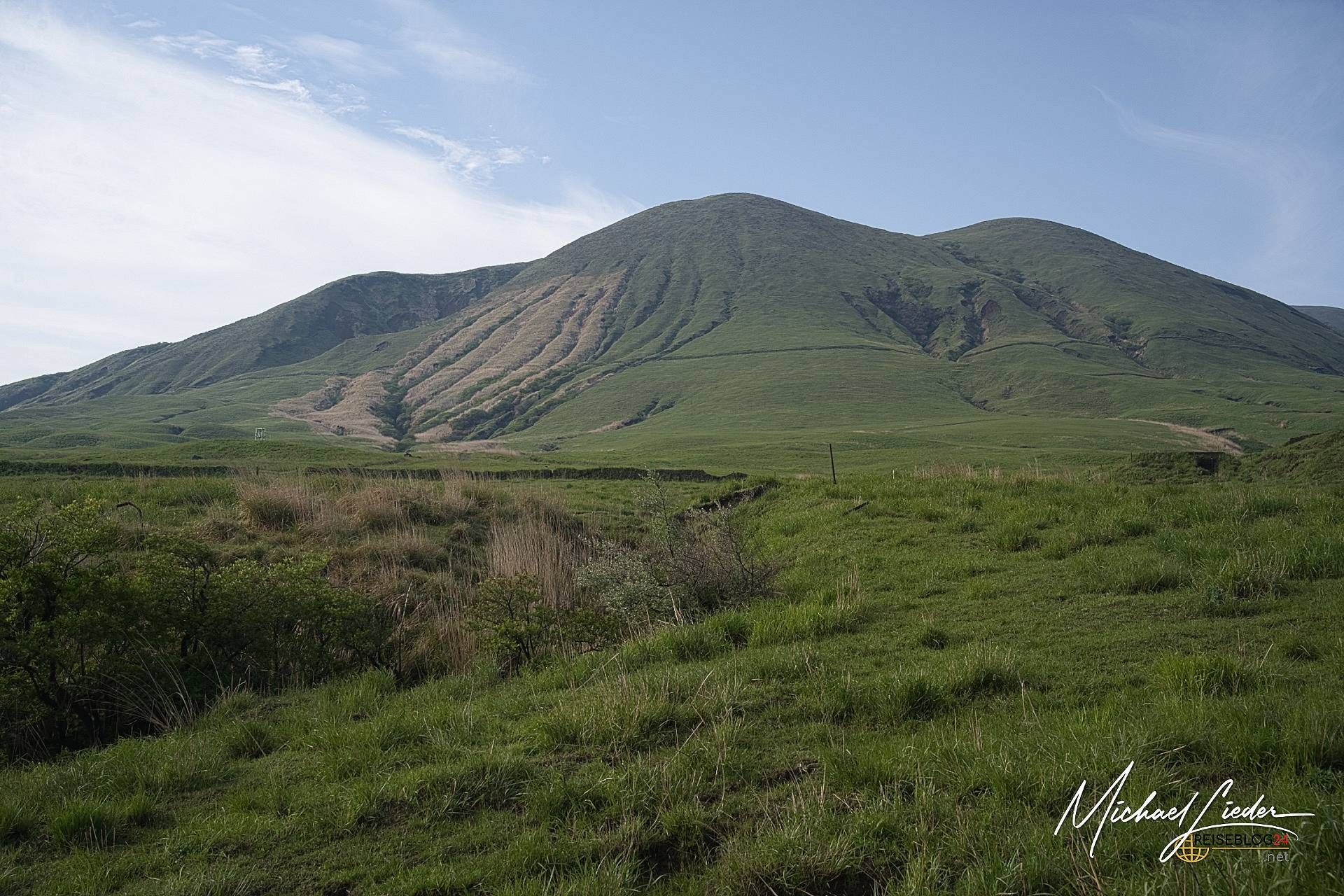 Inmitten von Japans größter Caldera erhebt sich der Nakadake, ein aktiver Vulkankegel im Aso-Kuju-Nationalpark – wild, rau und faszinierend schön. Schon die Anfahrt durch das weite Grasland von Kusasenri ist beeindruckend. Saftig grüne Hänge, weidende Pferde und ein Gefühl von Weite, das in Japan selten ist.