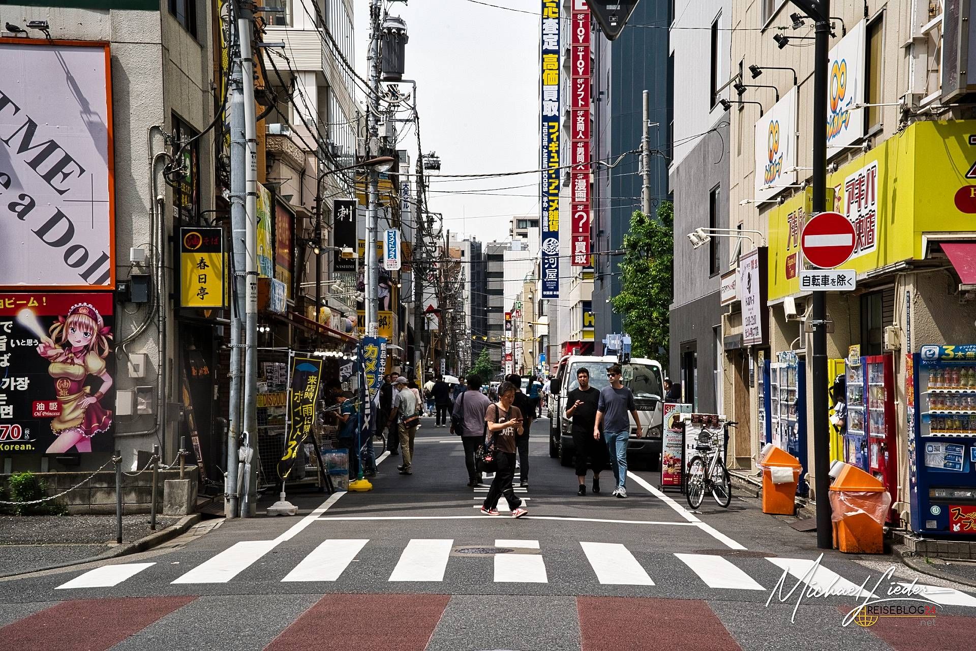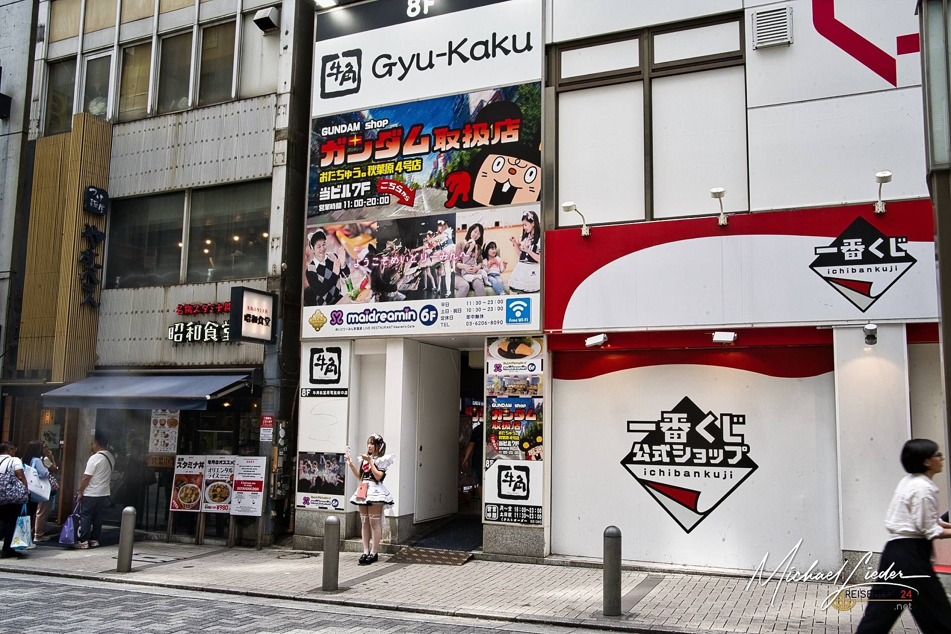 Ein kleines bisschen hatte ich auf mehr Cosplay gehofft. Früher war das hier gang und gäbe. Doch die Szene scheint erwachsen geworden zu sein – „Mou toshi dakara…“ – „Ich bin zu alt für den Scheiß“, wie mir ein Einheimischer trocken erklärte. Schade eigentlich. Zum Glück bringen ein paar hartnäckige Animatörinnen vor den Läden noch ein bisschen Glanz und Glitter zurück in die Realität.