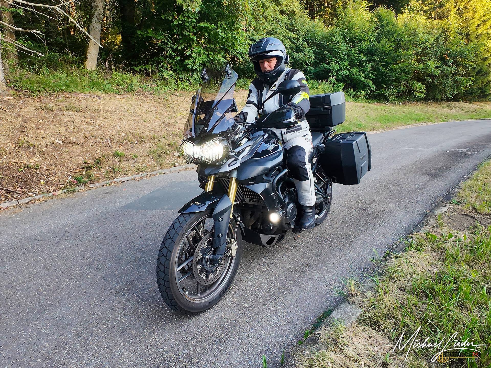 Wie sich das Leben doch wandelt: Früher paddelte ich mit den Kleinen im Kanu auf der Lauter – heute sind die Kleinen groß, und ich cruise mit ein paar PS unterm Hintern durch eben jenes Tal. Statt Paddelschlag jetzt Gashahn. Und auch wenn das ein bisschen melancholisch klingt – jede Lebensphase hat ihren eigenen Zauber. Heute ist eben Kurvenzauber angesagt.