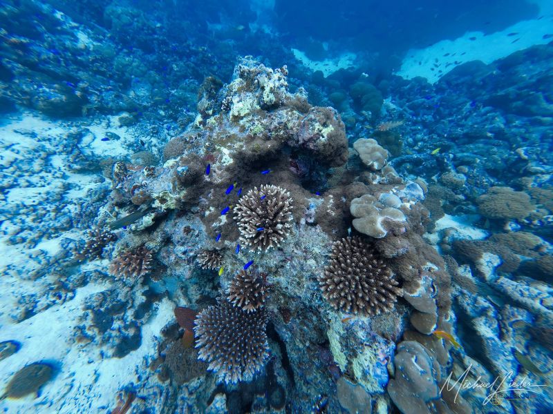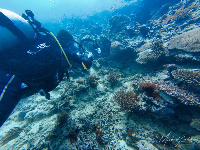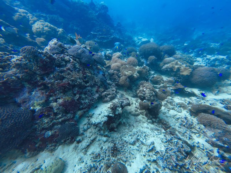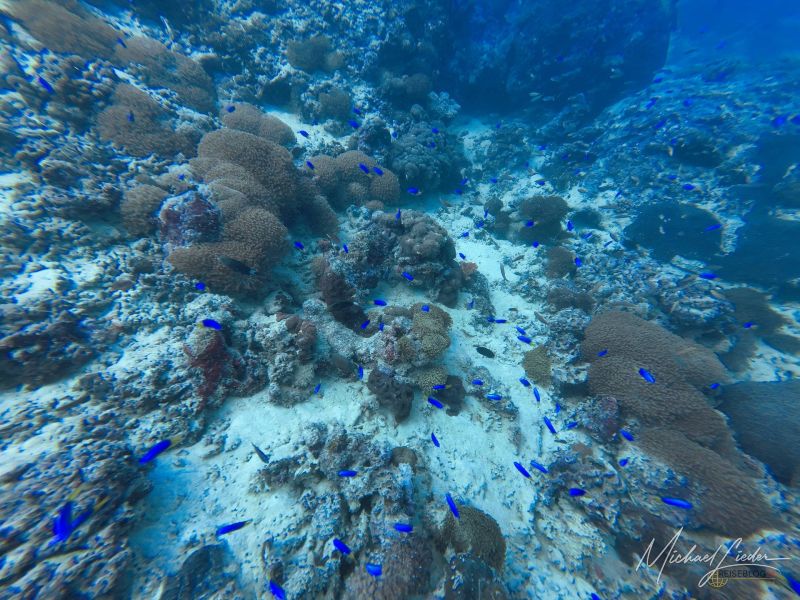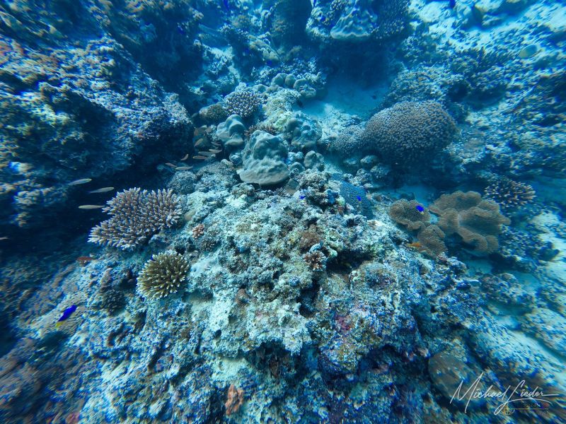 Der erste Absatz liegt auf etwa acht bis zehn Metern. Alles funktioniert reibungslos, nichts Dramatisches, keine Hollywood-Haie, kein plötzlicher Farbenrausch. Ich bin mit meiner DJI Osmo unterwegs, unserem Guide als Buddy zugeordnet, und halte mich an seine ruhigen Flossenschläge. Die Umgebung? Noch recht bescheiden – ein paar kleinere Fische, ein Riff, das eher wirkt wie die Vorband vor dem großen Konzert.