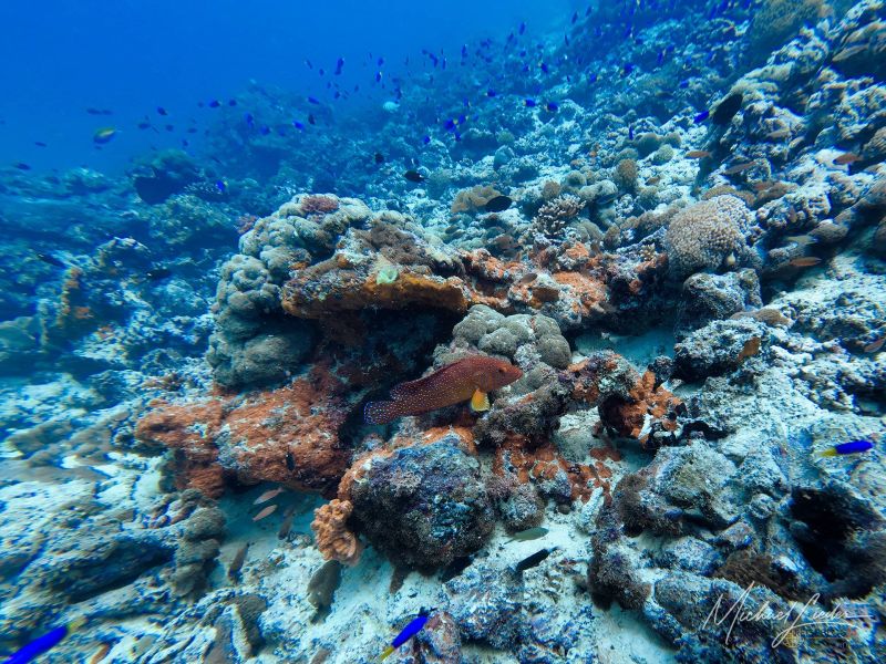 Amoujie Maman: anspruchsvollere Site mit Strömung, Felsstrukturen und tieferen Passagen – nicht unbedingt für Anfänger.