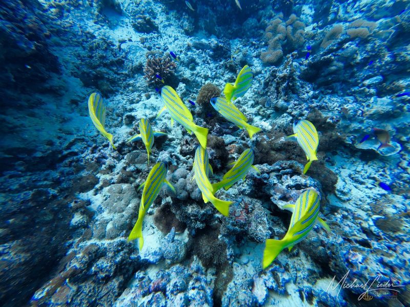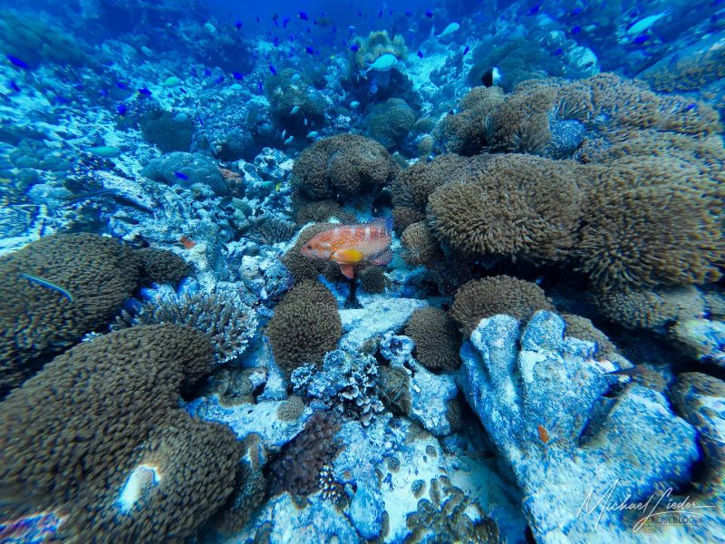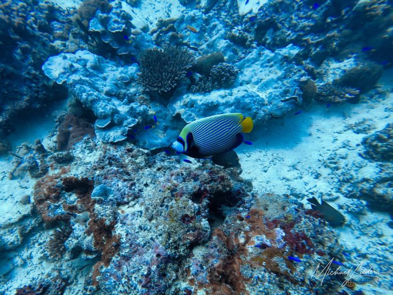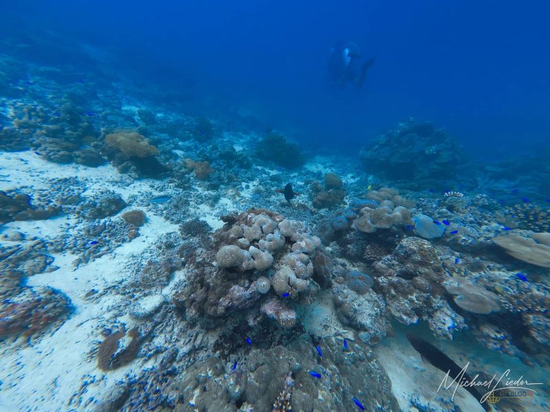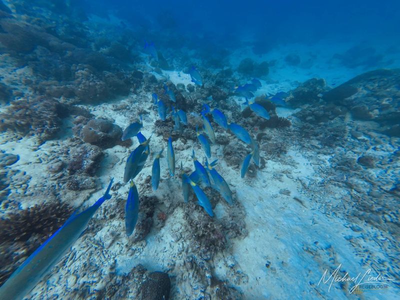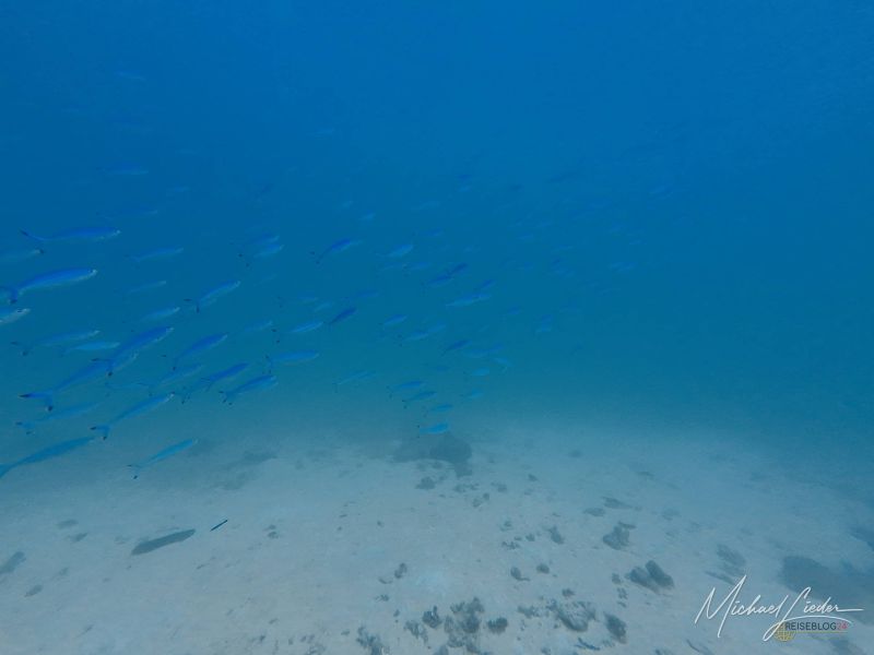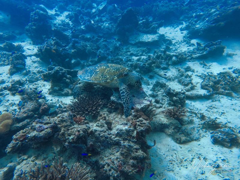 Schon beim ersten Abtauchen umfängt mich diese geliebte, fast meditative Ruhe unter Wasser. Nur mein Atem – gleichmäßig, beruhigend, fast hypnotisch. Fische ziehen vorbei, Korallen in Pastelltönen, als hätten sie sich für Reiseblog24 extra in Schale geworfen. Und für einen Moment denke ich: Ja, vielleicht ist es das tatsächlich – das Paradies, von dem alle reden.