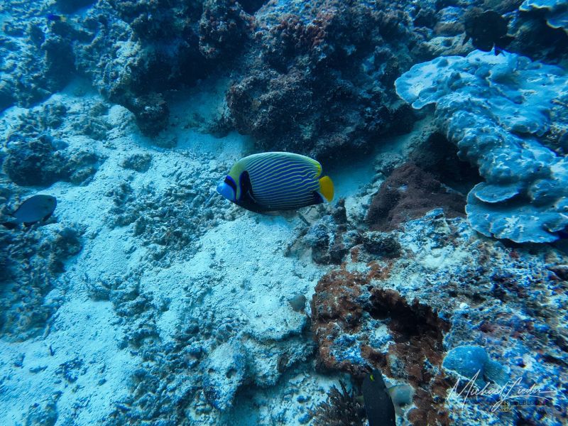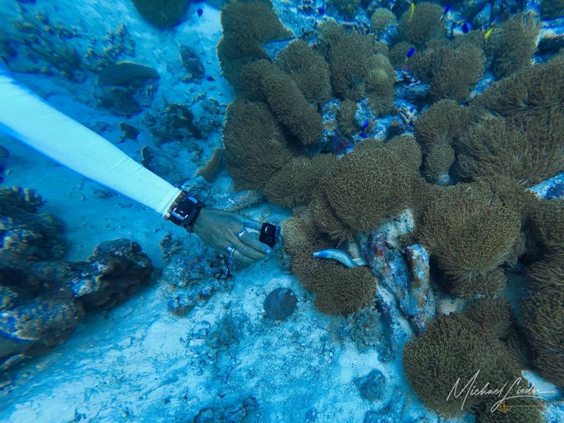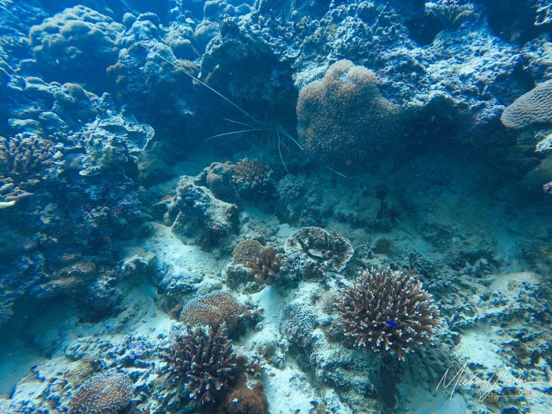 Anmerkung: Wir befinden uns im Baie Ternay Marine National Park, einem offiziell geschützten Gebiet. Hier soll die Natur Vorrang haben – und genau das gefällt mir. Umso mehr irritiert es mich, dass das Tauchboot ganz selbstverständlich den Anker wirft. In einem Marinepark? Das fühlt sich irgendwie falsch an. In anderen Ländern – etwa in Thailand oder auf den Malediven – gibt es feste Bojenplätze für Boote, damit die empfindlichen Korallen nicht beschädigt werden. Hier dagegen scheint man das entspannter zu sehen.