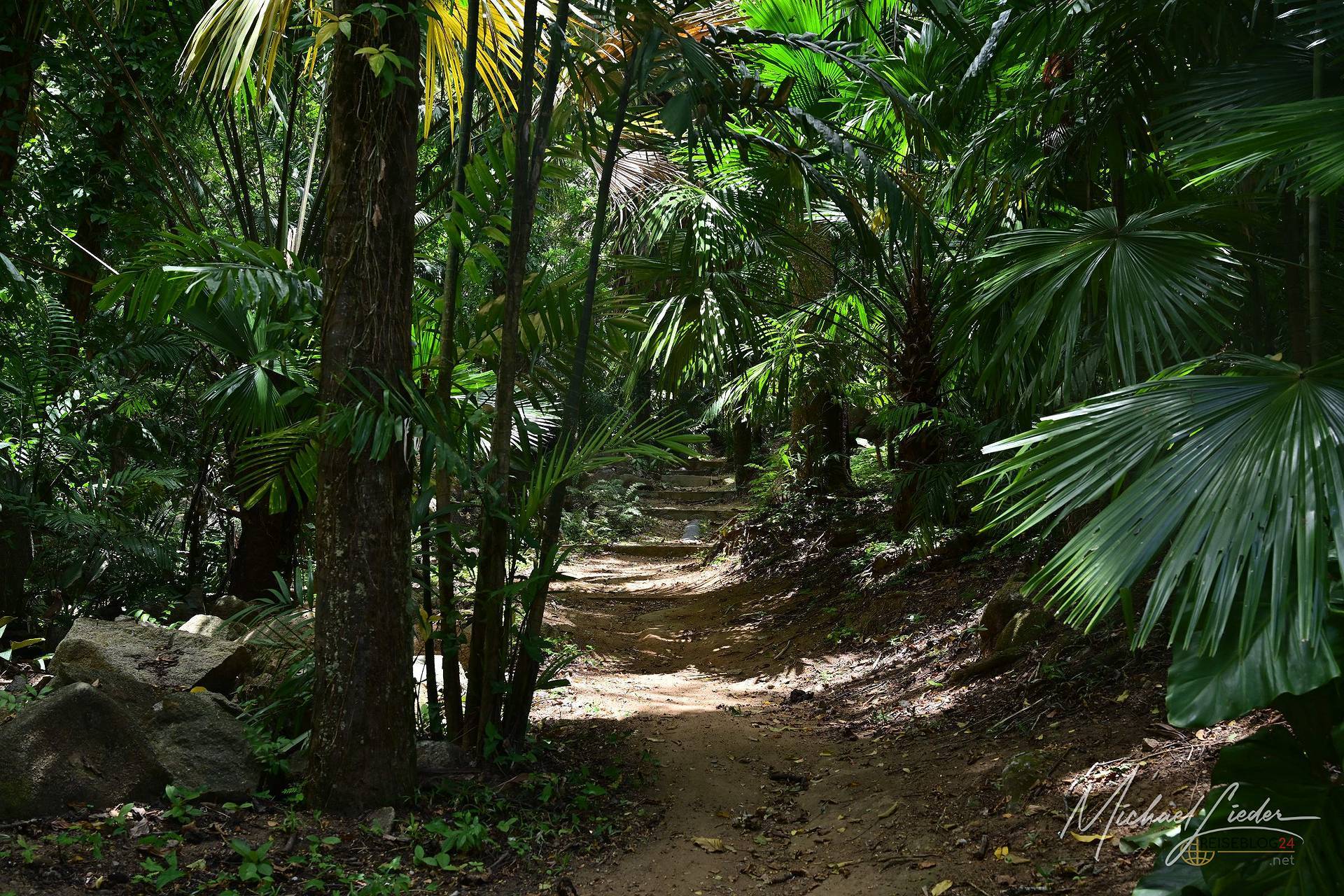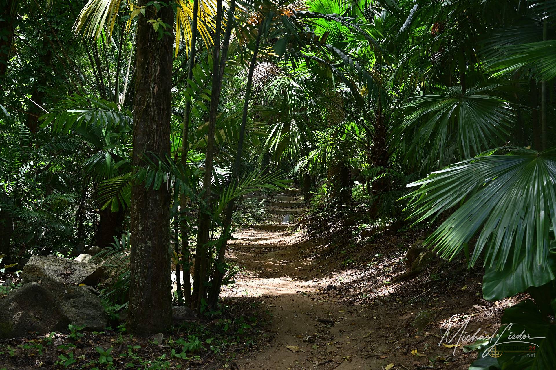 Ein paar Autominuten vom Bel Air Friedhof entfernt liegt ein Ort, an dem selbst das Navi kurz innehält und sich fragt, ob es nicht lieber bleiben möchte: der Botanische Garten von Victoria. Gegründet wurde er bereits 1901, als die Seychellen noch britische Kronkolonie waren. Damals diente er nicht dem Tourismus, sondern der Wissenschaft – man wollte tropische Nutzpflanzen erforschen, importieren, anpassen. Kurz gesagt: ein koloniales Versuchslabor in Sachen Grünzeug.