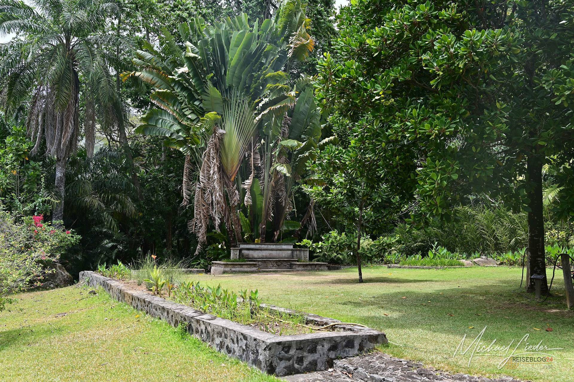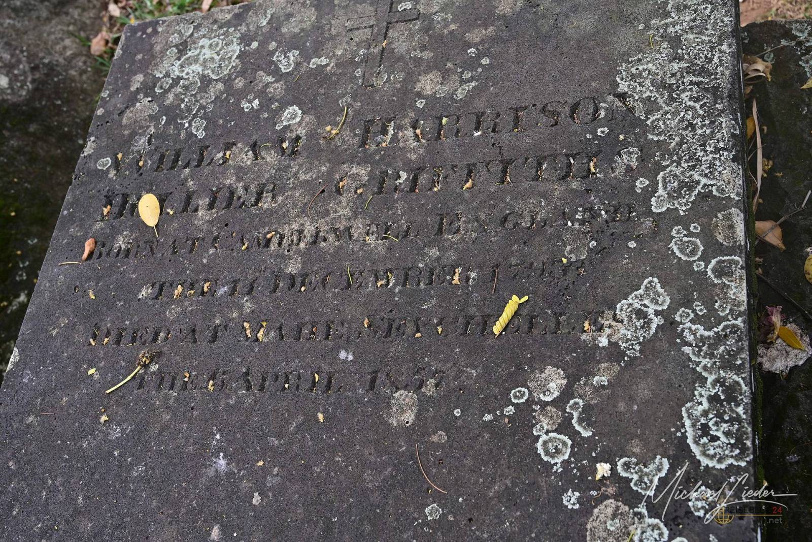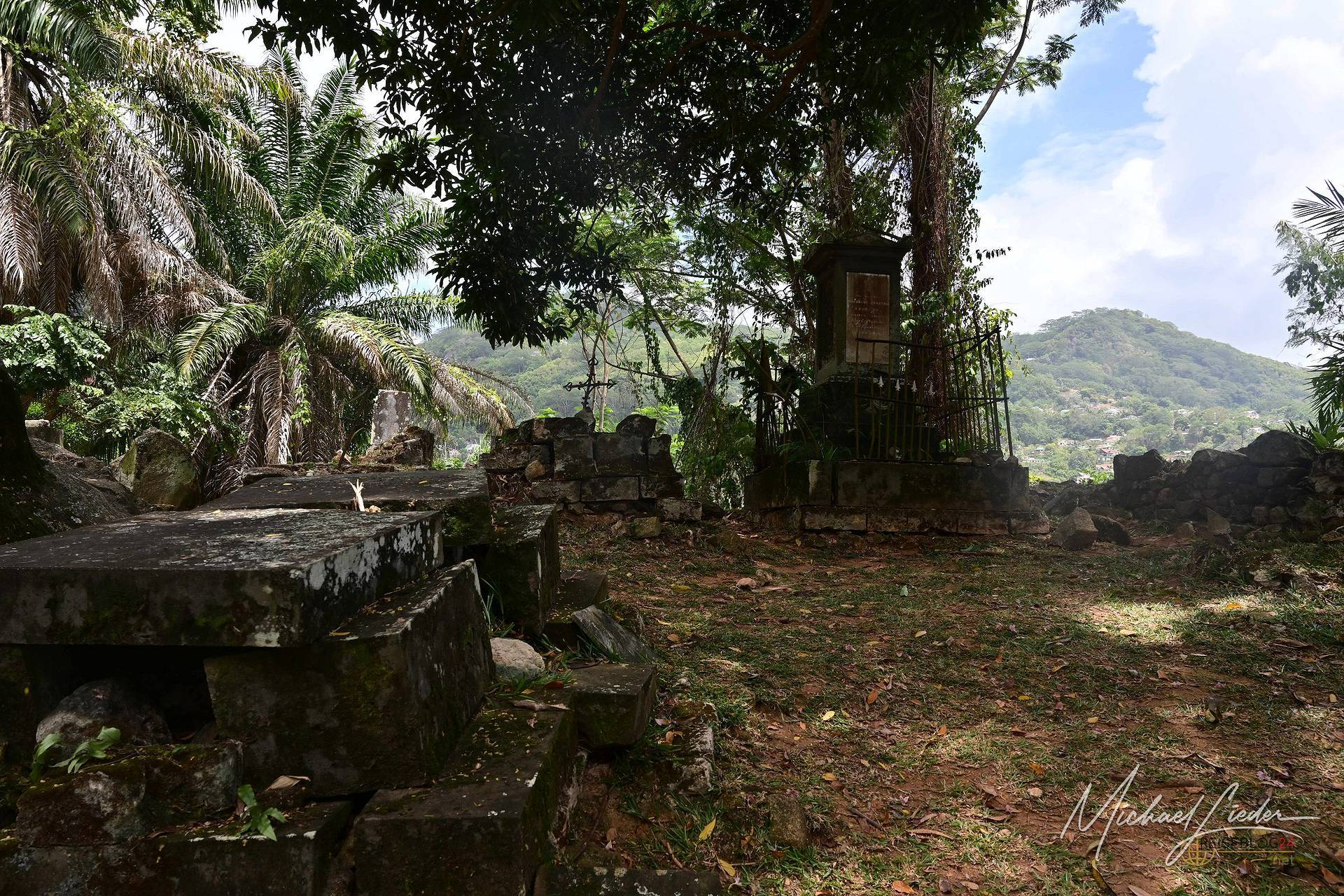 Zwischen den verwitterten Steinen entdeckte ich schließlich einen Grabstein, auf dem man mit Mühe noch lesen konnte: „William Harrison, native of Shrewsbury, England – died at Mahé, April 18…“ Der Rest verschwindet in Moos, Flechten und Vergessen. Solche Inschriften erinnern daran, wie weit die Menschen schon damals gereist waren – nicht auf der Suche nach Sonne und Selfies, sondern nach Arbeit, Abenteuer oder schlicht einem neuen Leben. Viele fanden hier, am Ende der Welt, ihre letzte Ruhe. Und irgendwie spürt man beim Lesen, dass jede dieser vergessenen Geschichten ein kleines Stück Weltgeschichte in sich trägt.