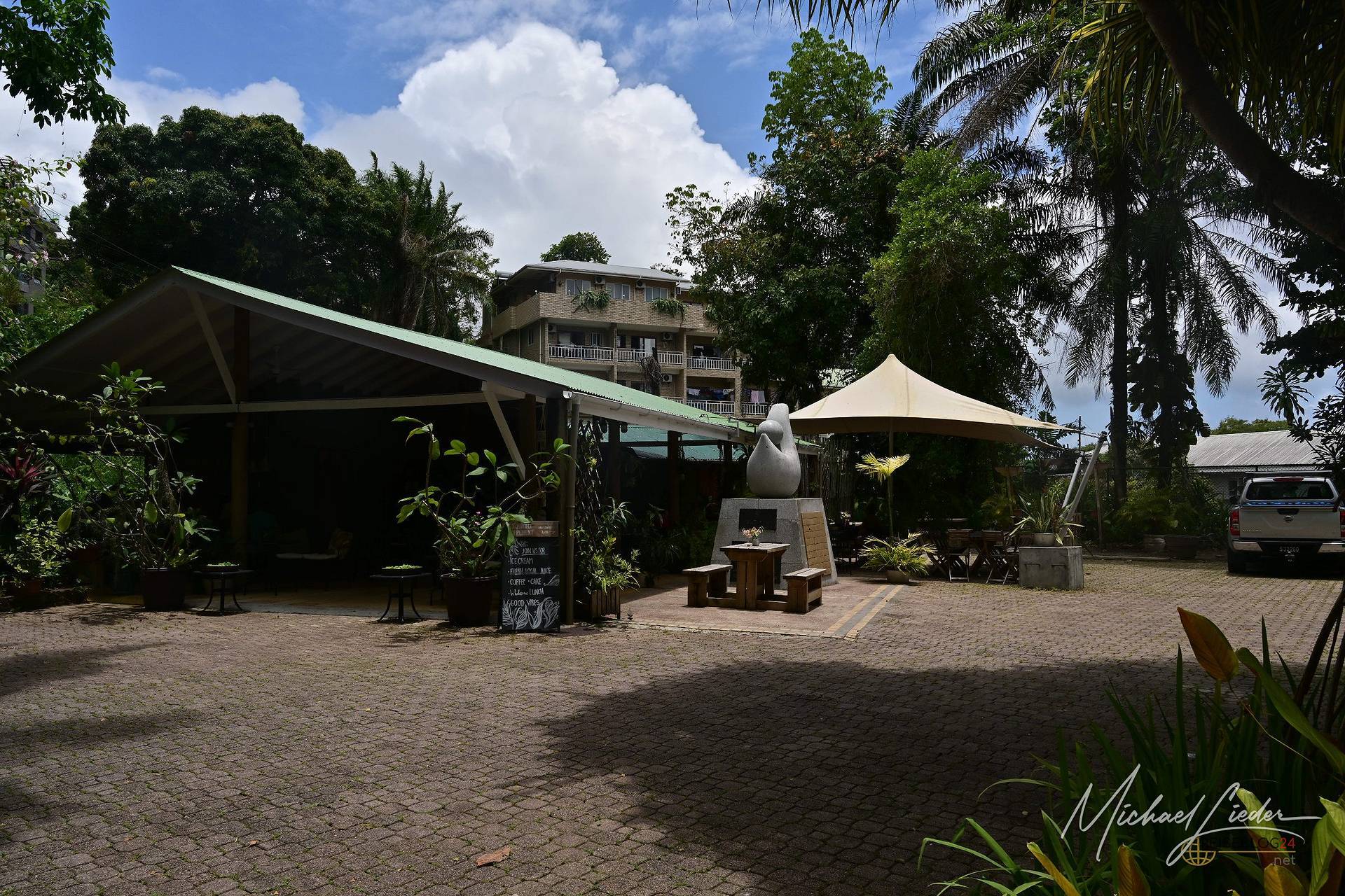 Nach dem Rundweg wartet ein kleines Café, das man nicht übersehen sollte. Hier sitzt man im Schatten, mit Blick auf tropische Pflanzen und hört nur das Summen, Rascheln und das leise Knacken einer Schildkröte, die irgendwo ihr zweites Frühstück genießt. Ein Moment, in dem man unweigerlich denkt: Vielleicht ist das hier gar kein botanischer Garten, sondern einfach ein Lehrstück in Entschleunigung.