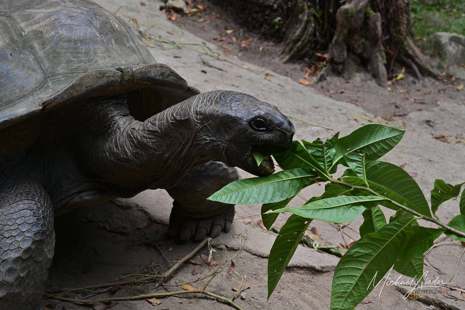 Heute ist von diesem kolonialen Ehrgeiz nichts mehr zu spüren. Stattdessen hat sich der Garten in ein kleines Paradies verwandelt – ein Ort, an dem das Wissen von damals auf die Ruhe der Tropen trifft. Seit Jahrzehnten werden hier Pflanzen und Tiere gepflegt, die auf den Seychellen heimisch sind oder irgendwann ihren Weg hierher gefunden haben. Viele von ihnen stammen aus den entlegensten Ecken des Indischen Ozeans, manche wurden von Händlern und Forschern eingeführt – und sind geblieben, so wie man bleibt, wenn man endlich angekommen ist.
