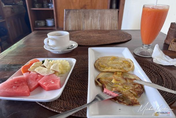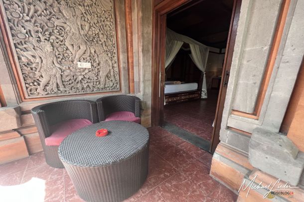Die Zimmer sind geräumig, geschmackvoll eingerichtet und bieten neben einem schönen Ambiente auch eine gehörige Portion balinesischen Lebensstil mit einigem an Luxus. Der Balkon war mein persönlicher Lieblingsort, um den Sonnenaufgang und -untergang zu genießen.  Die Betten waren äußerst komfortabel und sorgten für erholsamen Schlaf nach einem erlebnisreichen Tag.