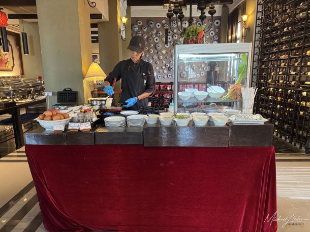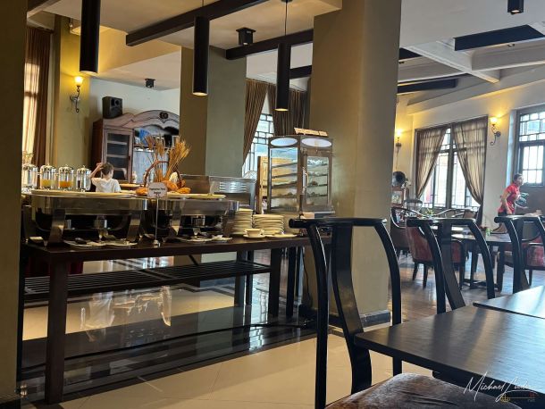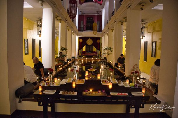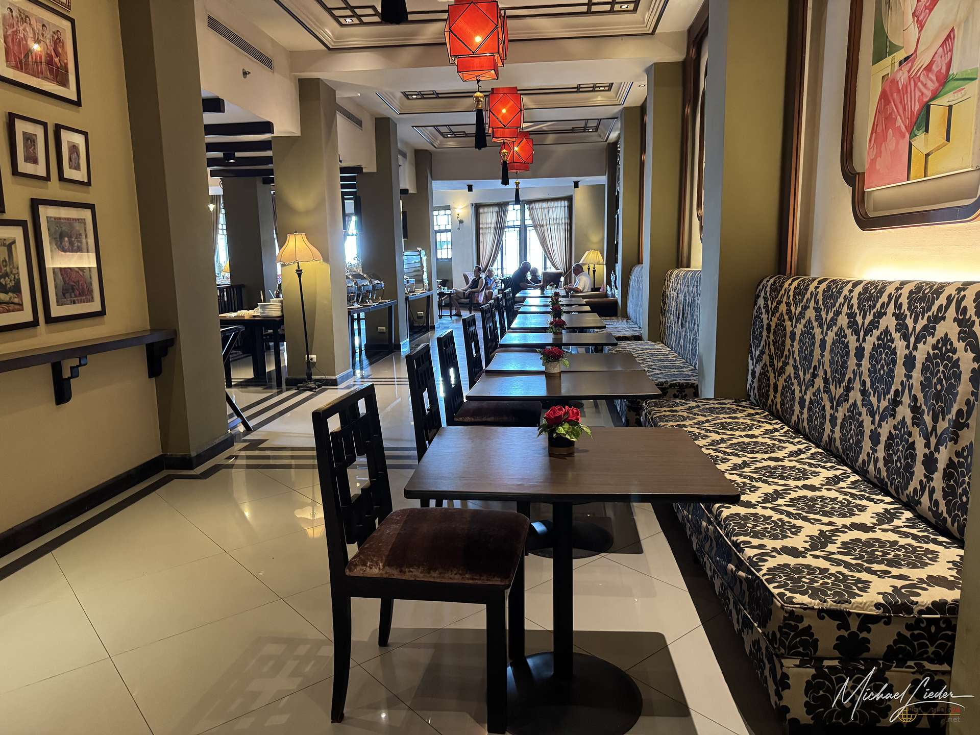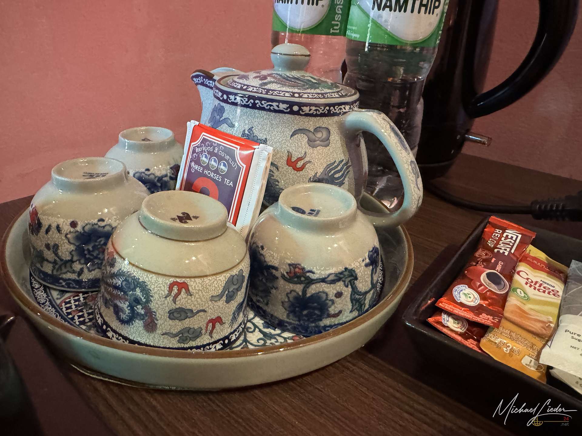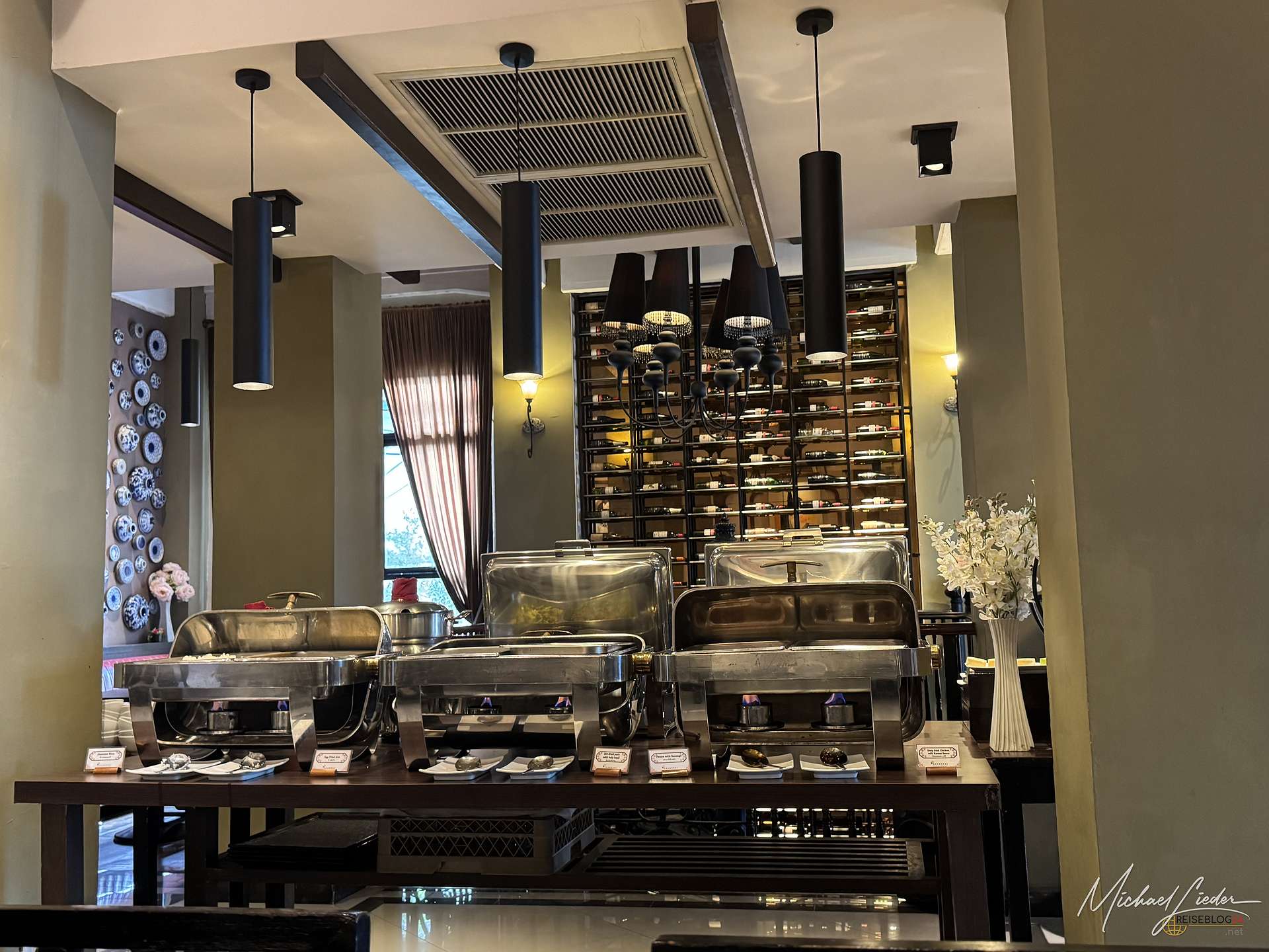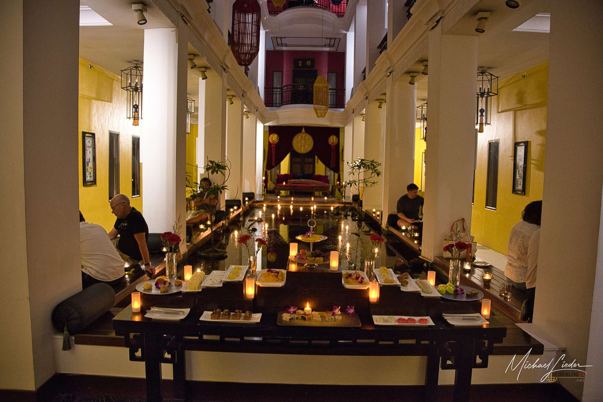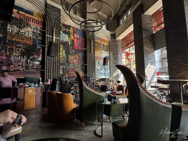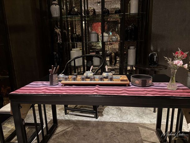 In der ersten Etage geht es fast nahtlos weiter mit Restaurant, Massagebereichen und einem offenen Bereich, in dem täglich zwischen 14 und 15 Uhr Nachmittagstee mit Livemusik serviert wird. Ein Konzept, das erfreulich wenig nach Standard-Hotelkasten und deutlich mehr nach Charakter aussieht. Das Frühstücksbuffet ist in der dritten Etage untergebracht. Insgesamt wirkt das Hotel wie eine verspielte, fast dekadente Bühne im Stil eines alten chinesischen Herrenhauses: voller Kunstobjekte, gemütlicher Sitzecken und kleiner Details, die man nicht einfach nur sieht, sondern entdeckt. Genau das macht den Reiz aus.