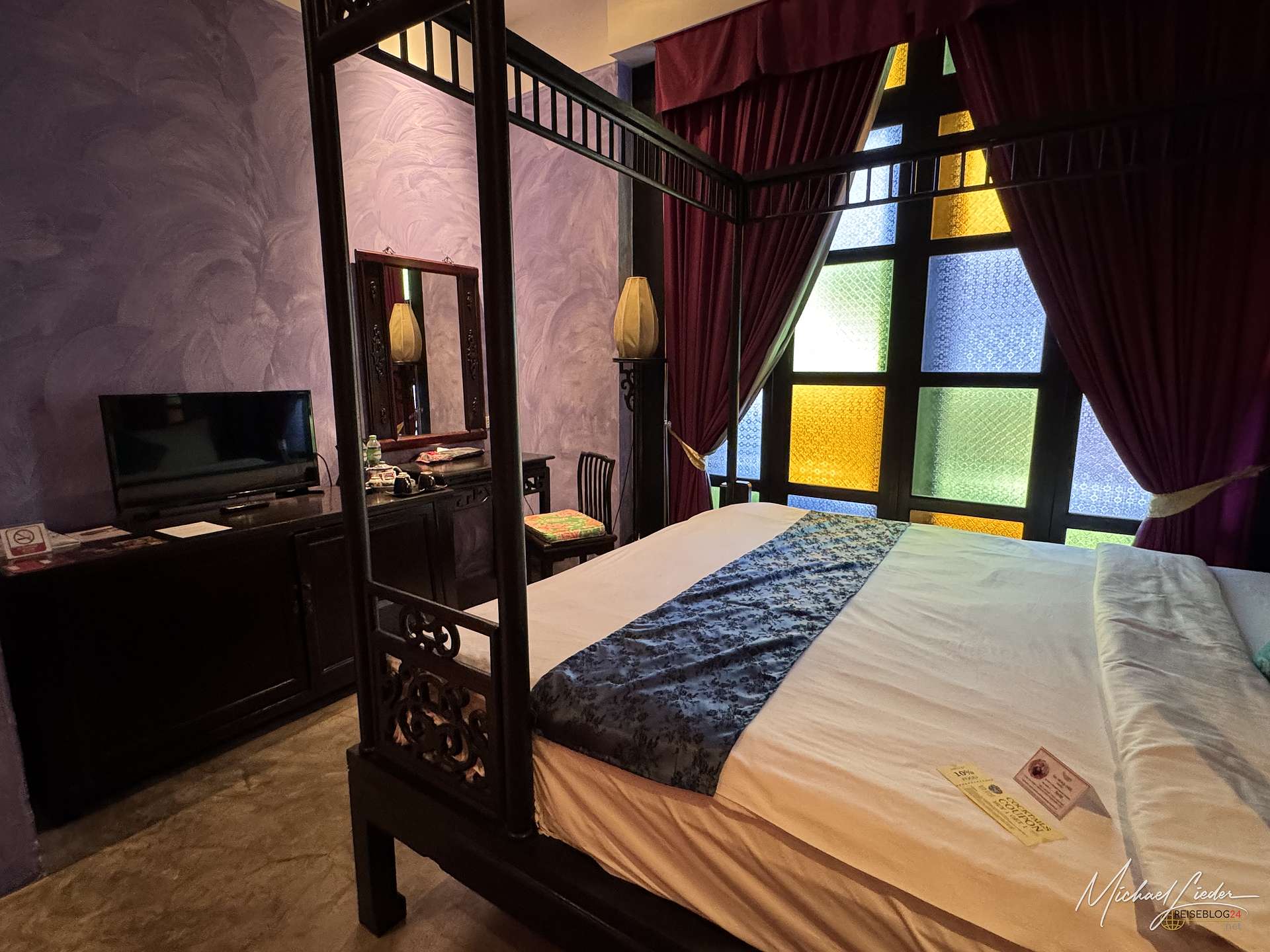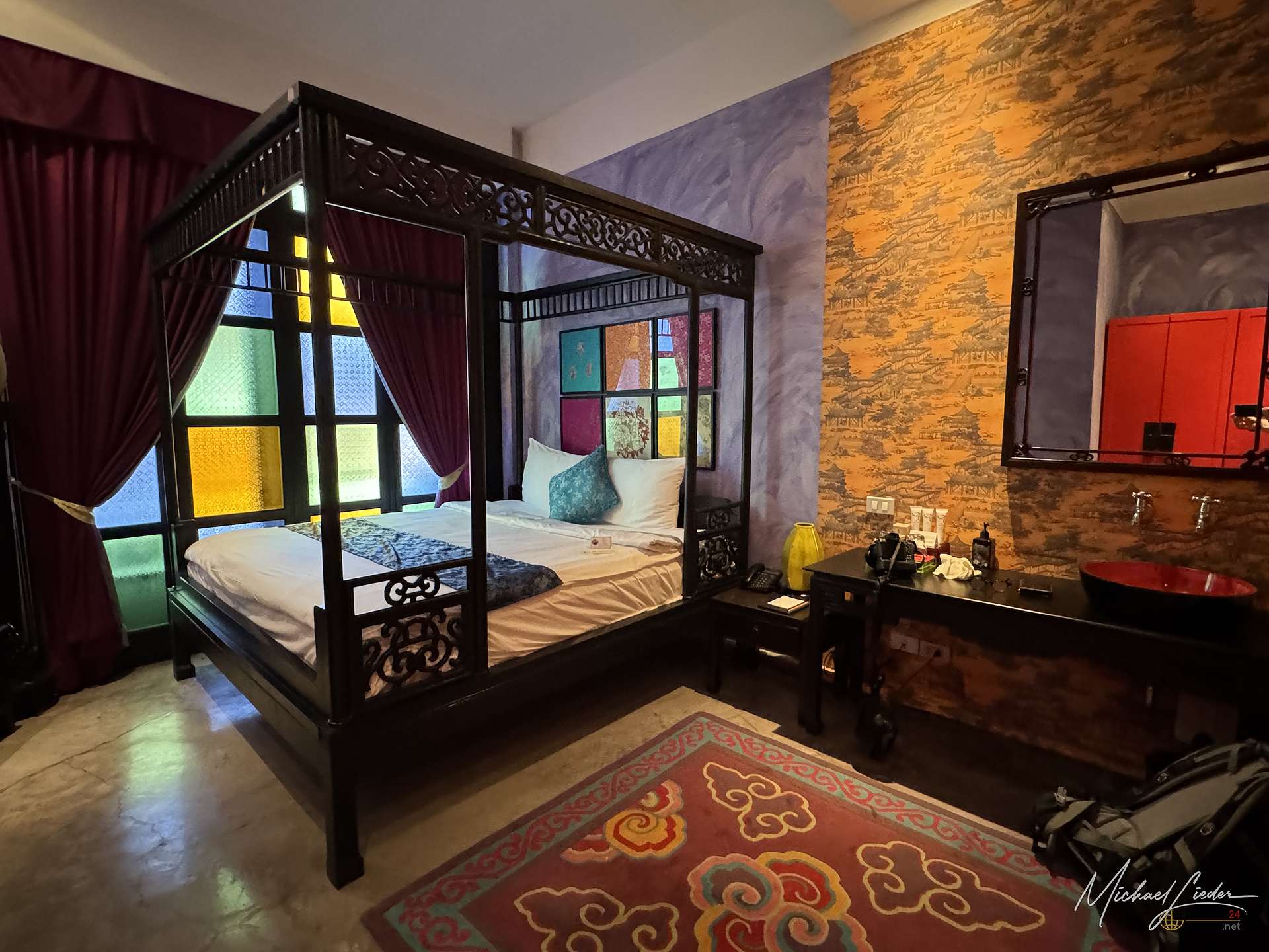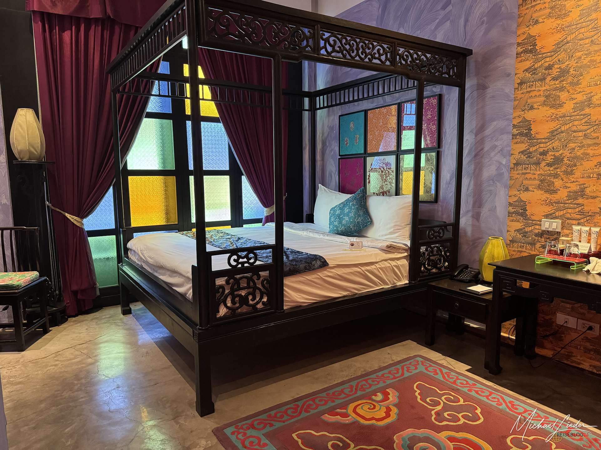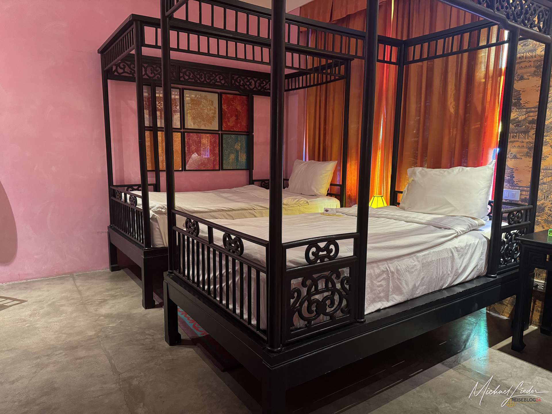 Die Zimmer im Shanghai Mansion sind wirklich eine kleine Welt für sich. Schon der erste Blick in den Raum hat mir kurz den Atem geraubt. Auf erstaunlich wenigen Quadratmetern entsteht hier eine Atmosphäre, die irgendwo zwischen altem China, einer leicht verrückten Piratenfantasie und einem stilvoll inszenierten Boutique-Hotel pendelt. Klingt übertrieben, ist es aber ausnahmsweise nicht.