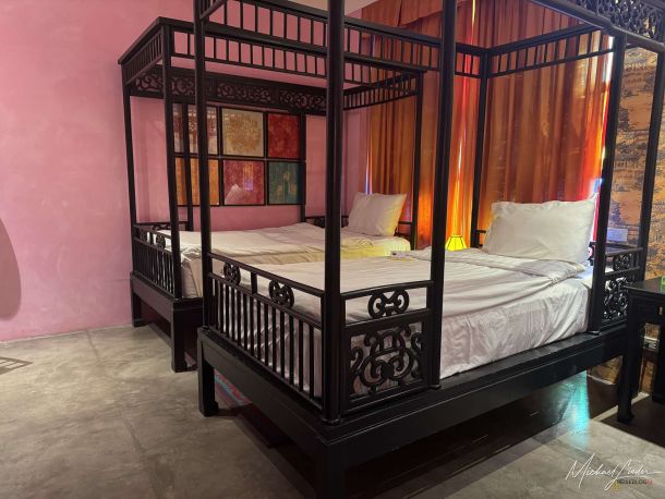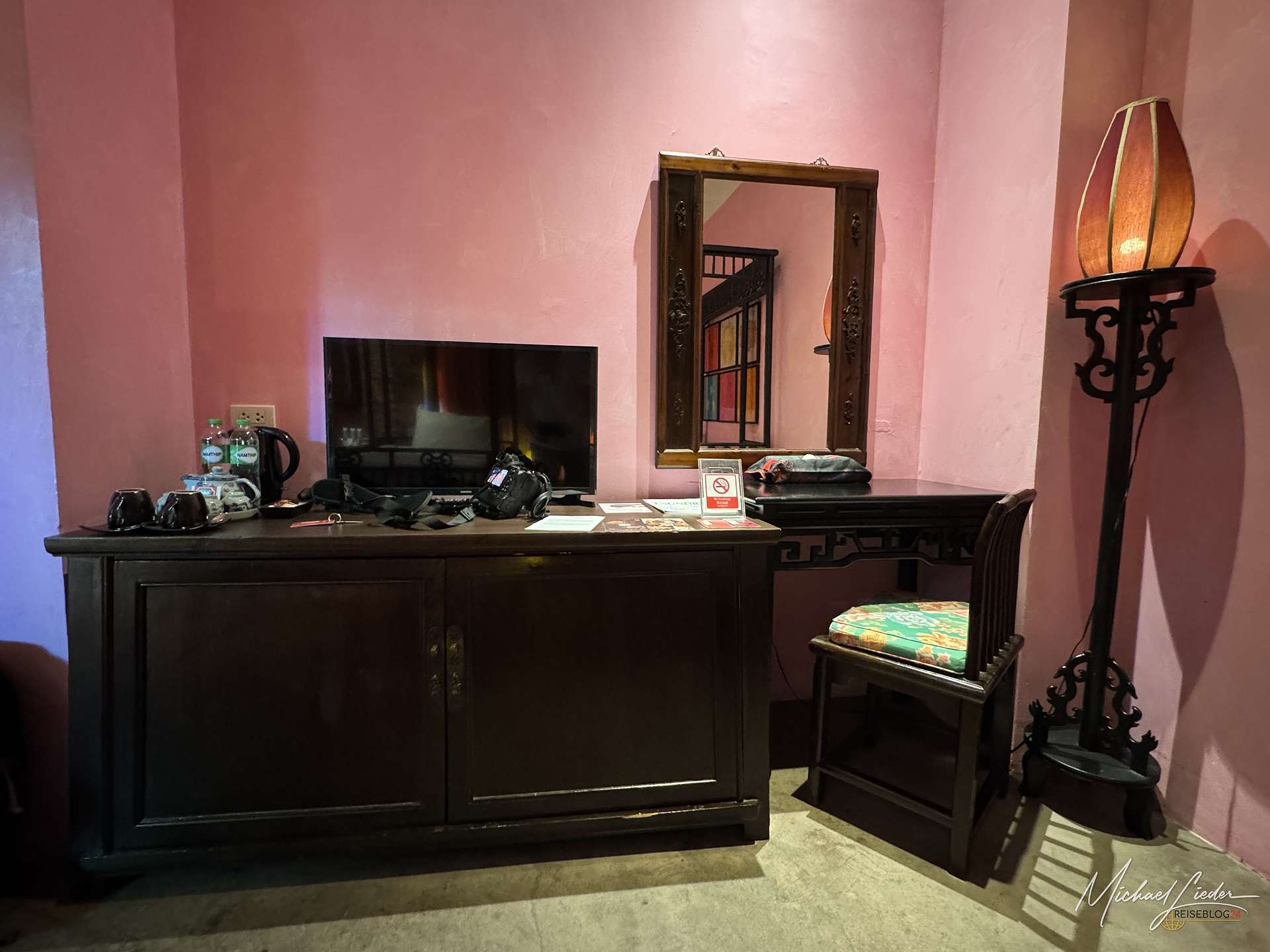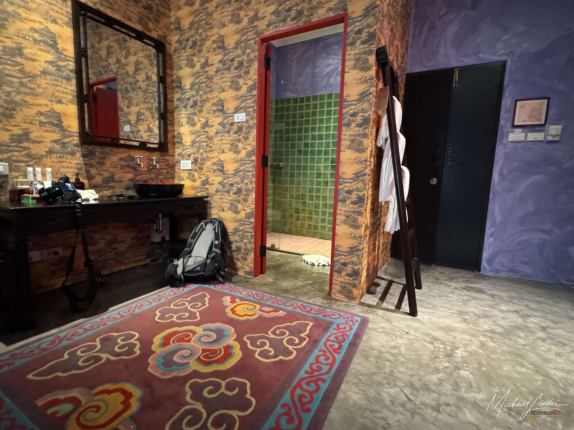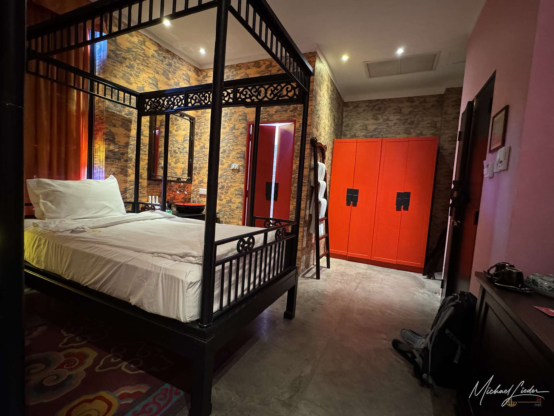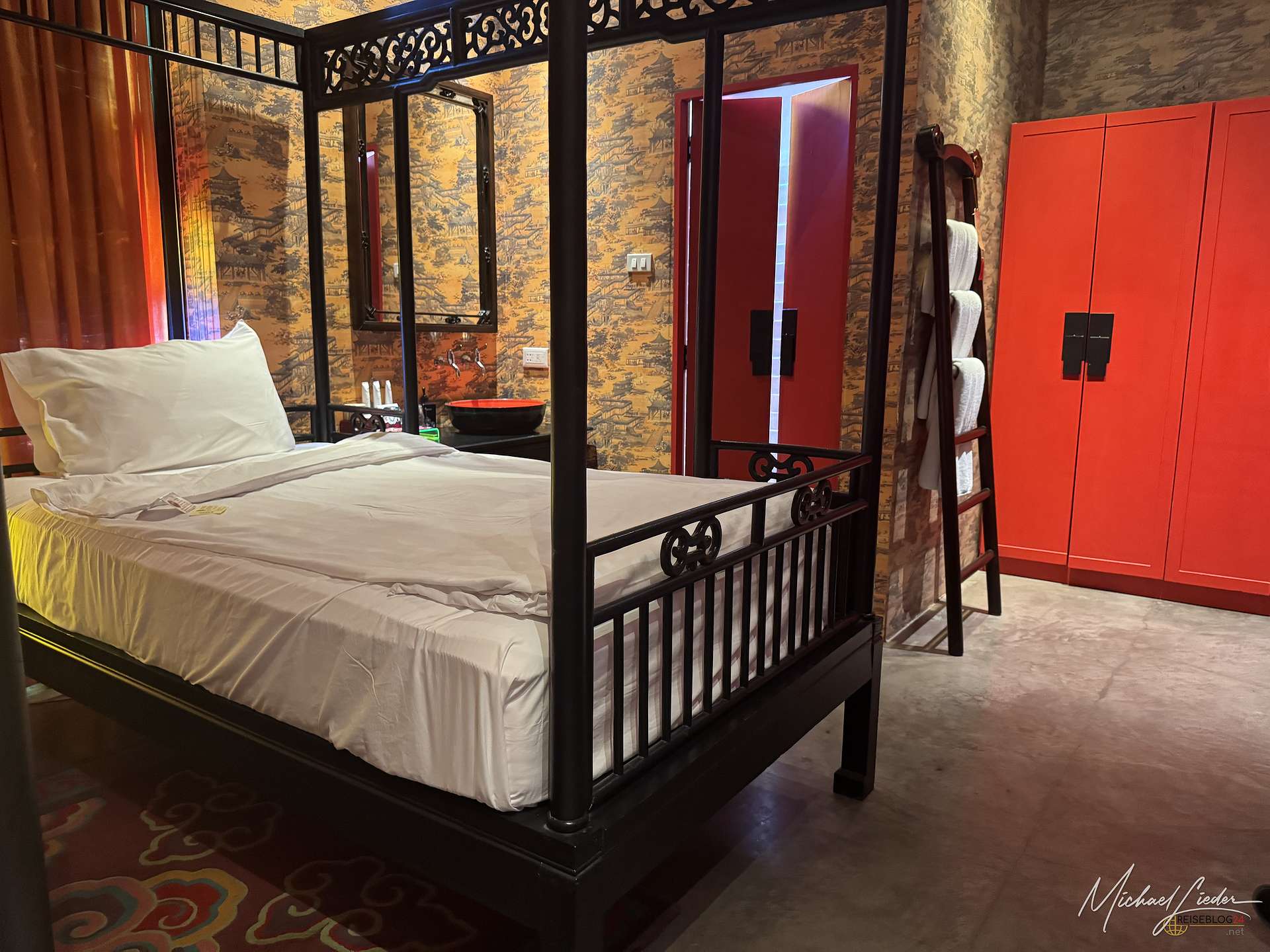 Die Zimmer im Shanghai Mansion sind wirklich eine kleine Welt für sich. Schon der erste Blick in den Raum hat mir kurz den Atem geraubt. Auf erstaunlich wenigen Quadratmetern entsteht hier eine Atmosphäre, die irgendwo zwischen altem China, einer leicht verrückten Piratenfantasie und einem stilvoll inszenierten Boutique-Hotel pendelt. Klingt übertrieben, ist es aber ausnahmsweise nicht.