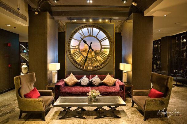 Wer sich in diesem Hotel Stück für Stück von unten nach oben vorarbeitet, bekommt schnell ein gutes Gefühl für das Haus und seine kleinen Eigenheiten. Direkt im Eingangsbereich liegt eine großzügige Bar, die nicht nur Hotelgäste anzieht. Abends wird hier Livemusik gespielt, und genau das macht den Ort so angenehm: Man sitzt bei einem Drink, hört zu und hat für einen Moment das Gefühl, angekommen zu sein, statt nur irgendwo einzuchecken. Im Erdgeschoss befinden sich außerdem ein einladender Aufenthaltsbereich und die Rezeption, von der aus sich das Hotel erschließt.