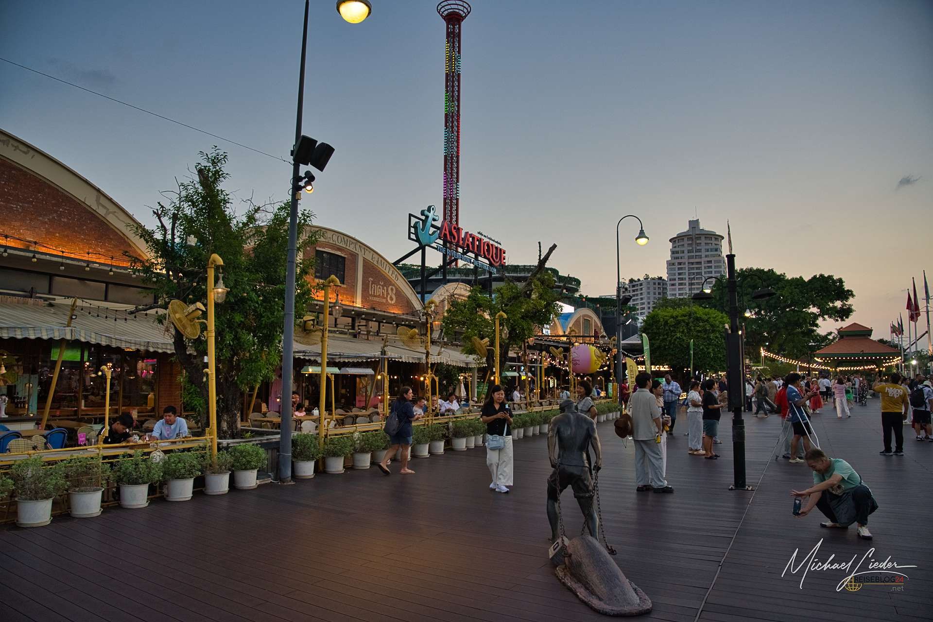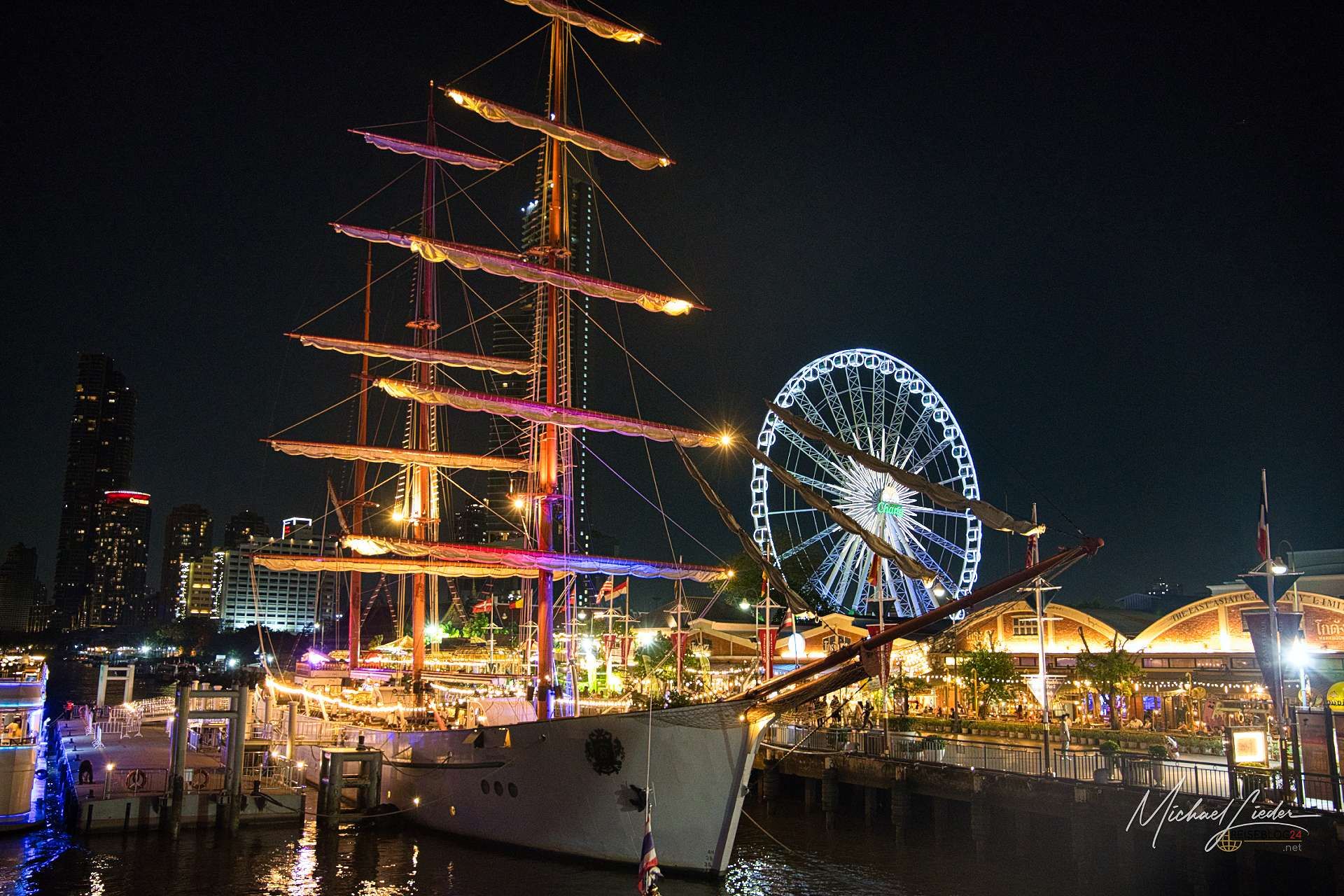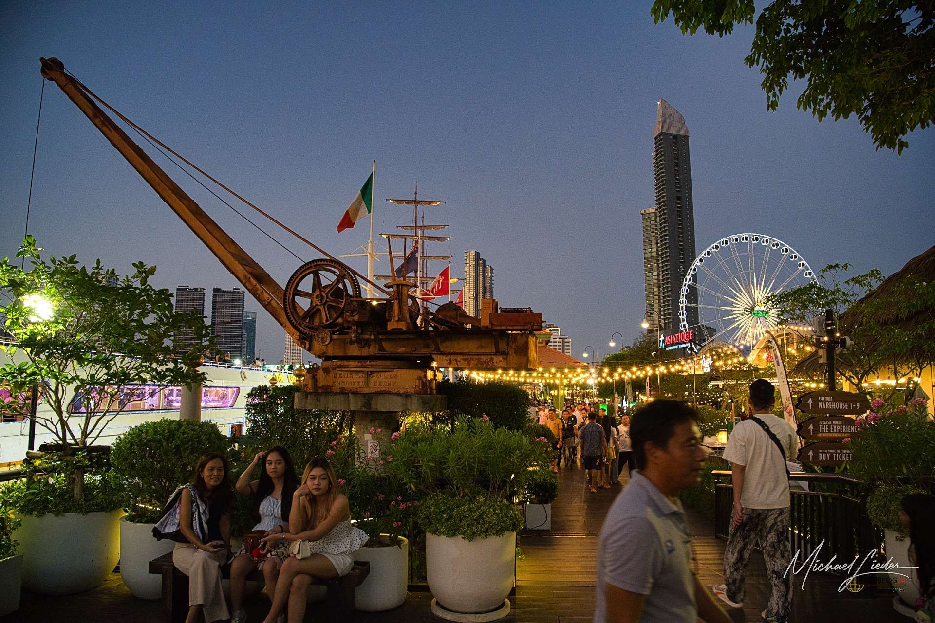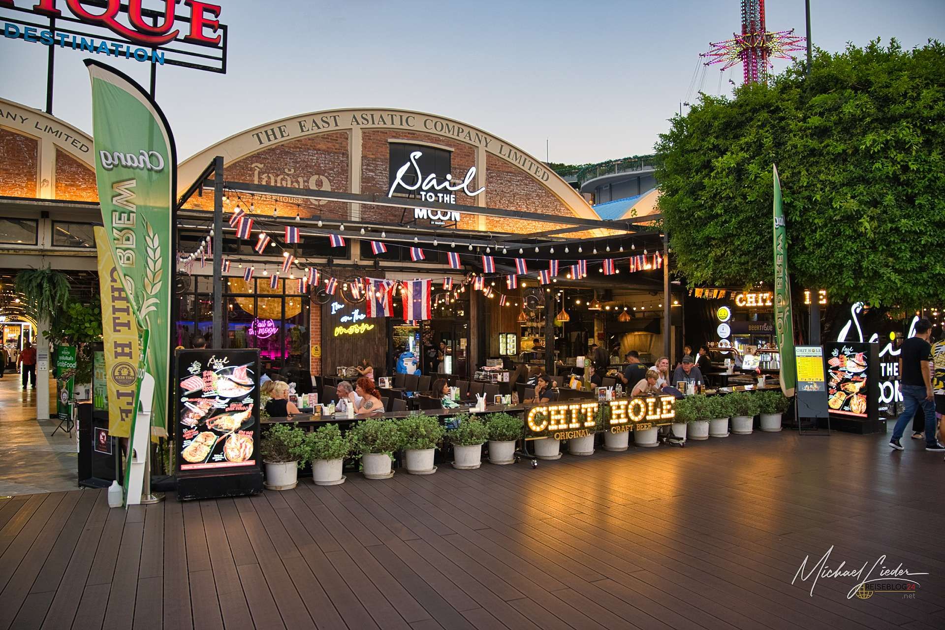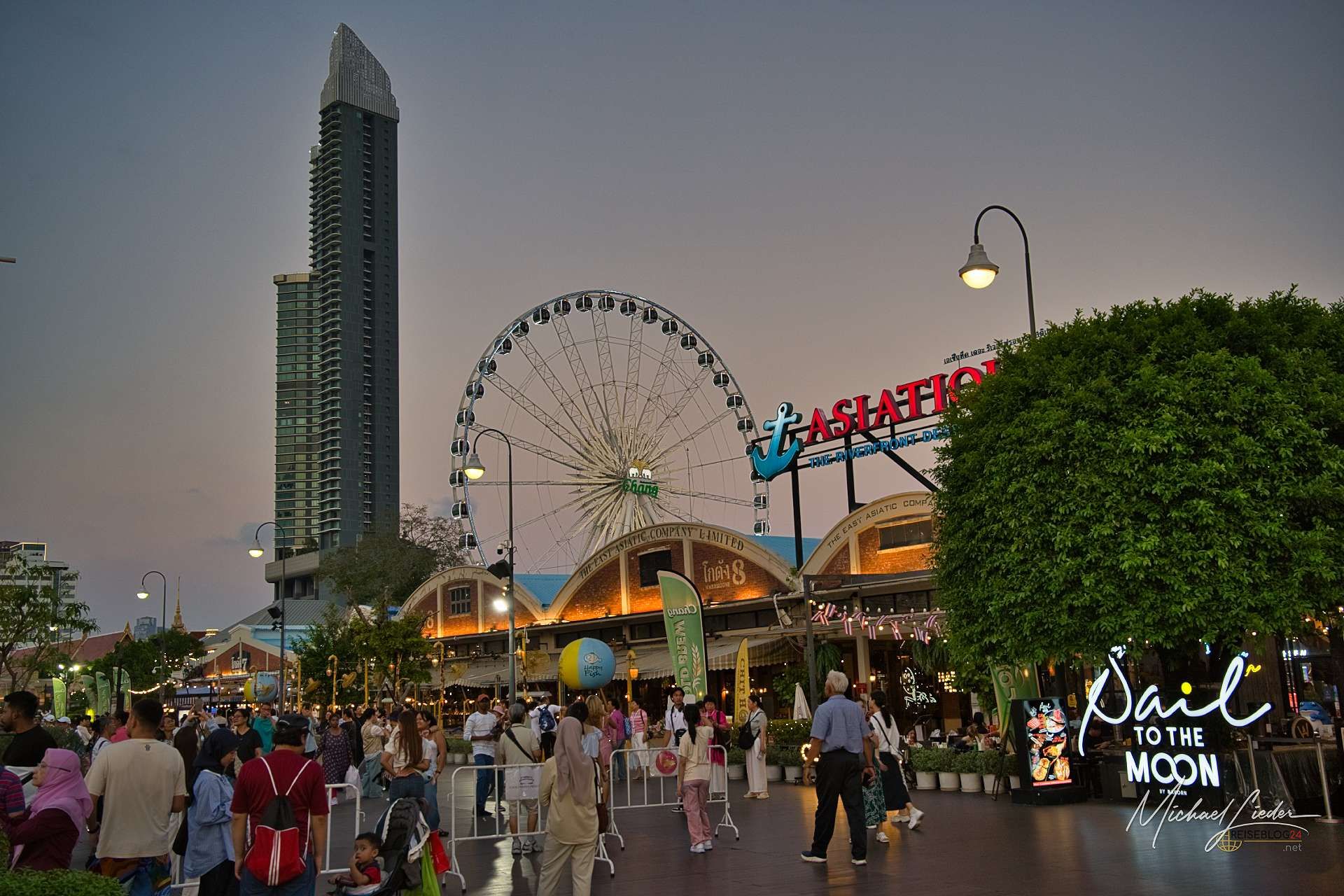 Wer sich auf den Weg zur Riverside des Chao Phraya River macht, sollte sich vorher innerlich sortieren. Denn bevor überhaupt so etwas wie romantische Flussstimmung aufkommt, führt der Weg ziemlich konsequent durch das durchorganisierte Einkaufsuniversum von Asiatique The Riverfront. Ein Ort, an dem man theoretisch alles bekommt – außer vielleicht Ruhe und gute Entscheidungen.