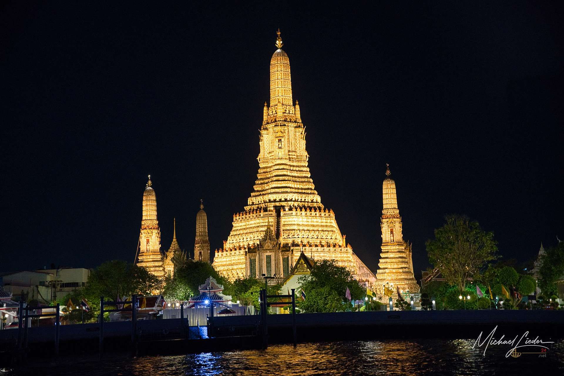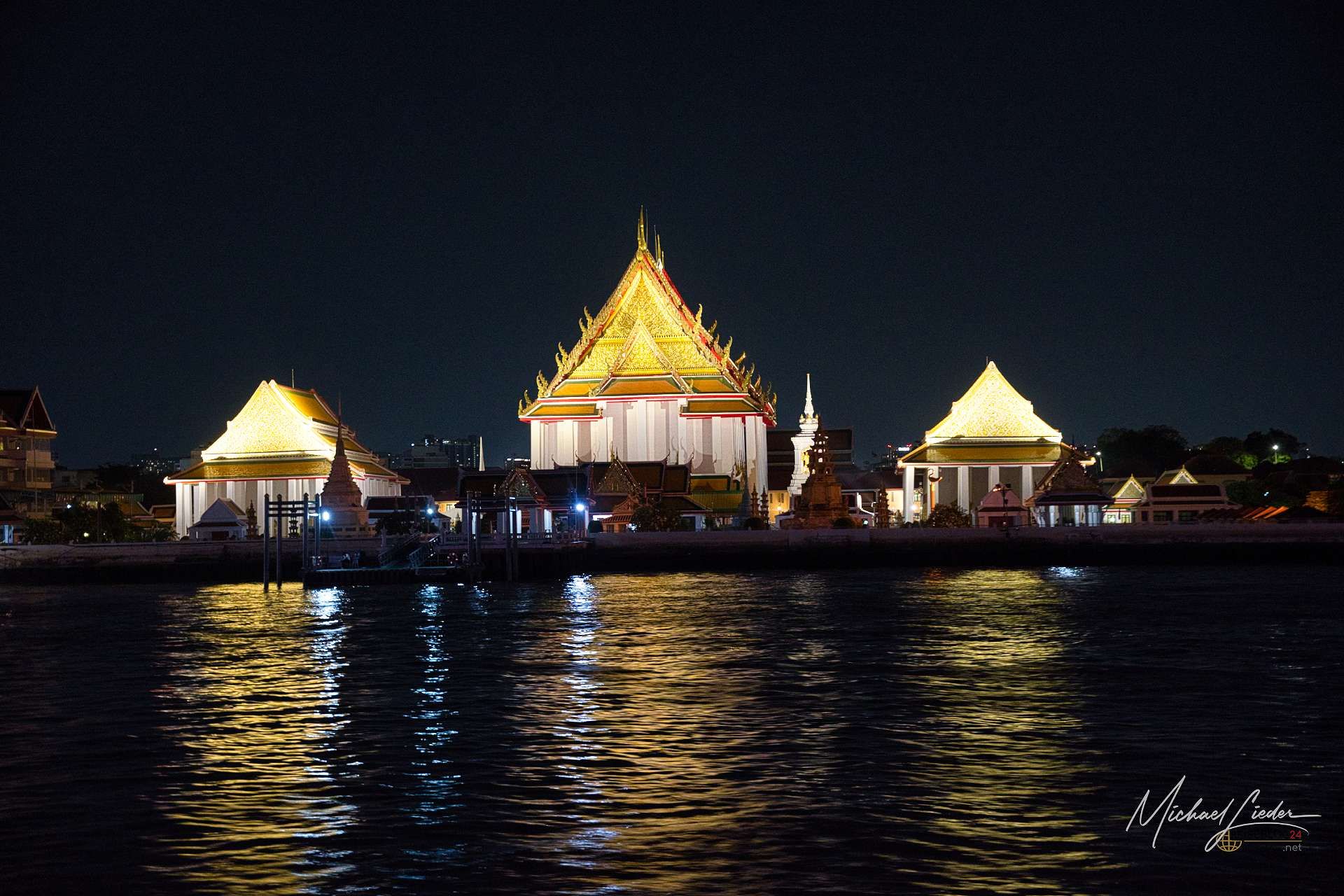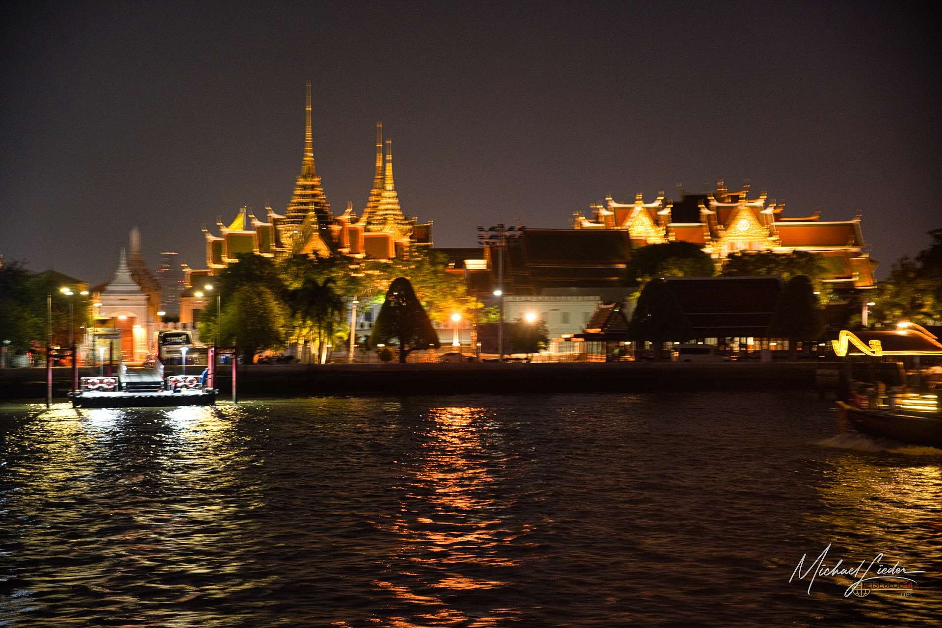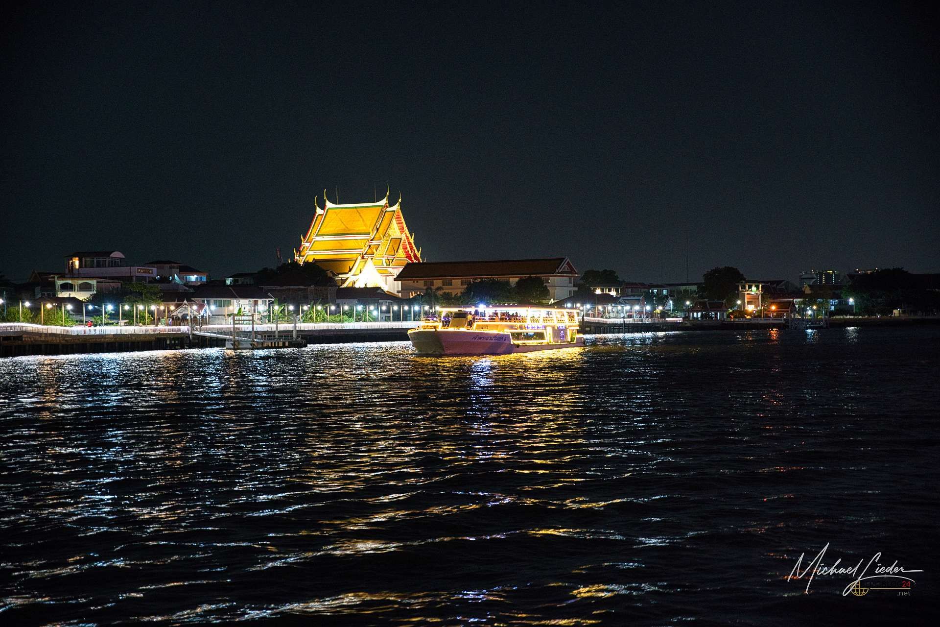 Es ist Nacht auf dem Chao Phraya River und Bangkok gleitet an uns vorbei, als hätte jemand die Stadt extra für diesen Moment inszeniert. Häuser, Tempel, Paläste – alles funkelt wie übermotivierter, leuchtender Schmuck, der unbedingt gesehen werden will. Und ich sitze da, schaue raus und denke: Genau dafür lohnt sich dieser ganze Aufwand manchmal doch.