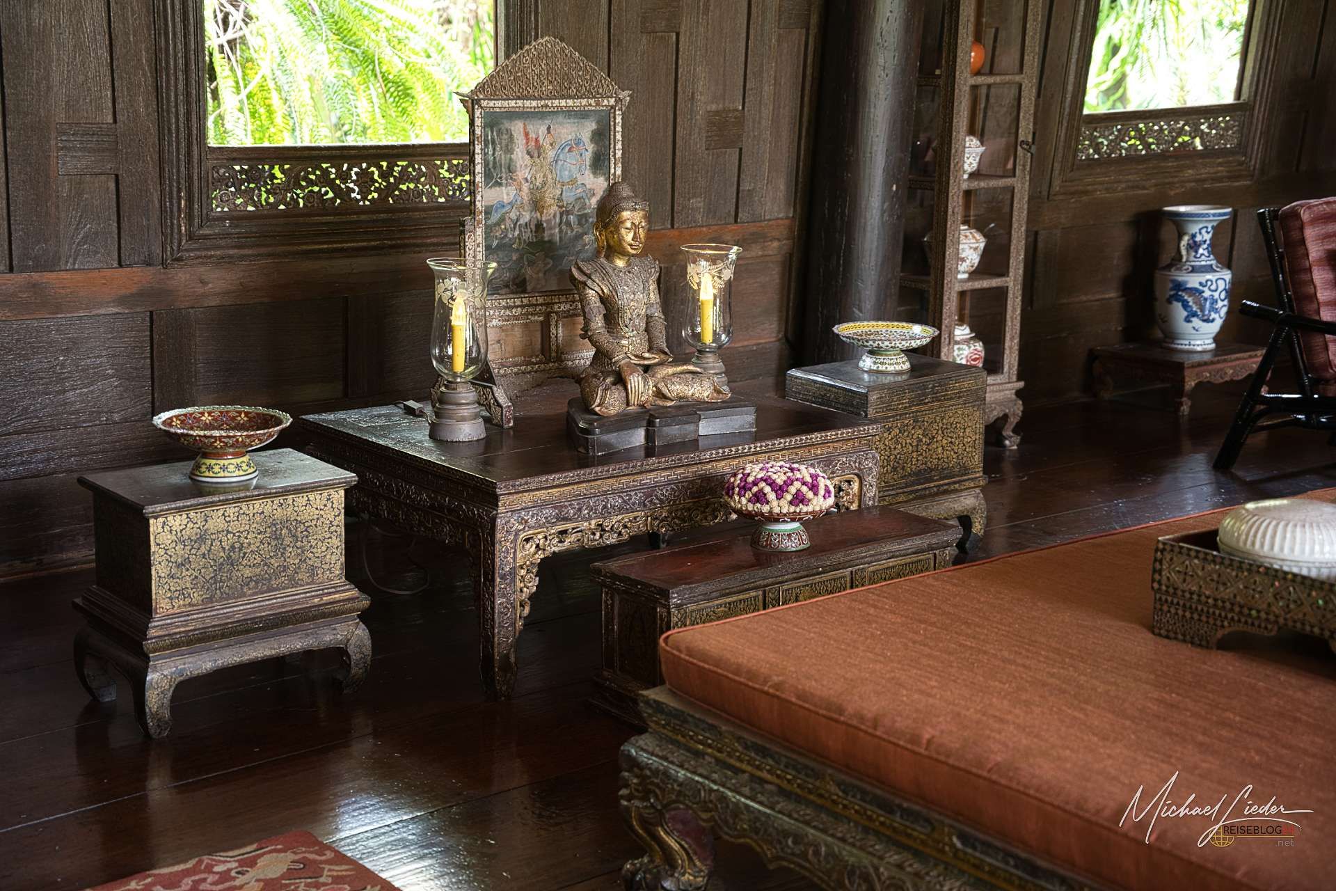 Beim Schlendern durch die Räume spürt man schnell: Das ist kein glattgebügeltes Museum. Es lebt. Kunst aus ganz Südostasien, persönliche Gegenstände und diese ganz besondere Atmosphäre, als wäre der Hausherr nur kurz verschwunden – was er im Grunde auch ist. Denn 1967 verschwand Jim Thompson unter mysteriösen Umständen in Malaysia. Bis heute gibt es keine endgültige Erklärung. Ein Abgang, der zu ihm passt: geheimnisvoll, ein bisschen filmreif und mit genau der richtigen Portion Stoff für Legenden.