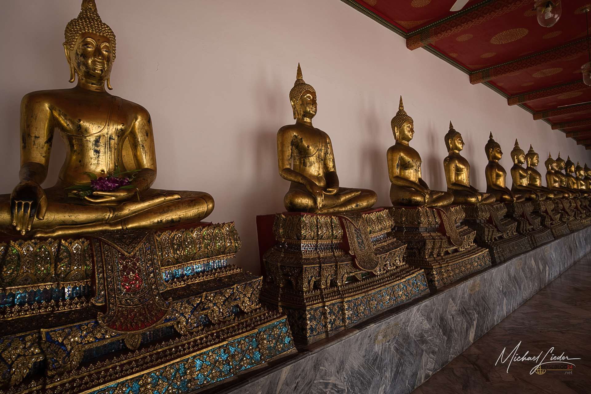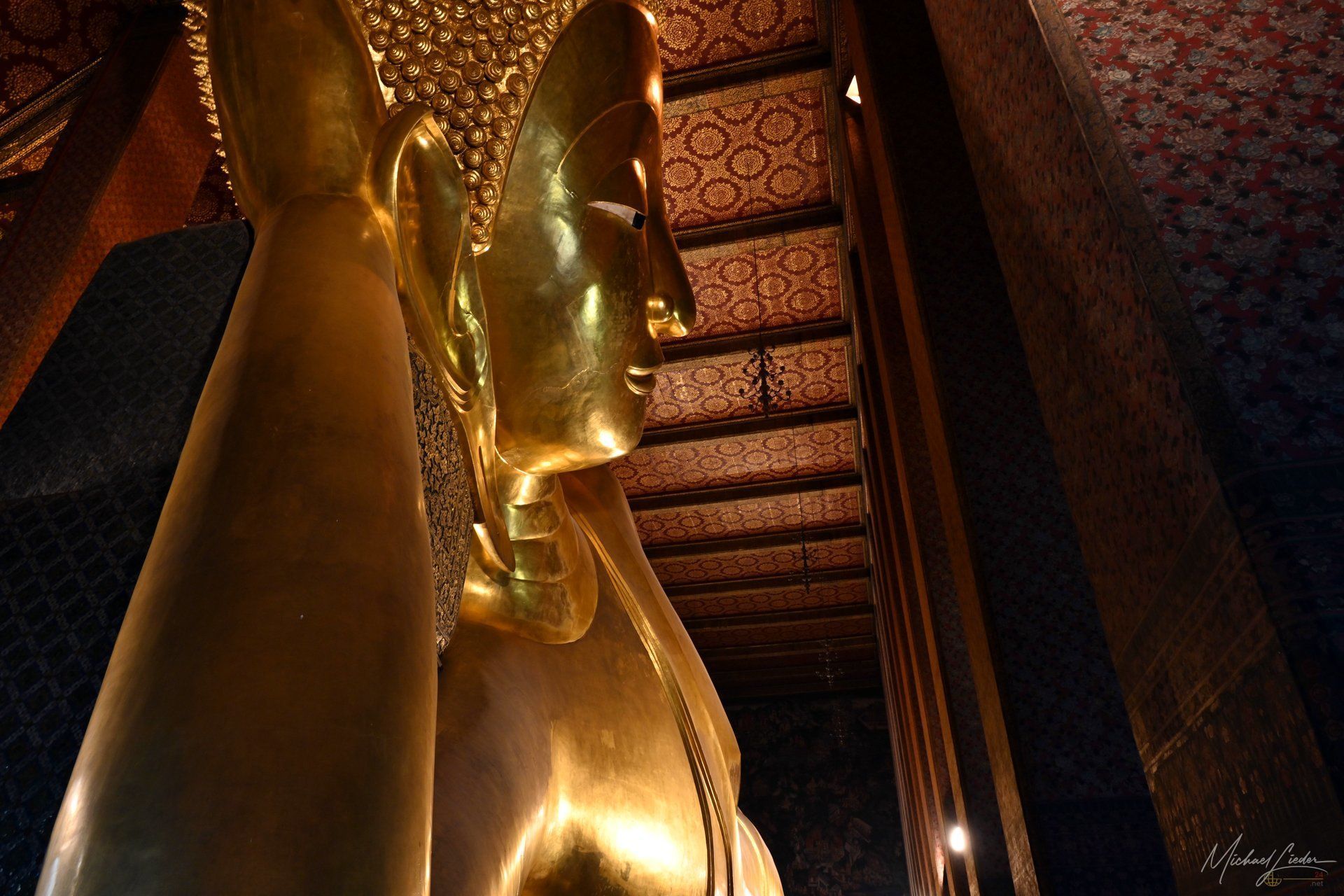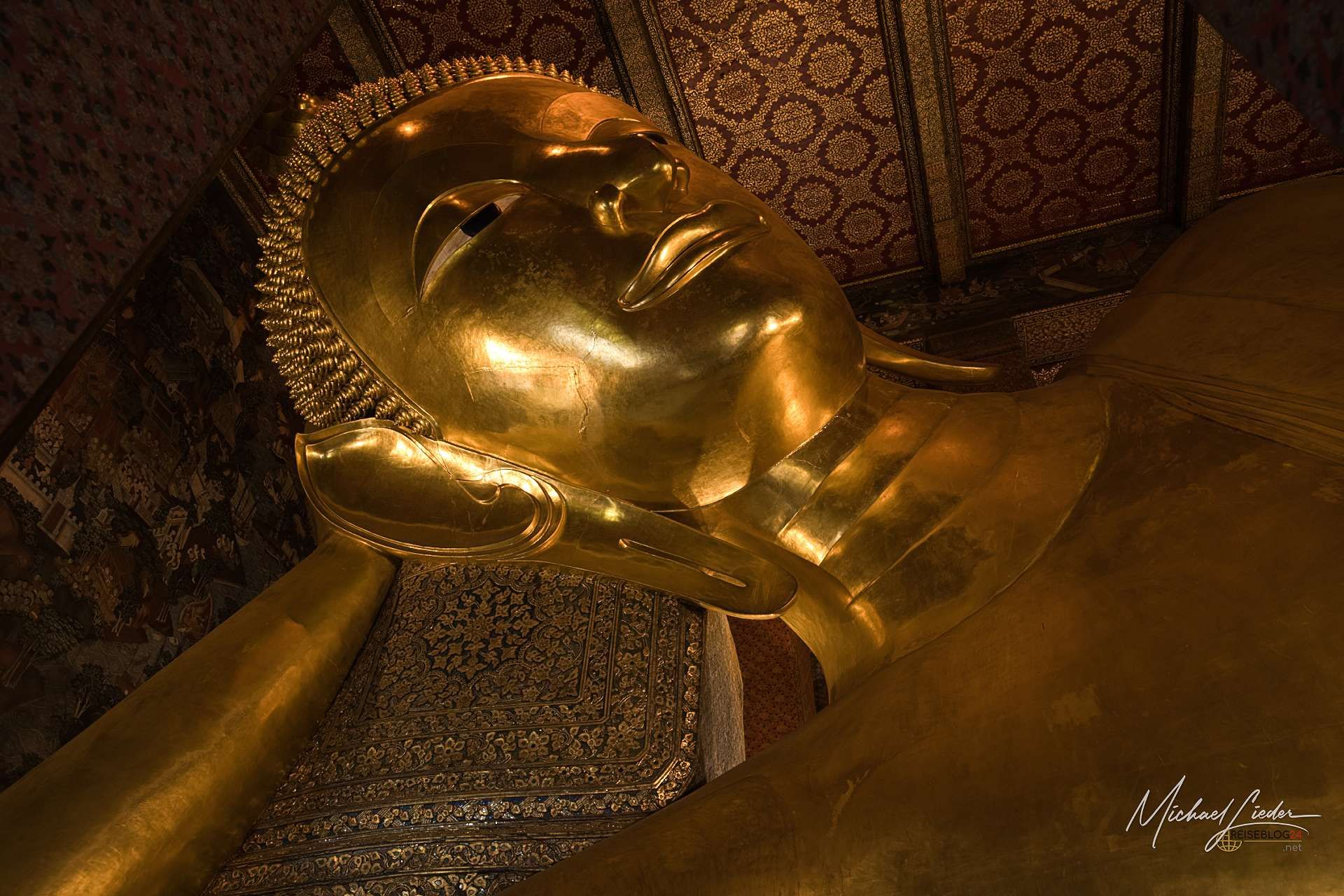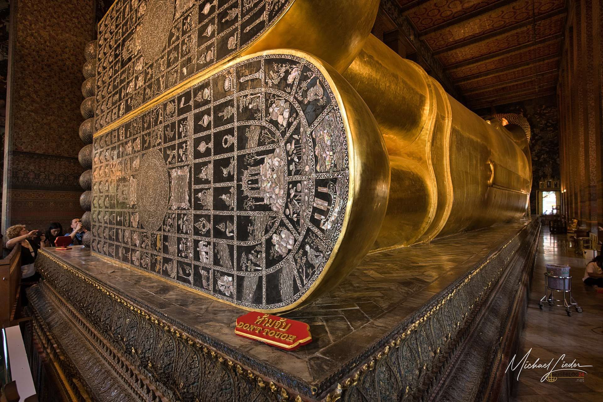 Und dann liegt er da. Der berühmte liegende Buddha. 46 Meter lang, 15 Meter hoch, vollständig mit Blattgold überzogen – und so beeindruckend, dass selbst das Stimmengewirr für einen Moment in den Hintergrund rückt. Die Füße, kunstvoll mit Perlmutt verziert, erzählen ihre eigenen Geschichten. Selfie mit Buddha, kein Problem das ist asiatisch einfach geregelt - einfach anstellen und warten bis man an der Reihe ist. Aber aufpassen, Handy oder Kamera sollten vorbereitet sein, denn sonst wird der nächste in der Wartegemeinschaft ungeduldig. Wer es hier nicht versucht und zumindest kurz innehält, hat vermutlich einfach den falschen Tag erwischt.
