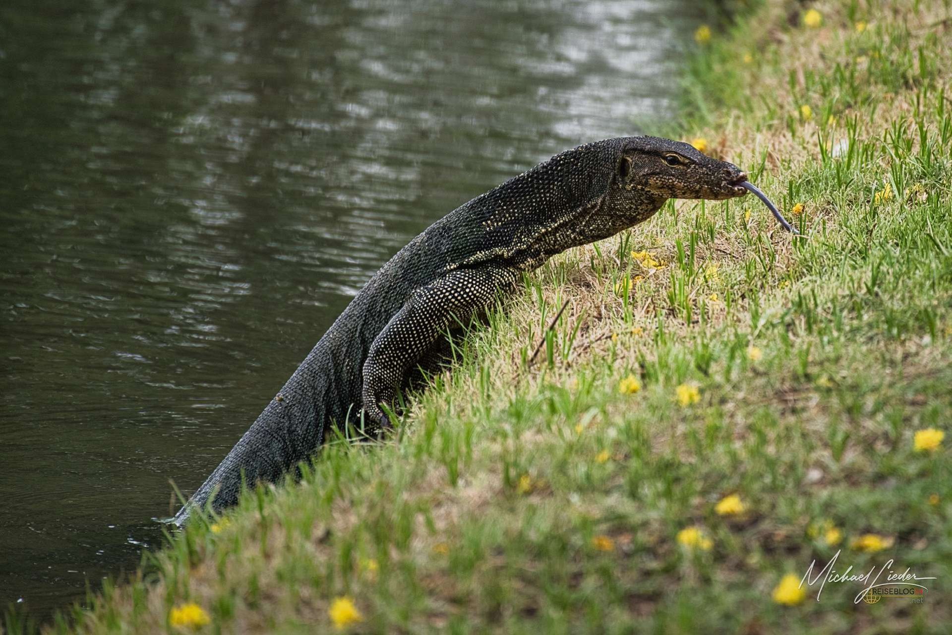 Kaum im Park angekommen, passiert etwas, das man dieser Stadt kaum zutraut: Es wird leise. Keine hupenden TukTuks, kein urbanes Dauerrauschen – nur das Rascheln der Bäume und das gelegentliche Platschen im Wasser. Und dann stehen sie da, als hätten sie nie etwas anderes gemacht: Warane. Entspannt, selbstbewusst und mit der Aura eines Tieres, das ganz genau weiß, dass es hier niemanden beeindrucken muss. Dazu gesellen sich Wasservögel, die stoisch ihre Bahnen ziehen – mitten in einer der hektischsten Metropolen Südostasiens.