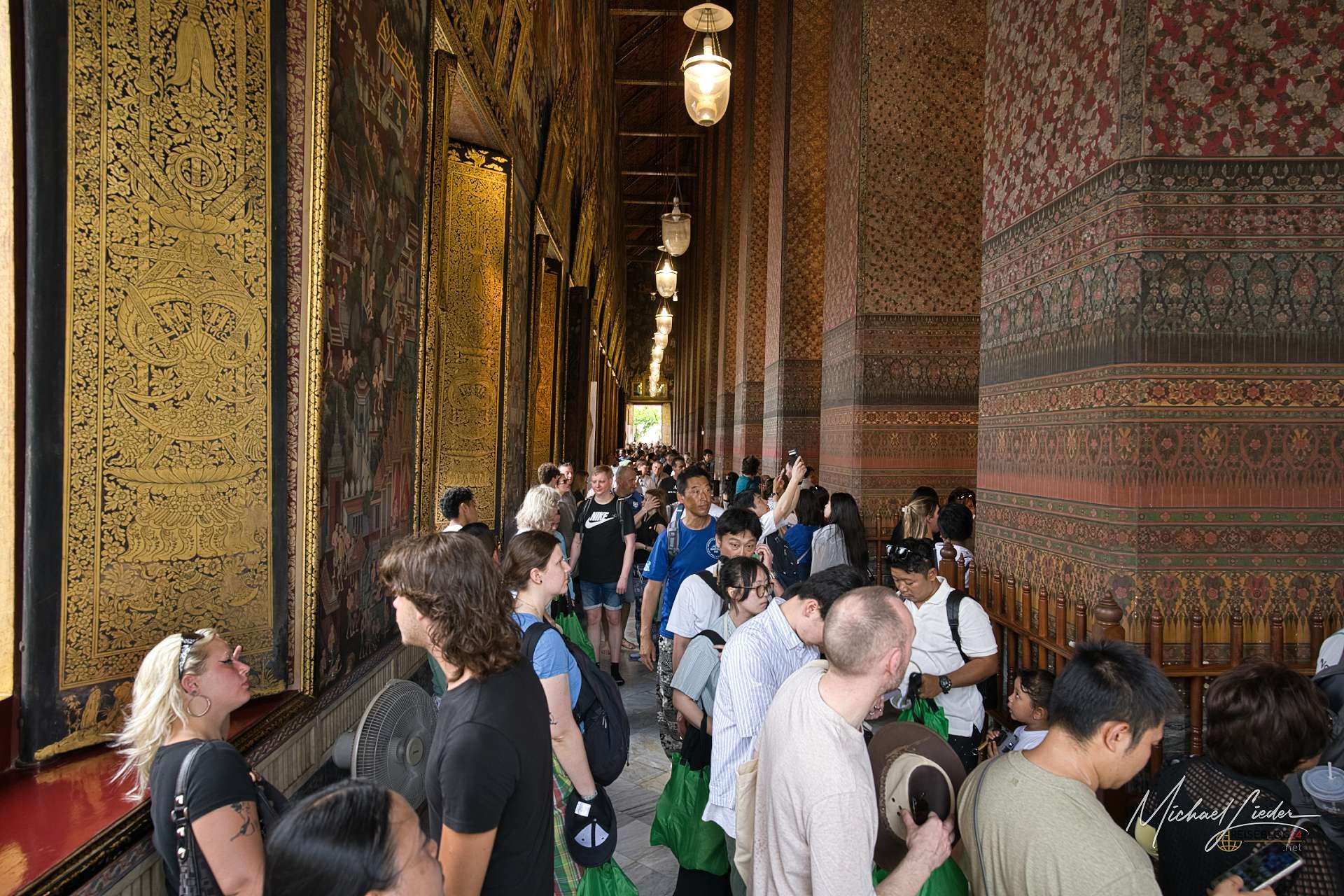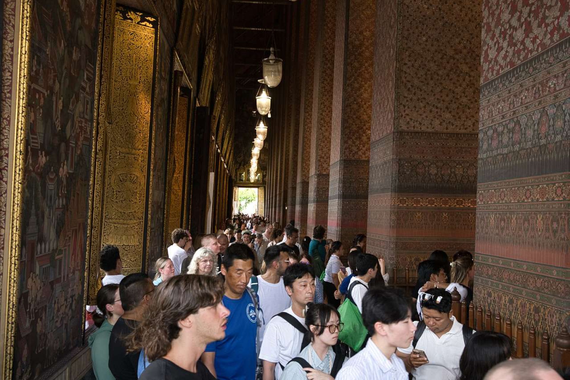Wat Pho ist kein Tempel, den man „einfach mal so“ besucht – er ist ein Magnet. Ein Ort, der Menschen aus aller Welt anzieht, und das merkt man sofort. Zwischen Selfie-Sticks und staunenden Blicken schiebt man sich langsam vorwärts und fragt sich kurz, ob man noch im Tempel ist oder schon Teil einer sehr internationalen Prozession.