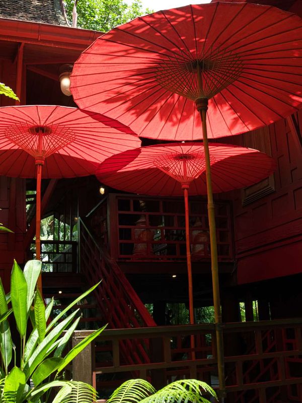 Doch sein Vermächtnis ist nicht nur Stoff, sondern ein Ort. Das Jim Thompson House ist mehr als ein Museum – es ist ein kleines Paralleluniversum. Mehrere traditionelle Teakholzhäuser, kunstvoll zusammengesetzt, eingebettet in einen üppigen Garten, der sich hartnäckig gegen die Großstadt behauptet. Hier knarzt der Holzboden leise unter den Füßen, während draußen das moderne Bangkok vorbeirauscht, als hätte es diesen Ort einfach übersehen.